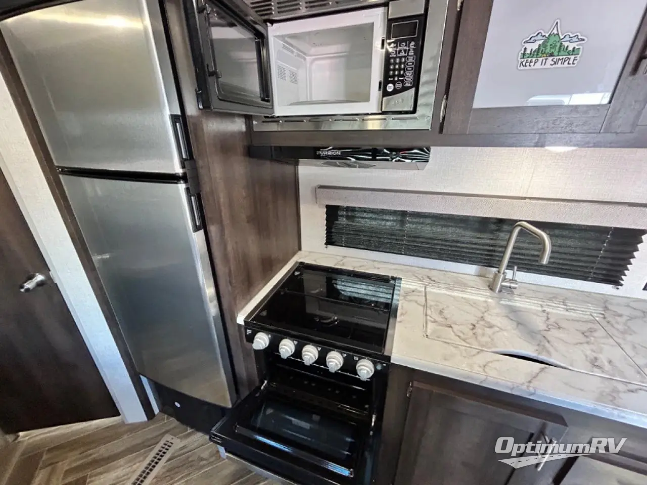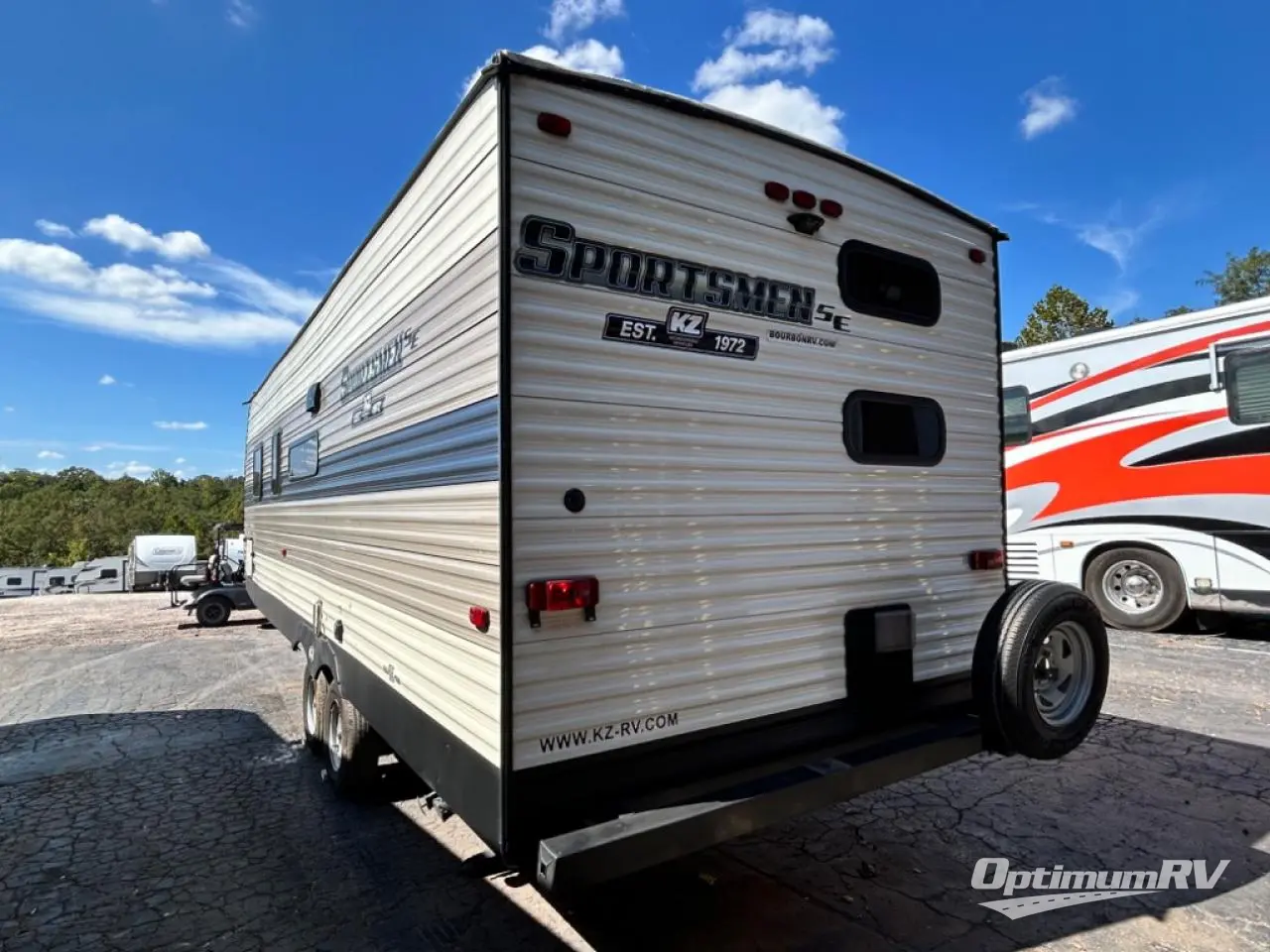 The Sportsmen SE travel trailer by KZ offers residential-grade linoleum for easy clean up, a stainless steel residential kitchen faucet and deep undermount stainless steel kitchen sink, color accented shower walls as a nice touch, dark accent trim on corners/entry doors, and lots of storage for your clothing, dishes, and such. The exterior gives you a one-piece, seamless, walk-on Tufflex roofing material, fully walk-on roof decking, an aerodynamic front profile with smooth metal front, three-toned exterior metal, and has been prepped for solar power and a backup camera. Start saving money and enjoy camping, choose the trailer that fits your wants and needs!