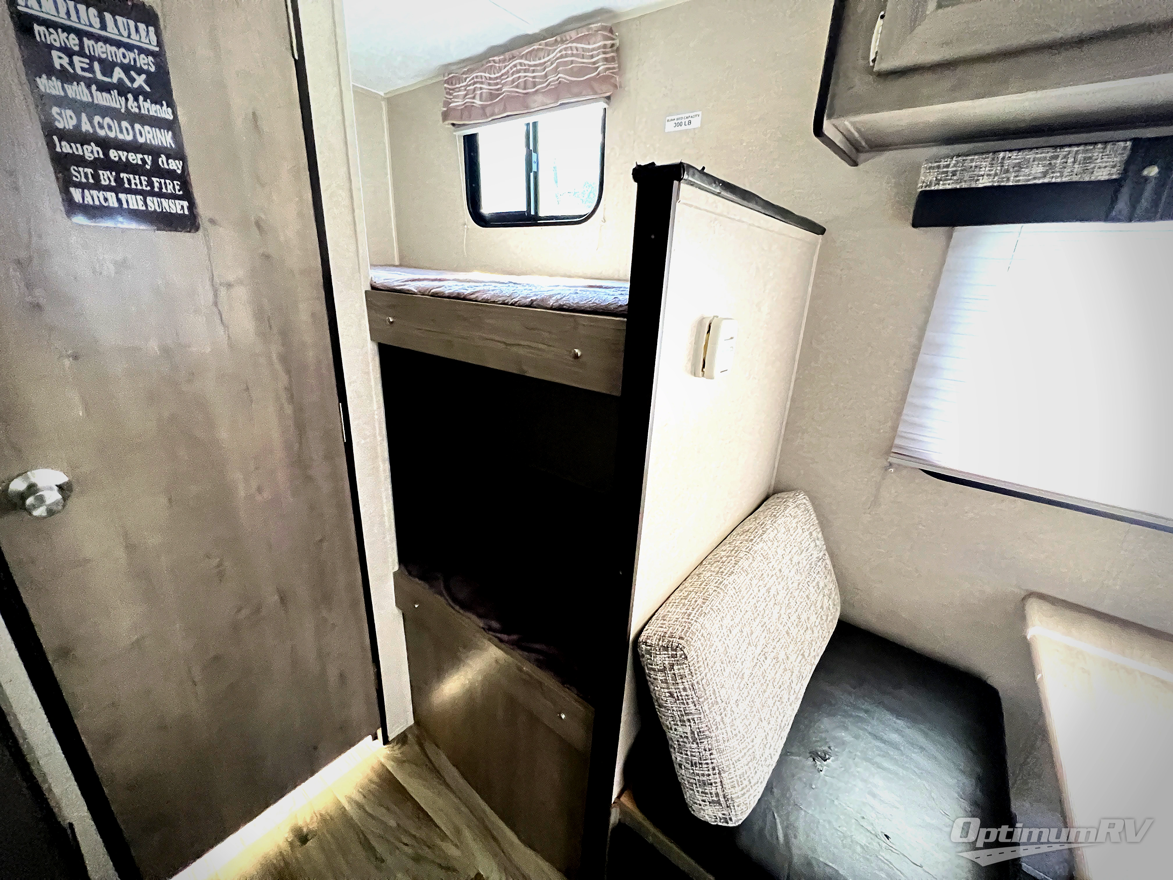 You won't be held back from exploring when you have this Puma Ultra Lite travel trailer hitched up to your vehicle! You and a couple of friends can enjoy the scenery because the bunk beds, booth dinette, and RV queen bed will allow you to give five sleepy campers a place to rest their heads at night. A skylight above the 38" tub in the private bathroom will fill the space with additional sunlight as you get ready, and the 12V residential refrigerator will keep your favorite drinks cold and fresh for you when you want them.