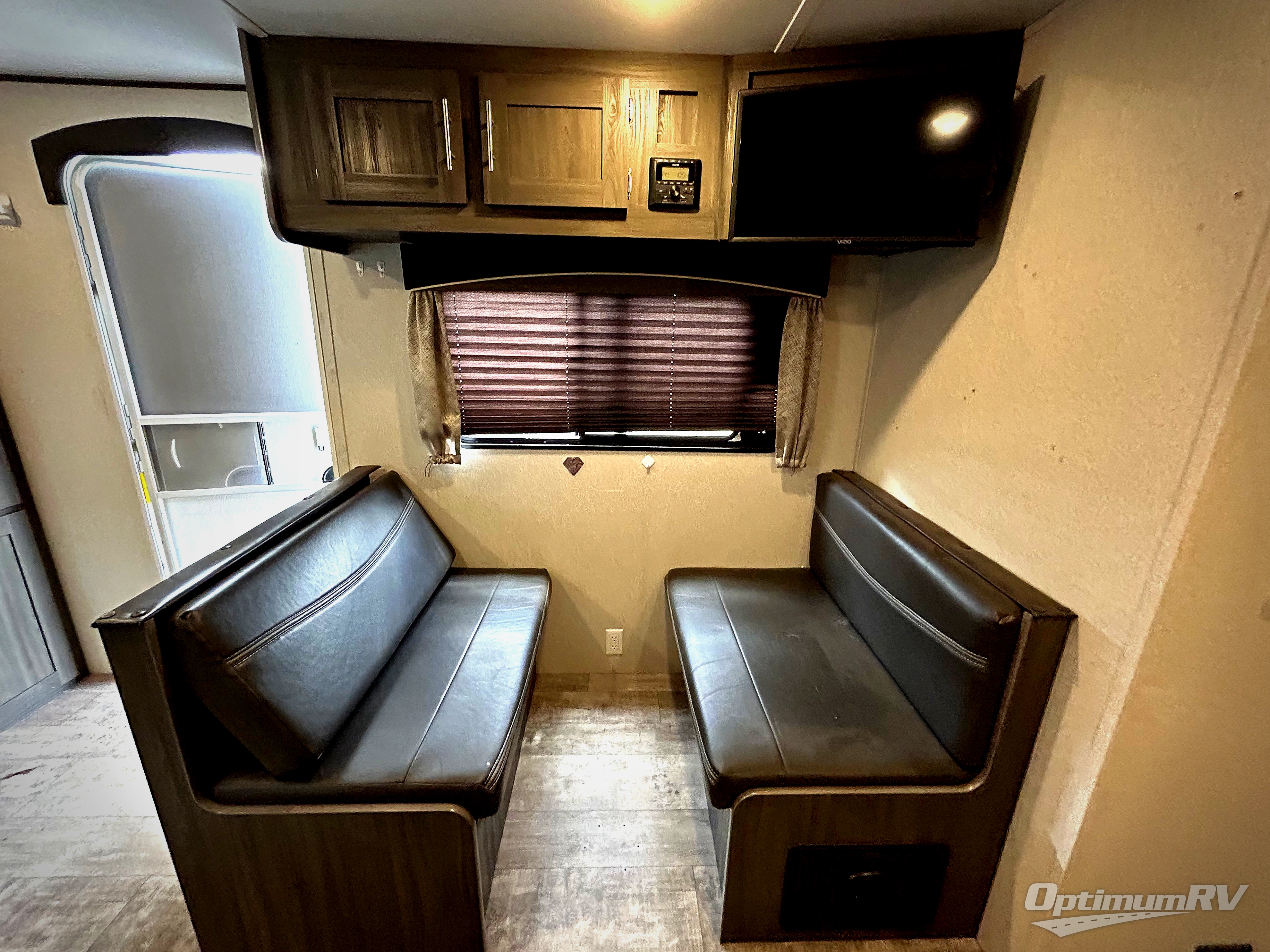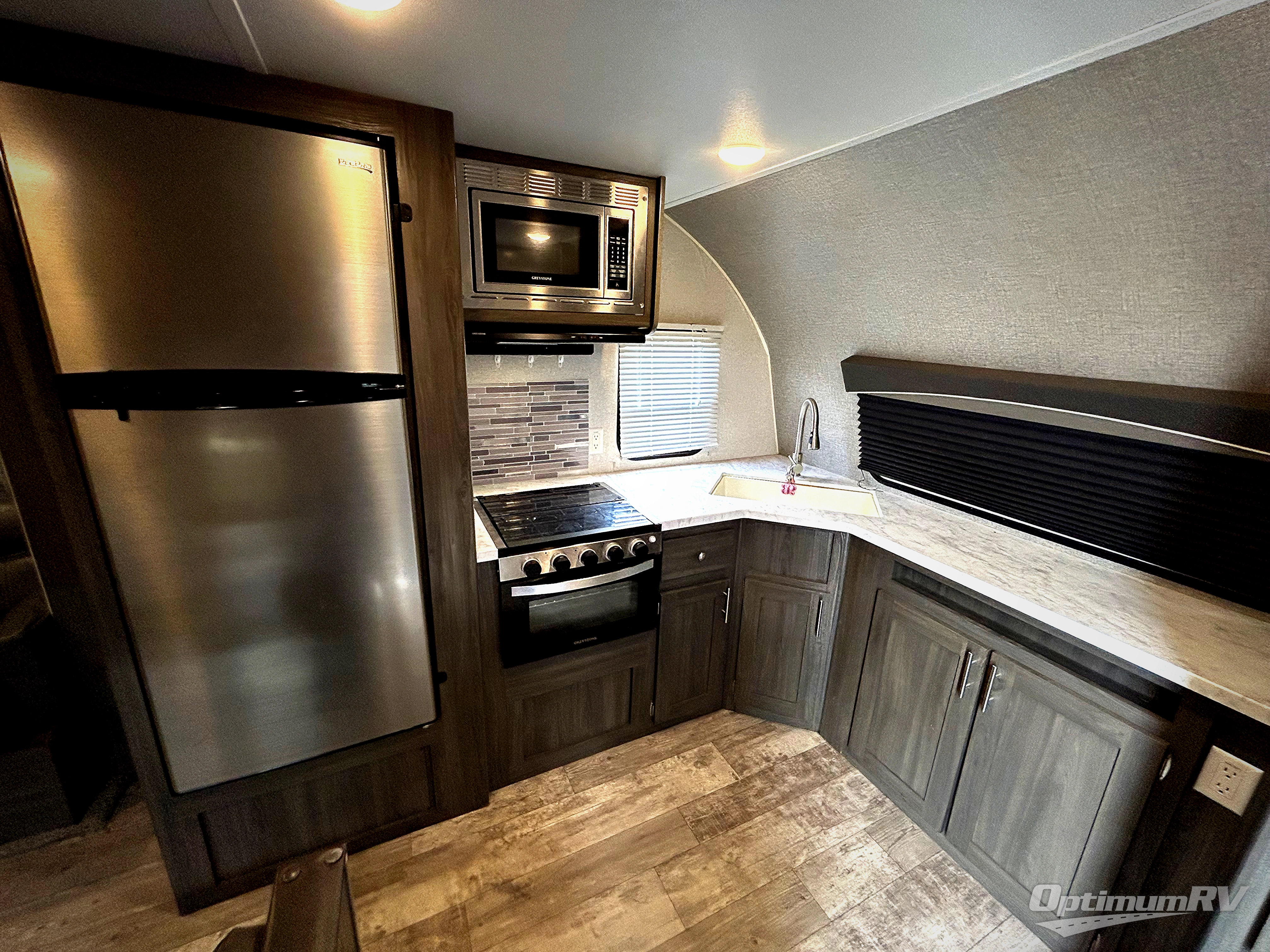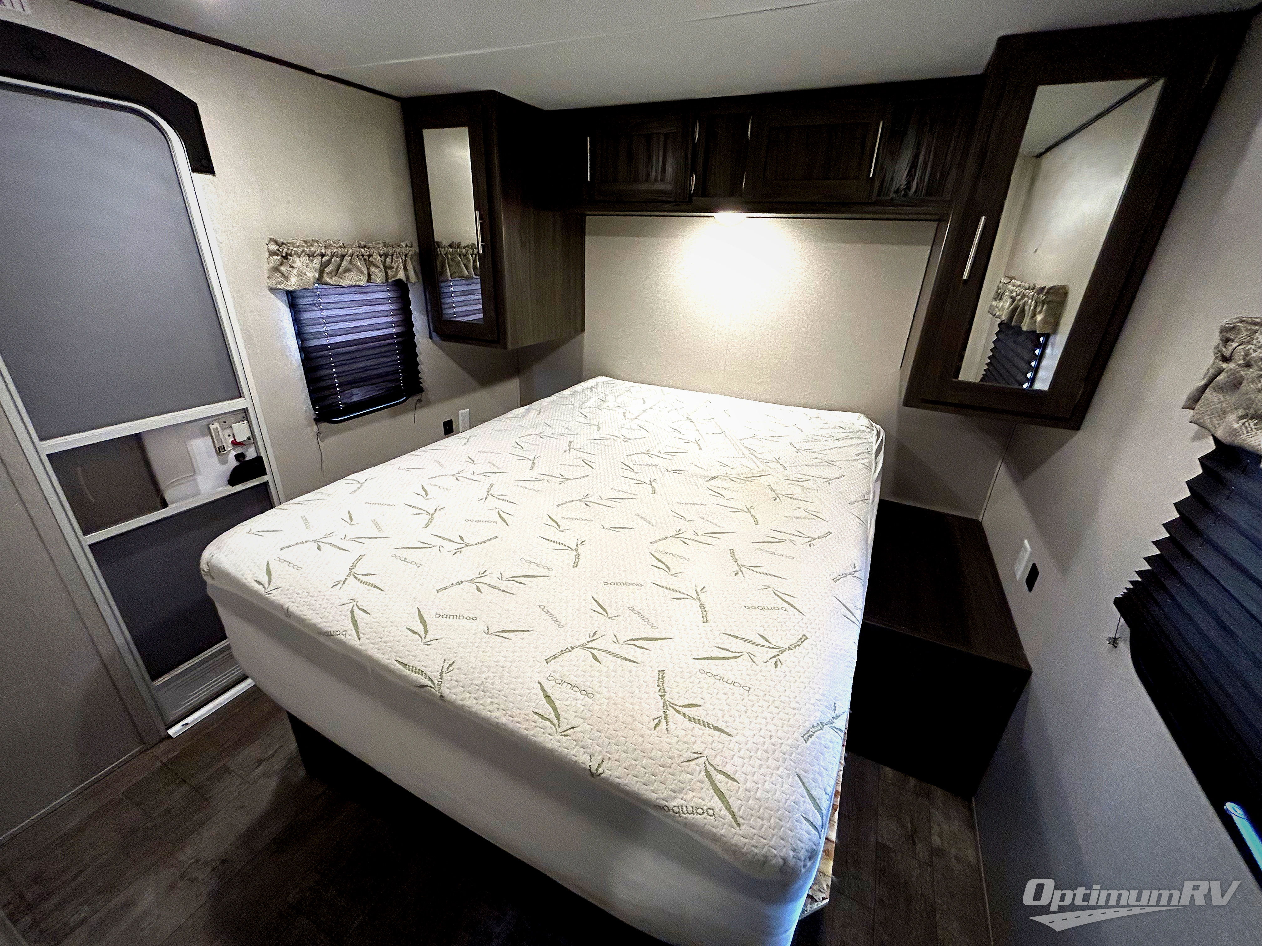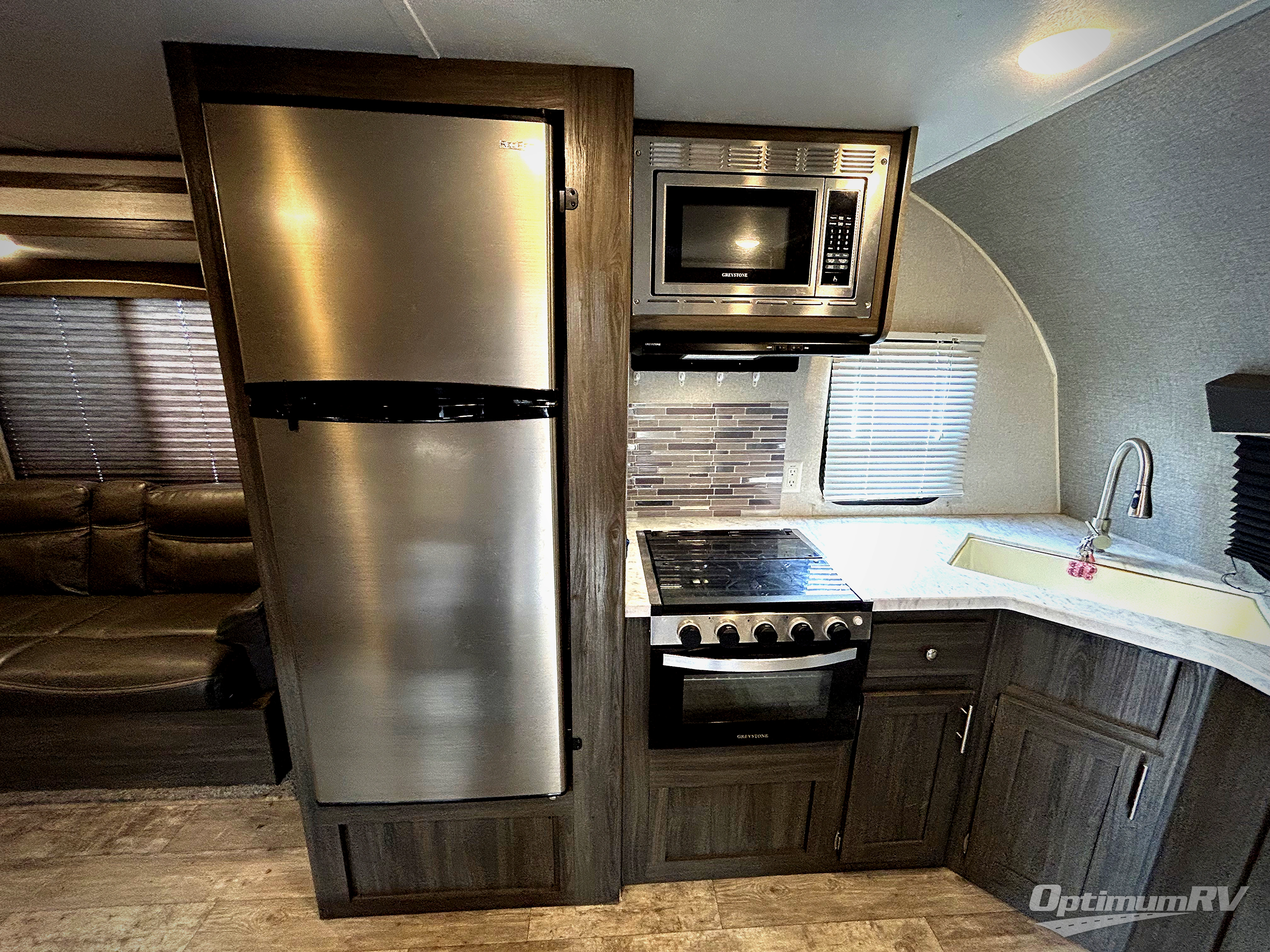 If you're looking for a floorplan with a little more character, choose this travel trailer that features a front kitchen and a private rear bedroom! You'll love that there are two entry doors; one leading into the kitchen and one leading into the rear private bedroom. The chef of the family can prepare breakfast on the three burner cooktop and the milk and eggs can go back in the 10.7 cu. ft. residential refrigerator. Head outdoors to take a hike or swim at the lake and when you return, the full bath will allow you to clean up before bed. You'll find comfortable sleeping space on the RV queen bed in the bedroom and the kids can convert the sofa and booth dinette for the night.