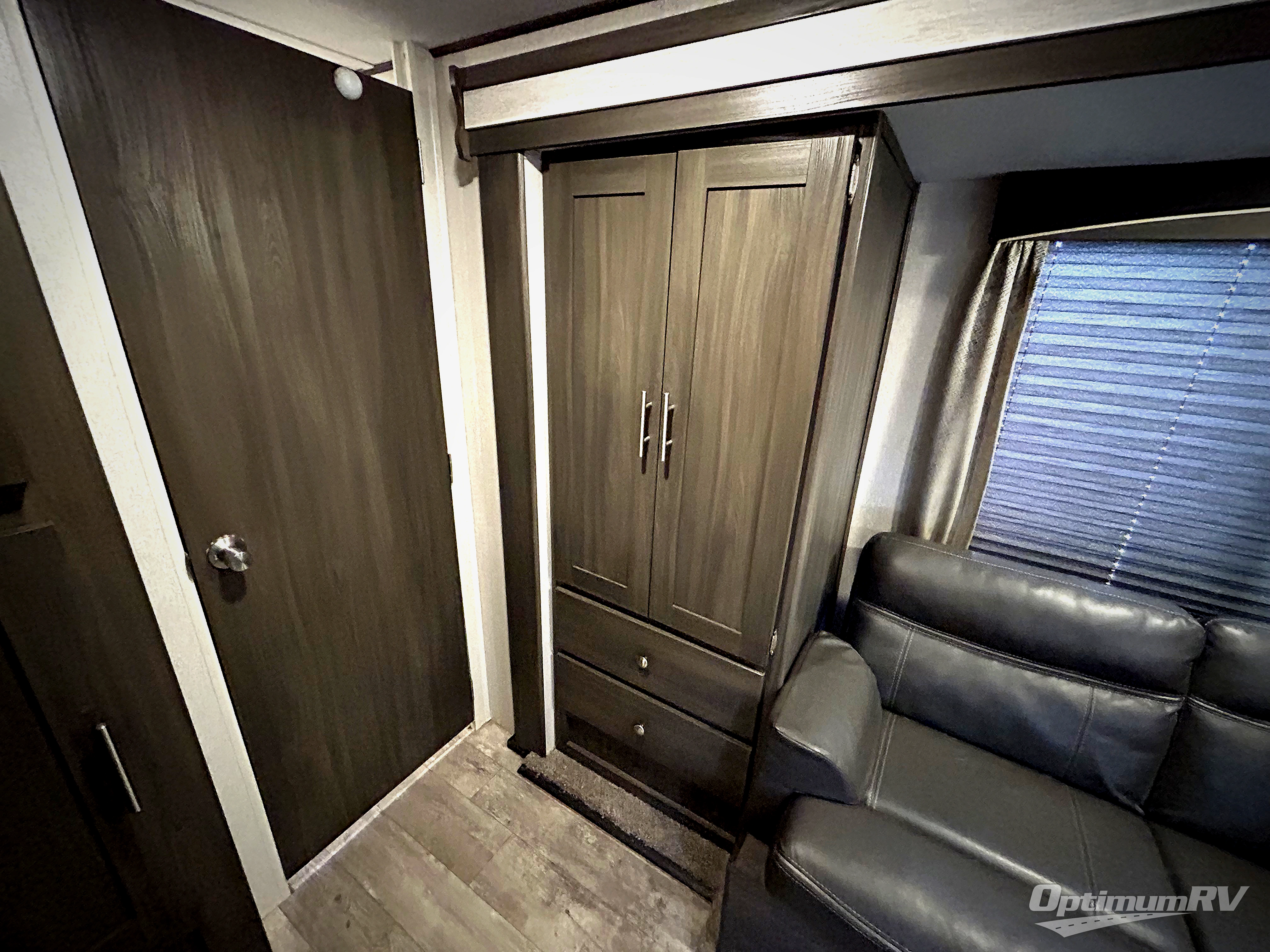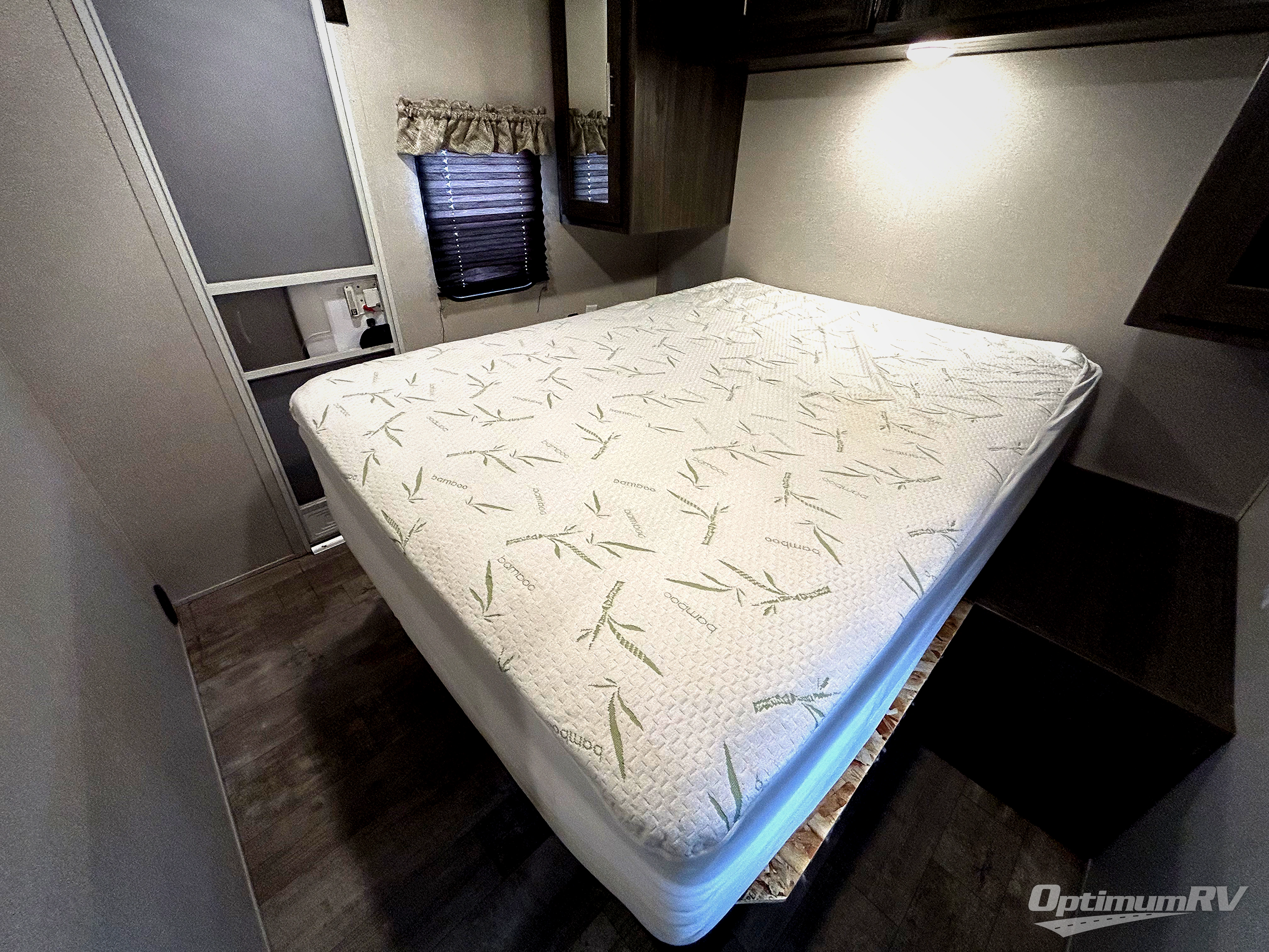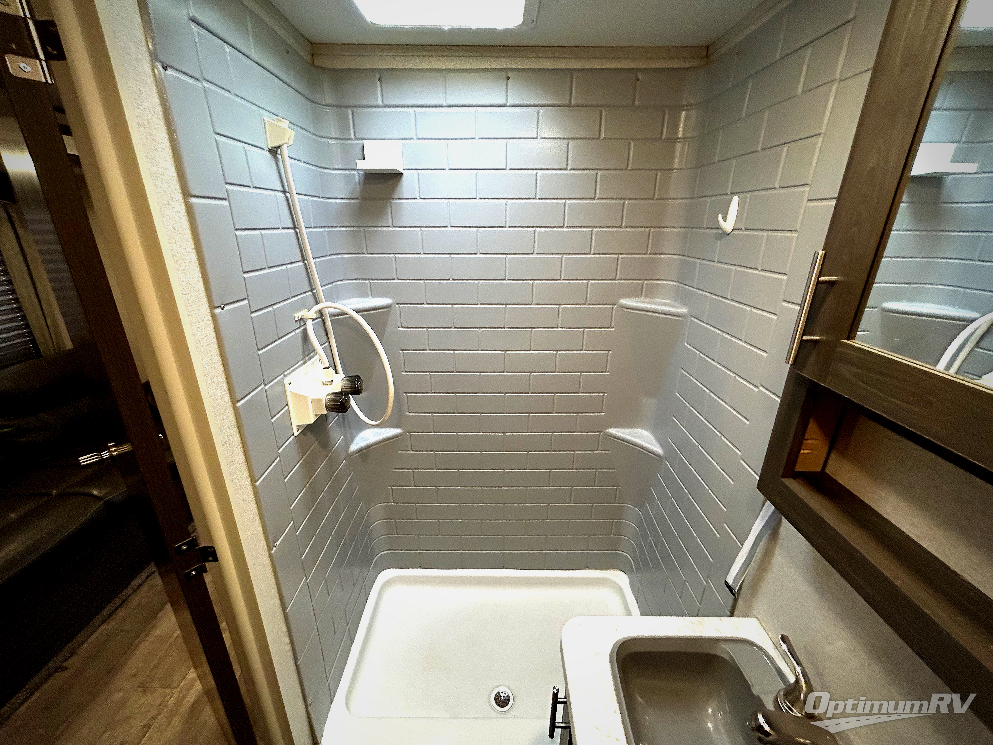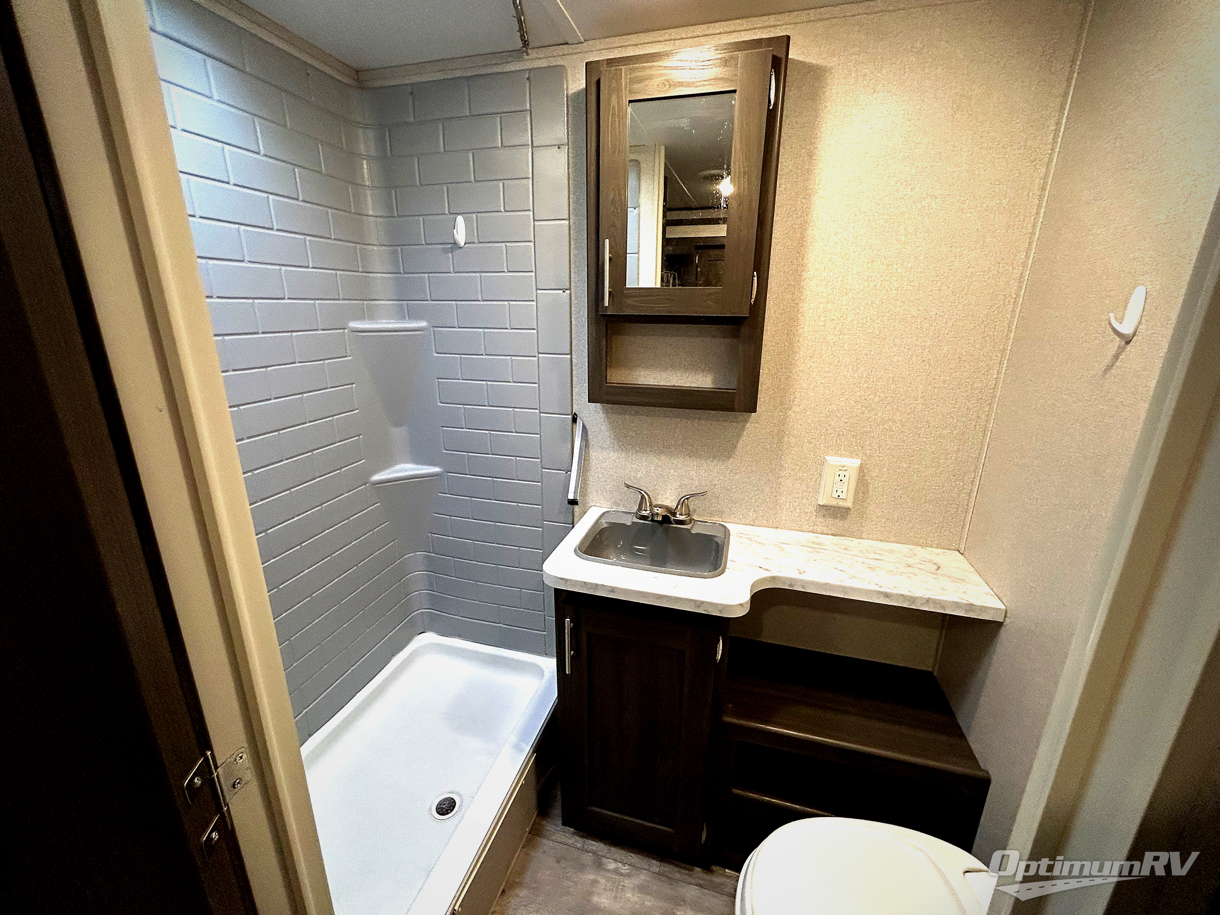 If you're looking for a floorplan with a little more character, choose this travel trailer that features a front kitchen and a private rear bedroom! You'll love that there are two entry doors; one leading into the kitchen and one leading into the rear private bedroom. The chef of the family can prepare breakfast on the three burner cooktop and the milk and eggs can go back in the 10.7 cu. ft. residential refrigerator. Head outdoors to take a hike or swim at the lake and when you return, the full bath will allow you to clean up before bed. You'll find comfortable sleeping space on the RV queen bed in the bedroom and the kids can convert the sofa and booth dinette for the night.