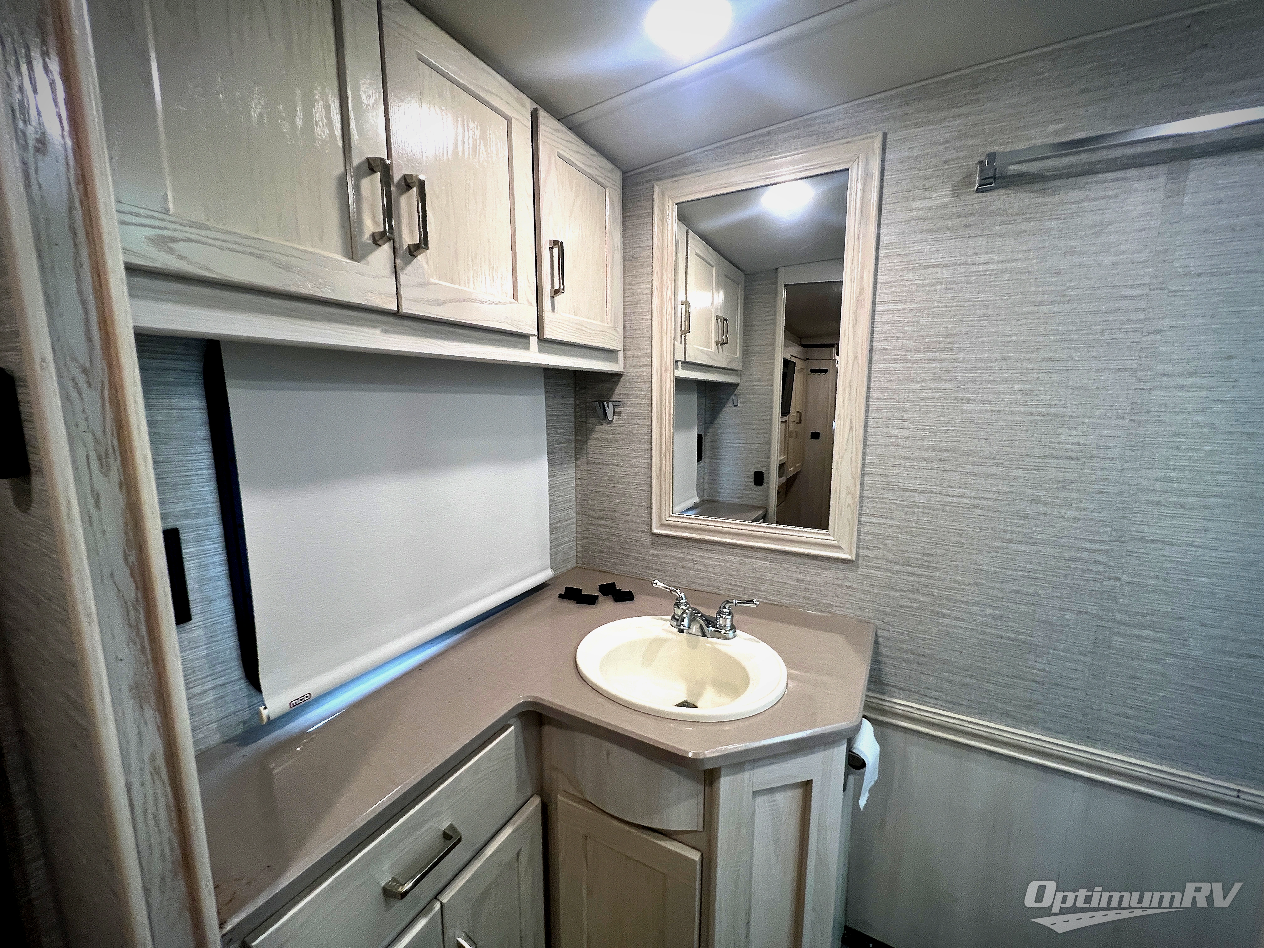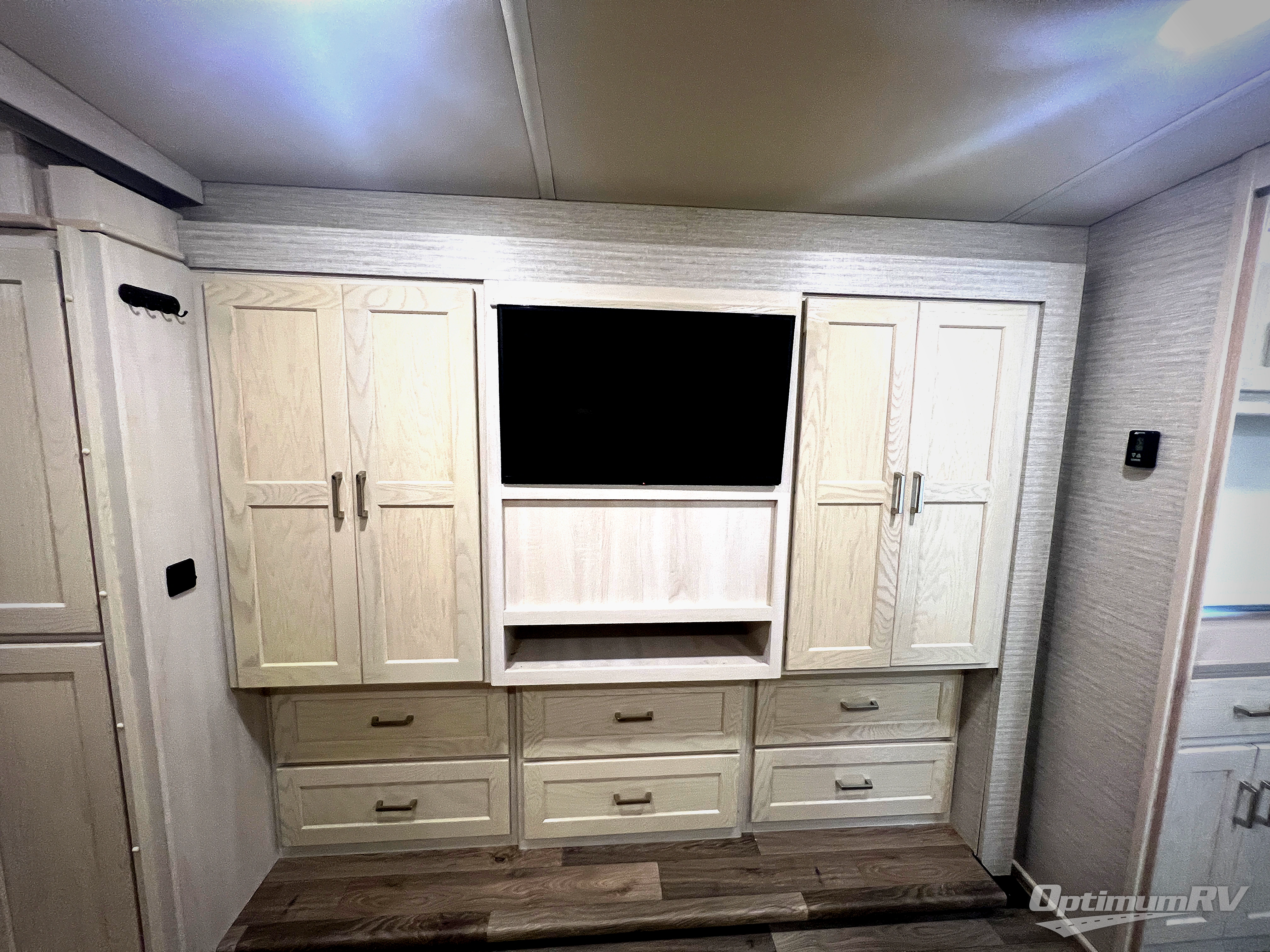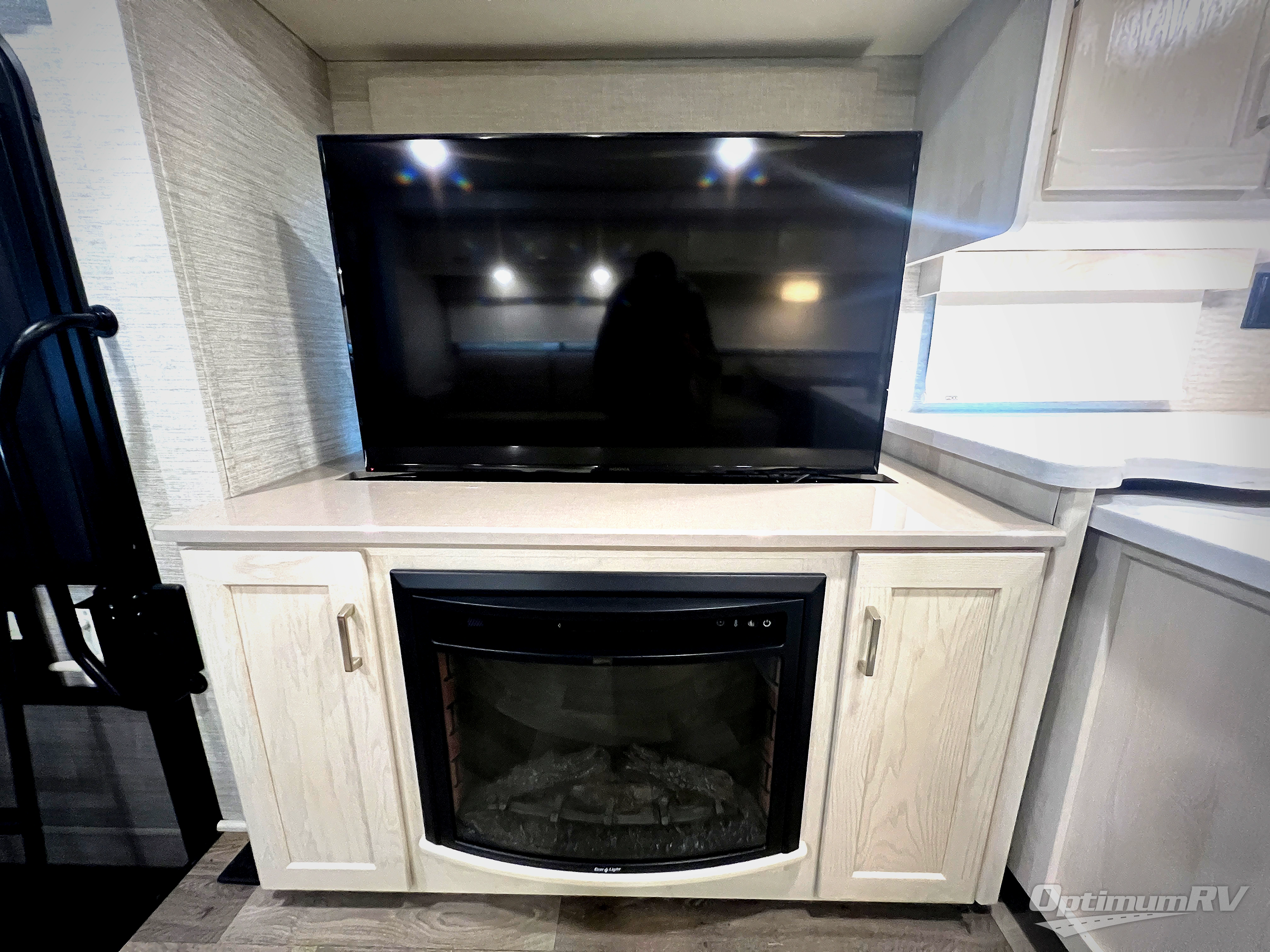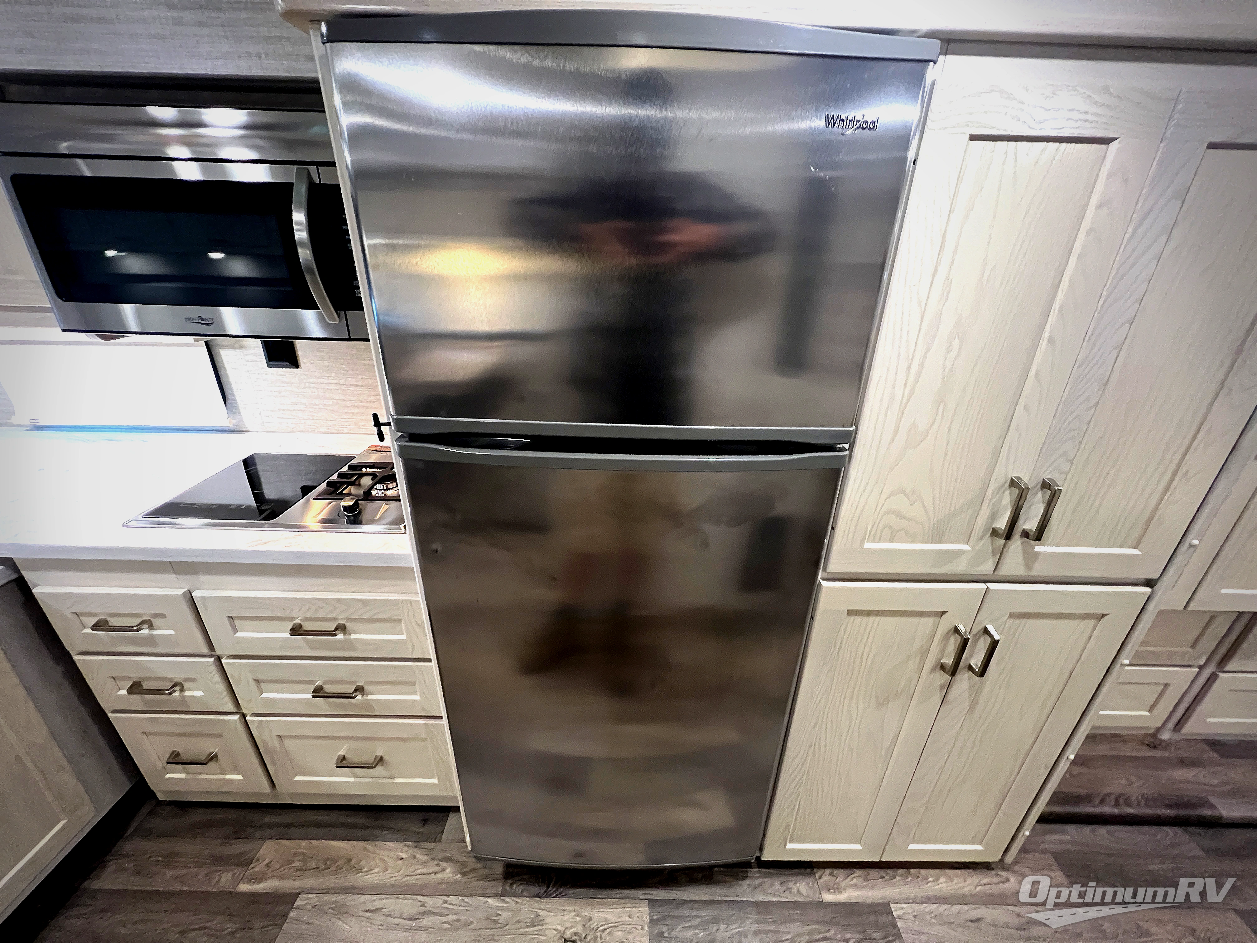 Triple slides really open up the living area and bedroom offering you a home away from home for as long as you like. You can even add a washer/dryer option in the pantry location. The kitchen offers full amenities plus a residential refrigerator. You can dine at the BenchMark dinette with Hi-Lo table, or while relaxing on the TrueComfort+ sofa, or in the driver and passenger seats that swivel. There is a removable pedestal table to use as well. The furniture and the StudioLoft bed if you added that convenience will allow the family to join you on any trip you take. Outside you can relax under the power awning and watch the 32" HDTV with DVD player and cook something using the Tailgate package which offers a portable grill with folding stand, a stainless steel sink, an ice chest with a drain plug and more!
