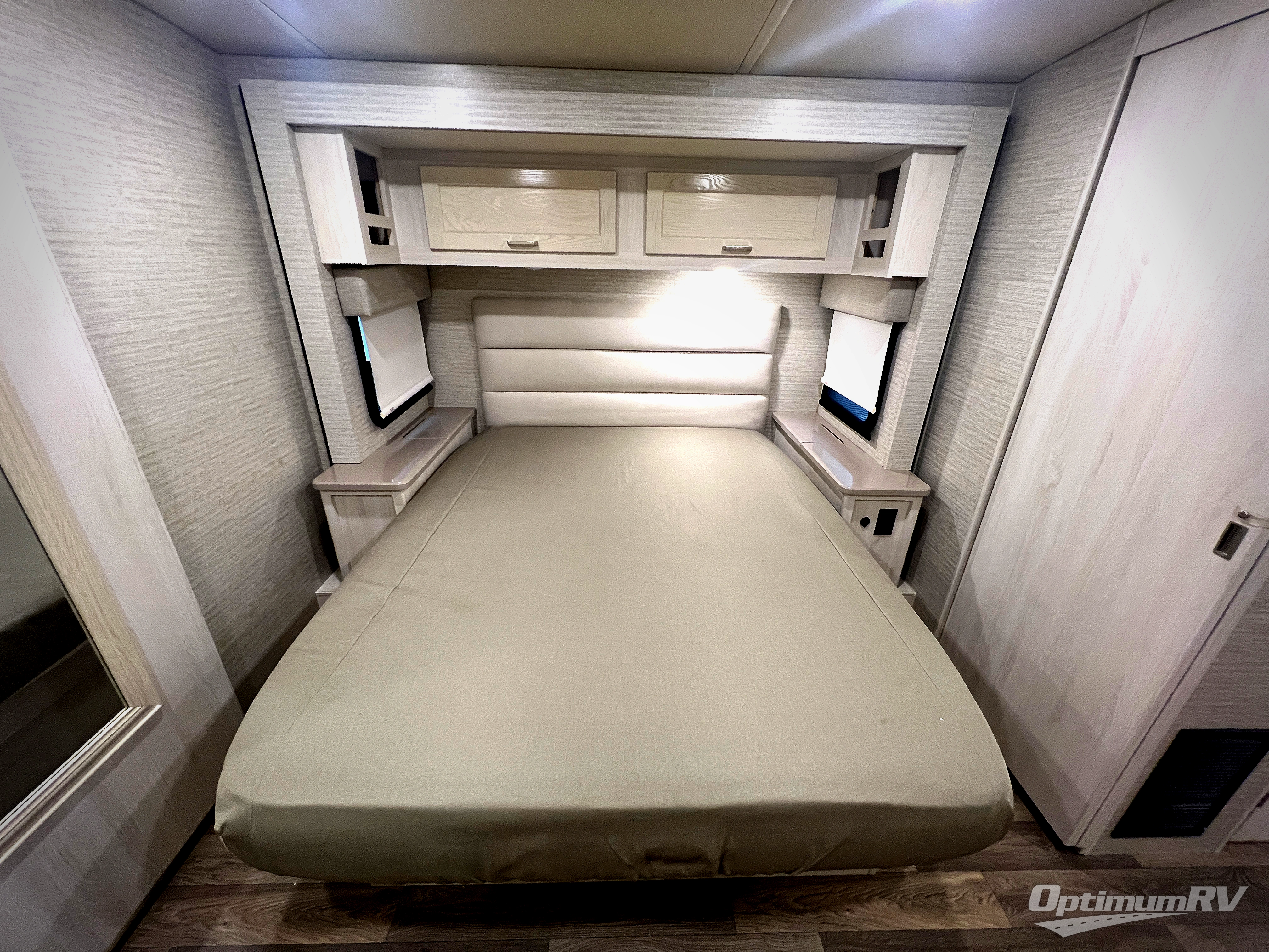 Each Winnebago Adventurer Class A gas motorhome is built with an exclusive steel SuperStructure surrounding the cab for safety, a Ford F53 chassis with 320 HP, and custom holding tanks to improve weight distribution and handling as well as increase storage space. You will also find features such as a 5,500-watt Cummins Onan Marquis Gold gas generator, a solar panel mounted to the roof, a PowerLine Energy Management system, a Wi-Fi prep kit, and a solar panel/battery charger prep kit to mention a few ways you can keep everything up and running throughout your travels. Some interior highlights include MCD solar/blackout shades for privacy, a double stainless steel sink with bamboo sink covers, a cold water purification system, a flexible showerhead, and a queen bed with a foam mattress and storage below. Stylish luxury, spacious living spaces, and amenities you don't want to leave home without, choose an Adventurer today!
