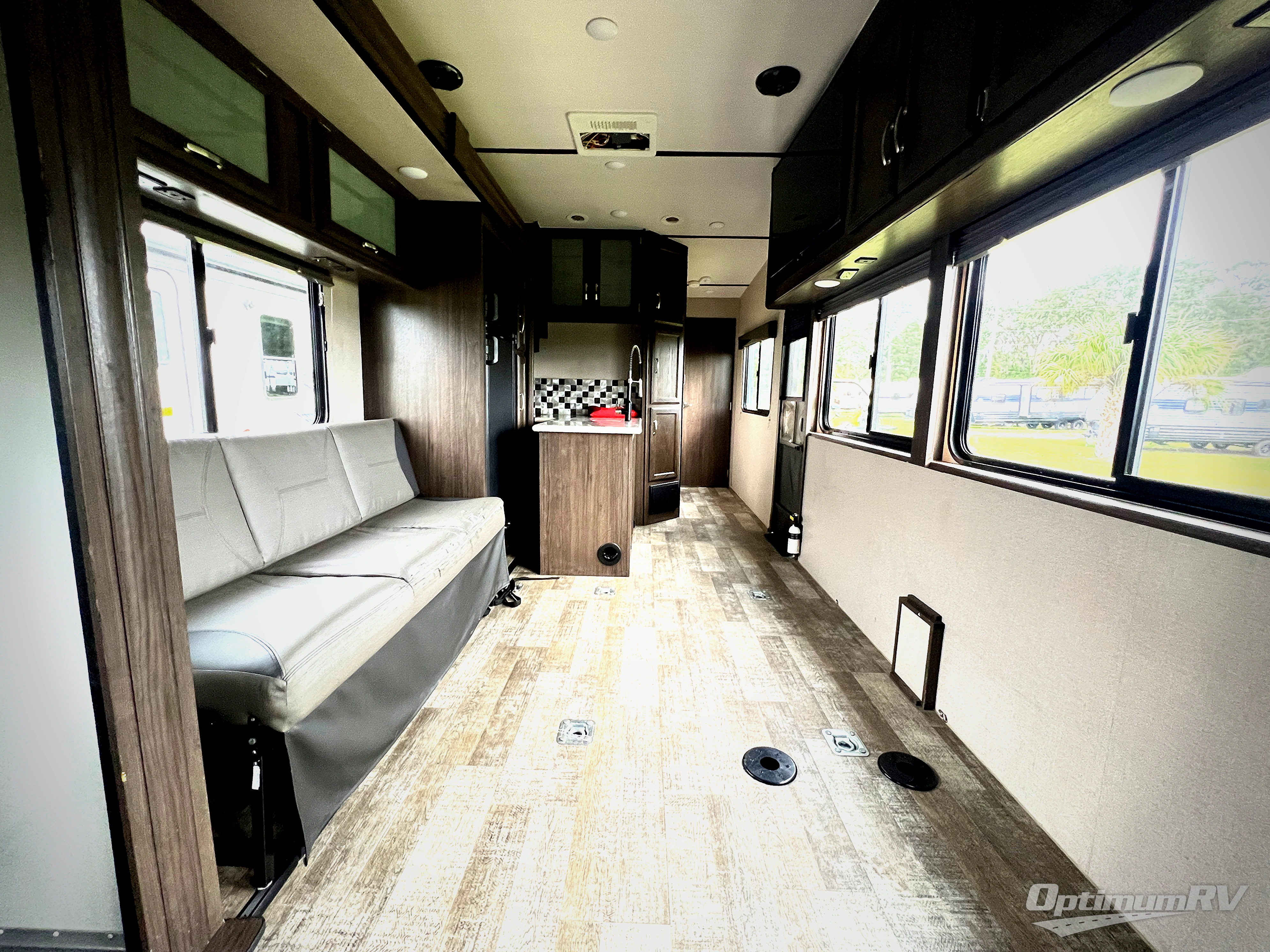 With double slides, a king bed, plus 14' cargo space, this toy hauler is packed with all the features you are sure to love. In the evening your guests can sleep on the Happi Jak sofas or on the drop-down queen bed in the garage and you'll appreciate your own private bedroom with access to the dual entry bath for convenience. Whip up some breakfast on the three burner range or make something quick in the microwave before taking your Harley on a ride and you'll appreciate a full bath to clean up after a long day. This unit also includes a 70" wall-mount sofa that is great for watching a movie on or for even more sleeping space.