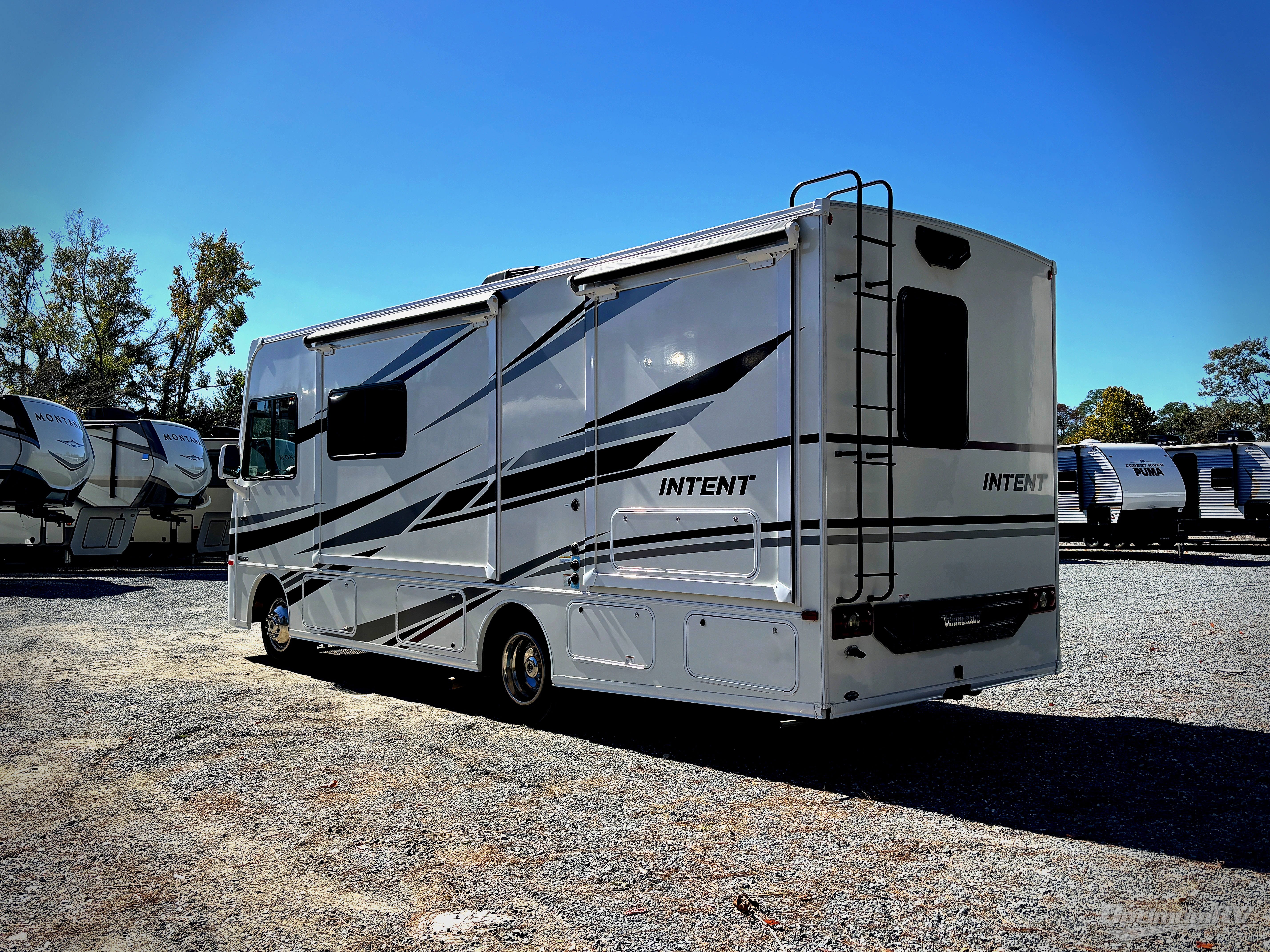 The smartly-styled Intent motorhome from Winnebago offers a fresh and attractive interior with vinyl flooring and LED lighting throughout, as well as tinted windows that will prohibit the sun's rays from damaging the beautiful furnishings. Every inch of the Intent has been designed to be superbly functional with amenities like the booth dinette that is able to be used as a dining area, seating area for travel, or sleeping area. Additionally, the Intent is supremely affordable, yet it still adheres to the solid foundation standards that you have grown to love from Winnebago.