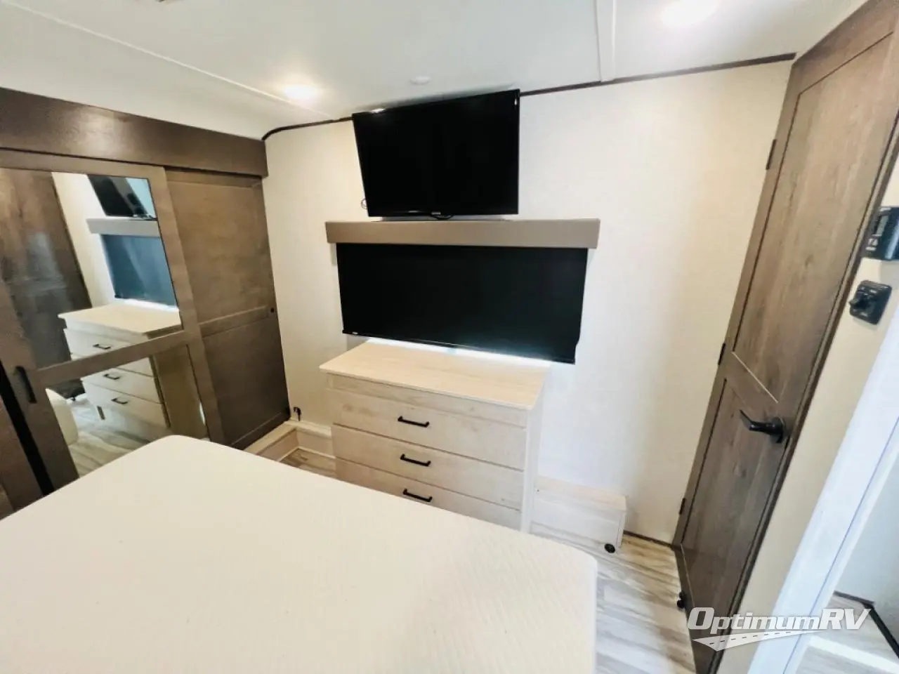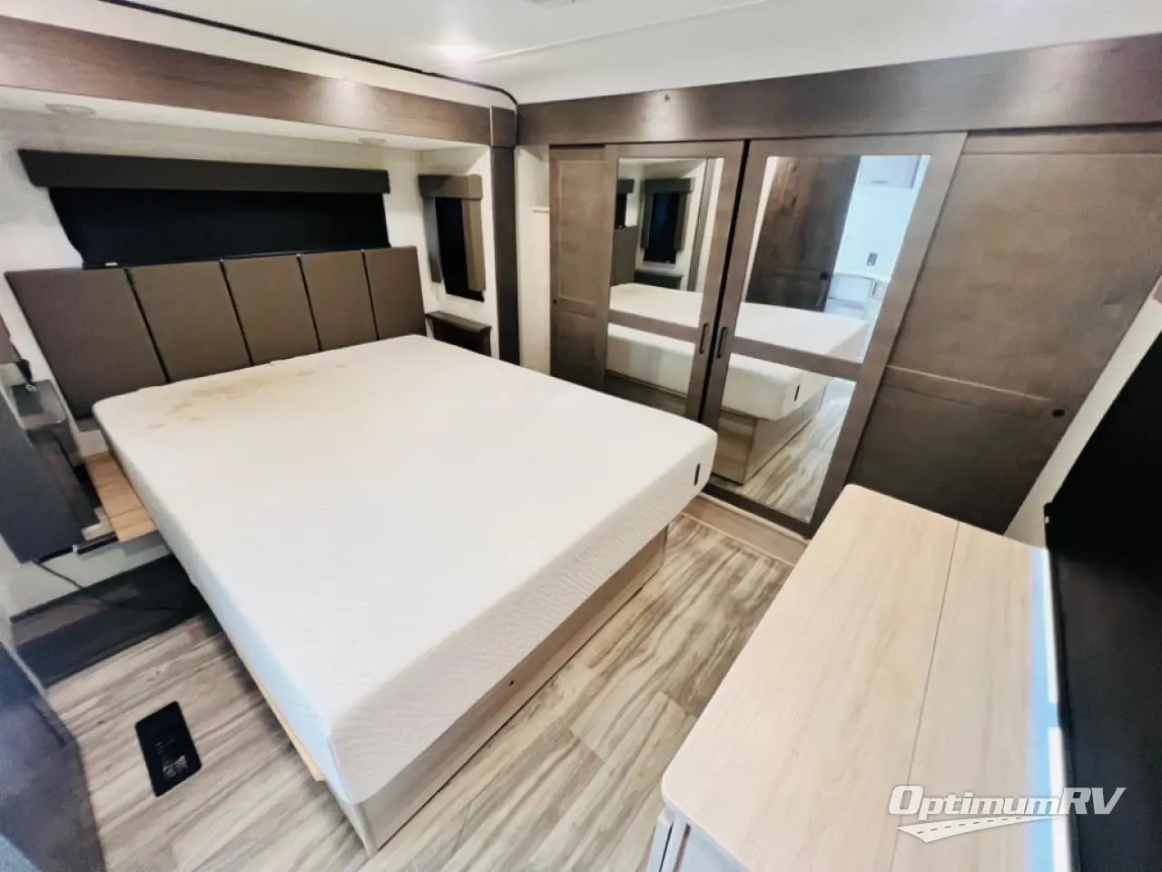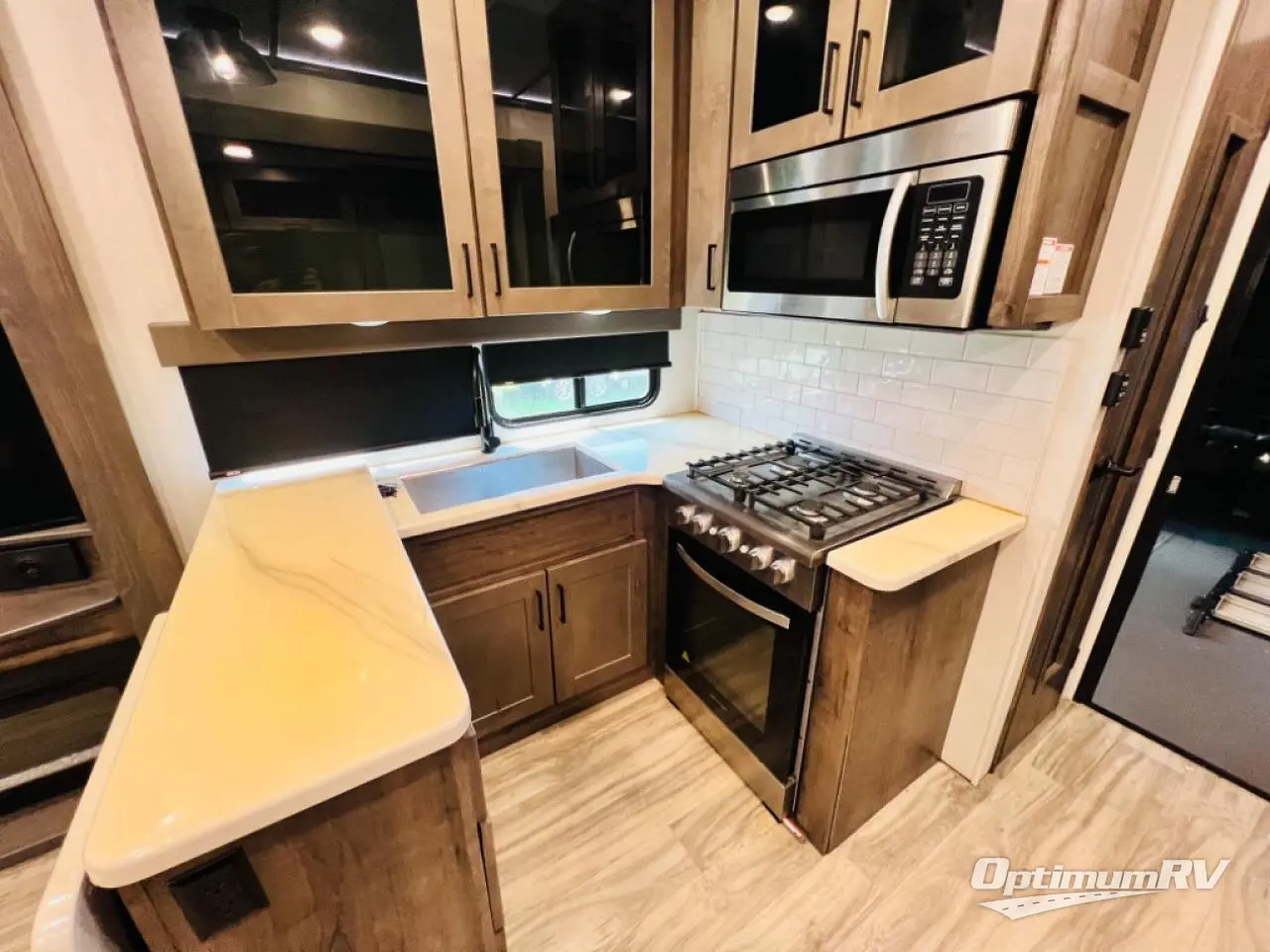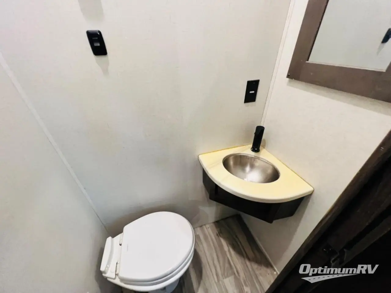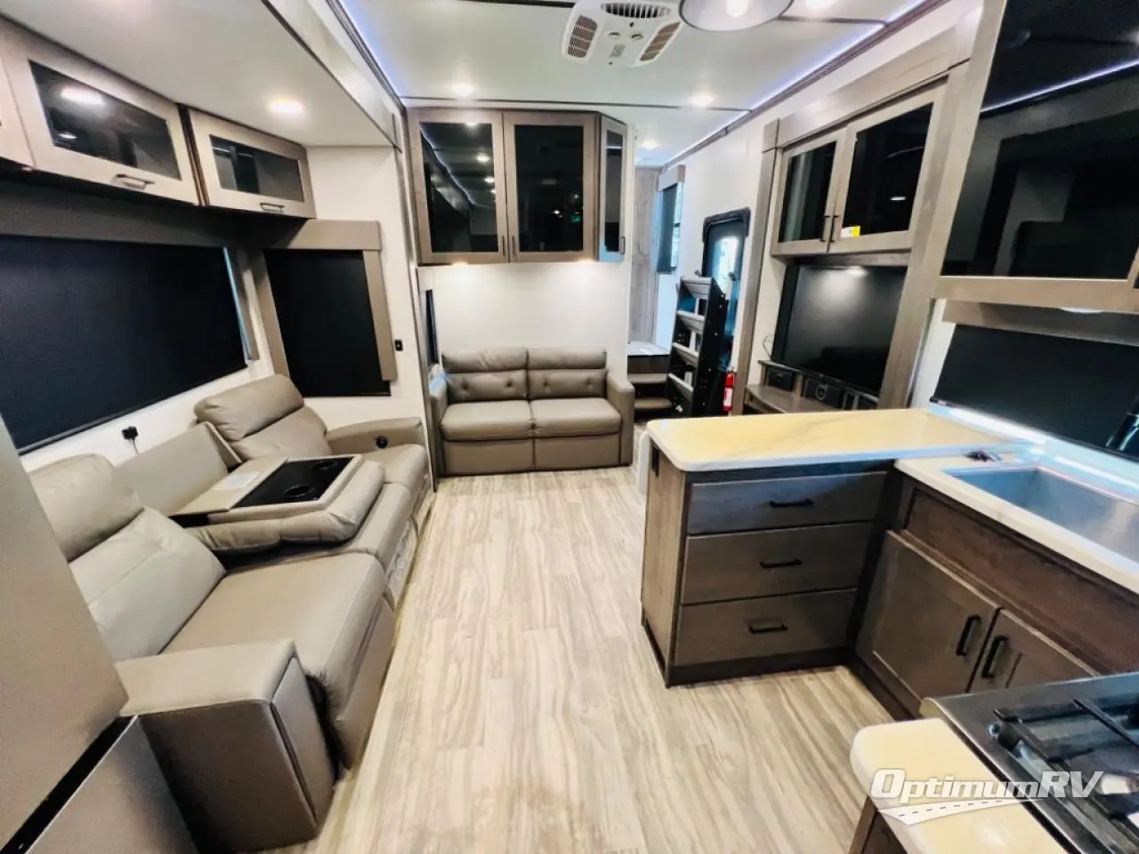 With this Valor fifth wheel toy hauler, there is practically nothing stopping you from having the best adventures! You will have endless nights of fun in the living area that has two sofas, a fireplace, and a Smart TV, and since the kitchen is also included in this space, you can get up to make a little snack while still being involved in the party. Get away for a little relaxation in the front master suite. The bedroom has a king-size bed slide for some extra space and comfort, and the full-width wardrobe will easily be able to store your clothing. The other area that is decked out to perfection is the 13' separate garage. The garage has two roll-over sofas, a queen-size bunk, a half bathroom, and the second exterior entry door, and just outside of that entry door is where you will find an air compressor on the exterior.