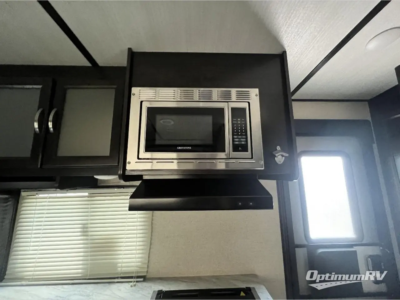 This perfect couple's Spirit Ultra Lite travel trailer offers a spacious interior with a slide out and everything you need to eat, sleep, and relax in comfort! The full kitchen with its three-burner range top and microwave will be extremely helpful each morning as you prepare a batch of pancakes and a pan of bacon. You will be grateful for the radius shower in the full bathroom so that you can easily get cleaned up and prepared for the day ahead. The sofa slide is convenient because it extends out which means that you have more interior living space, and the two end tables will be perfect for holding drinks and snacks as you sit and relax on the sofa.
