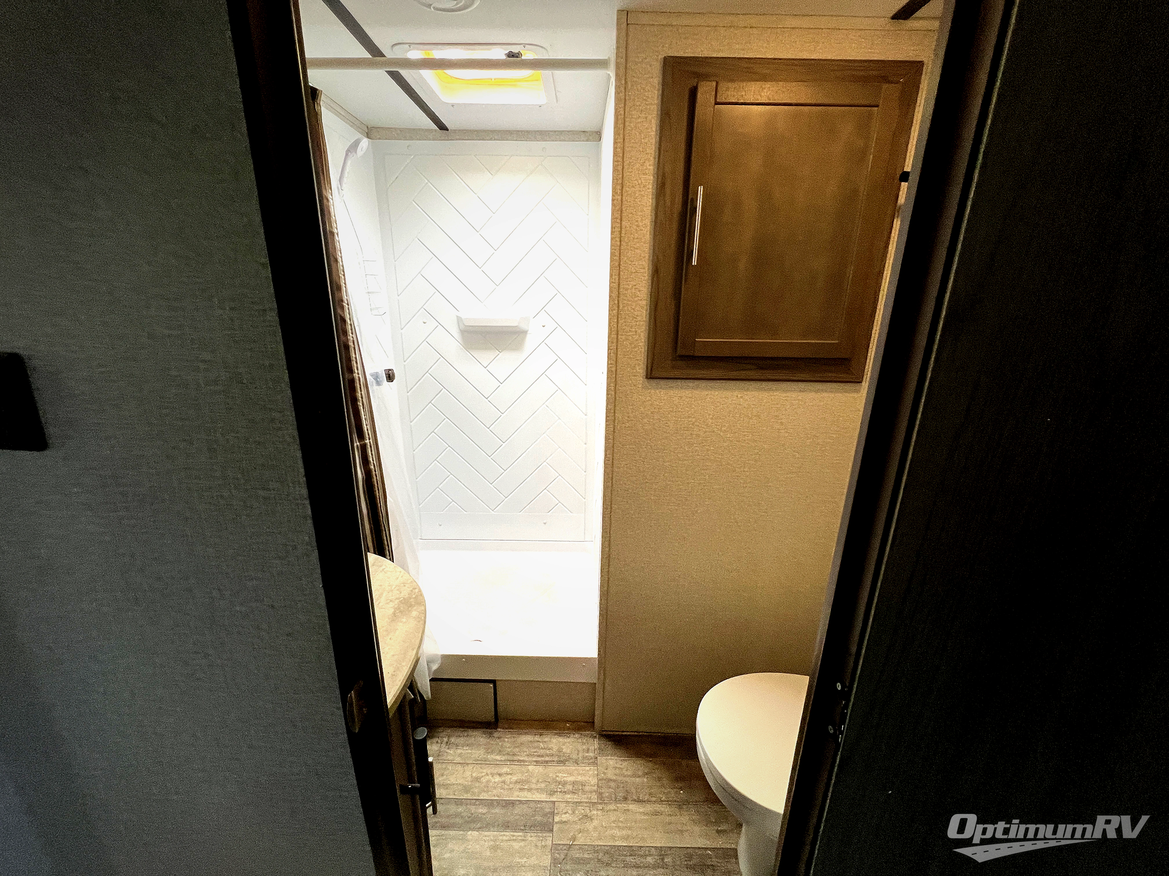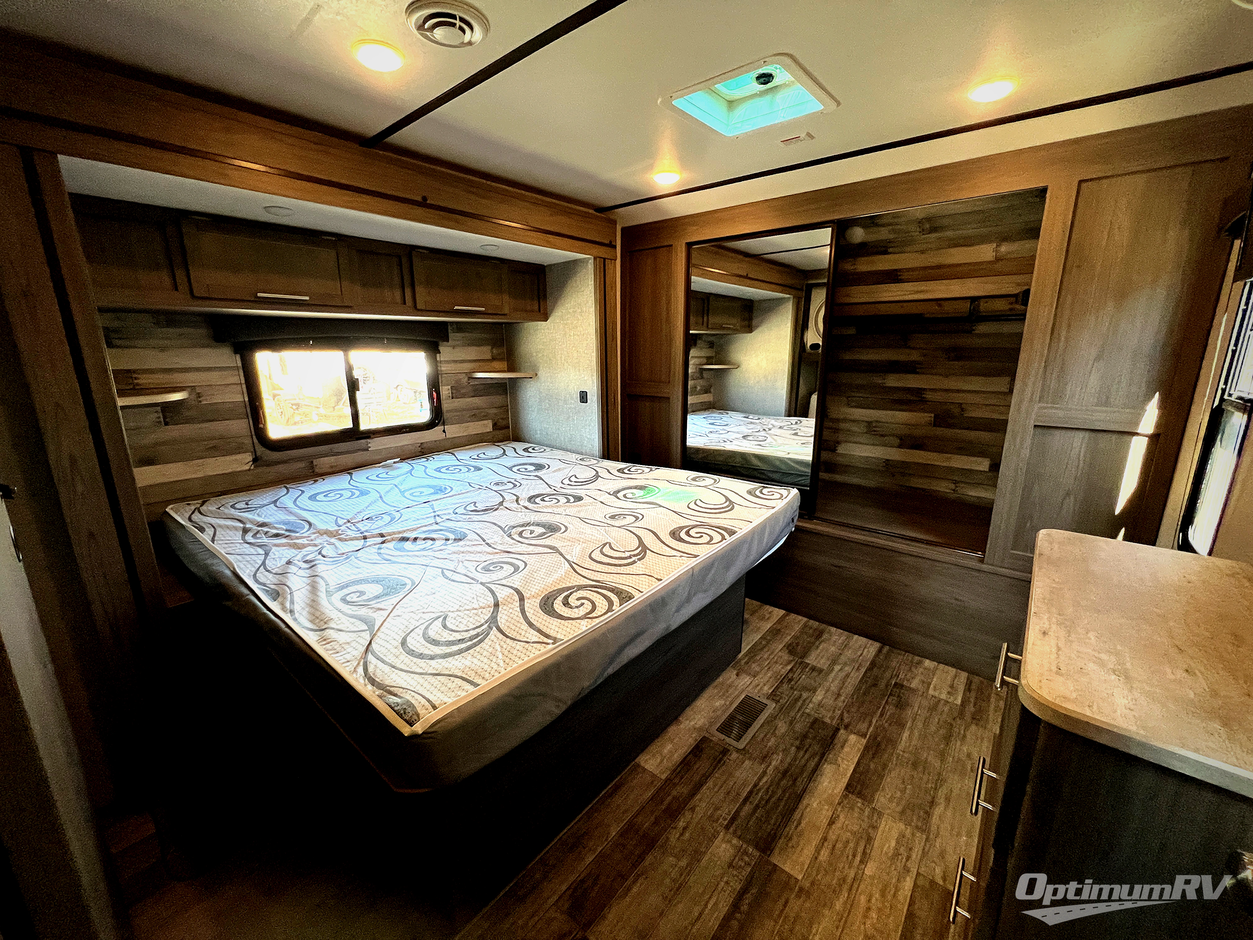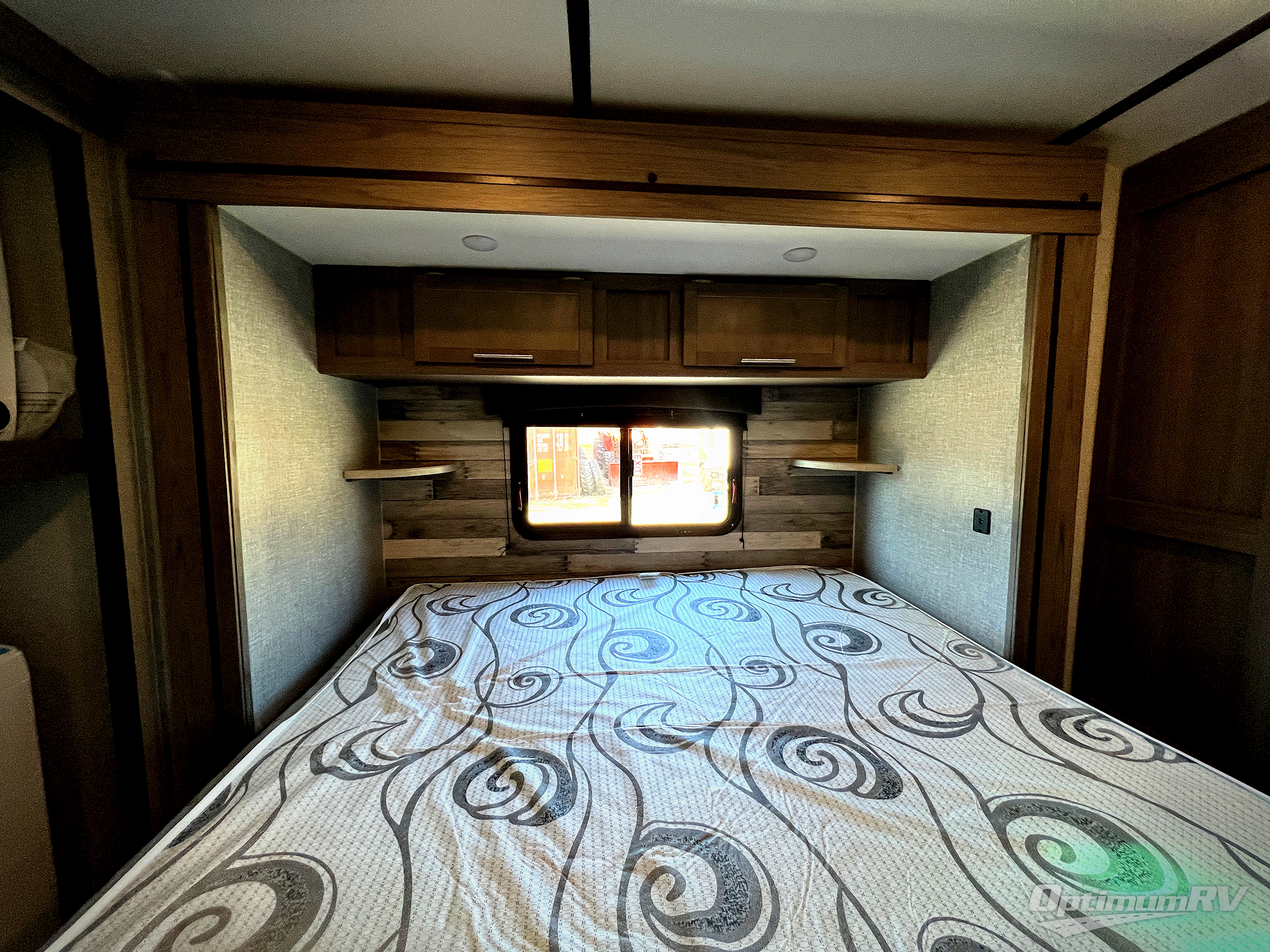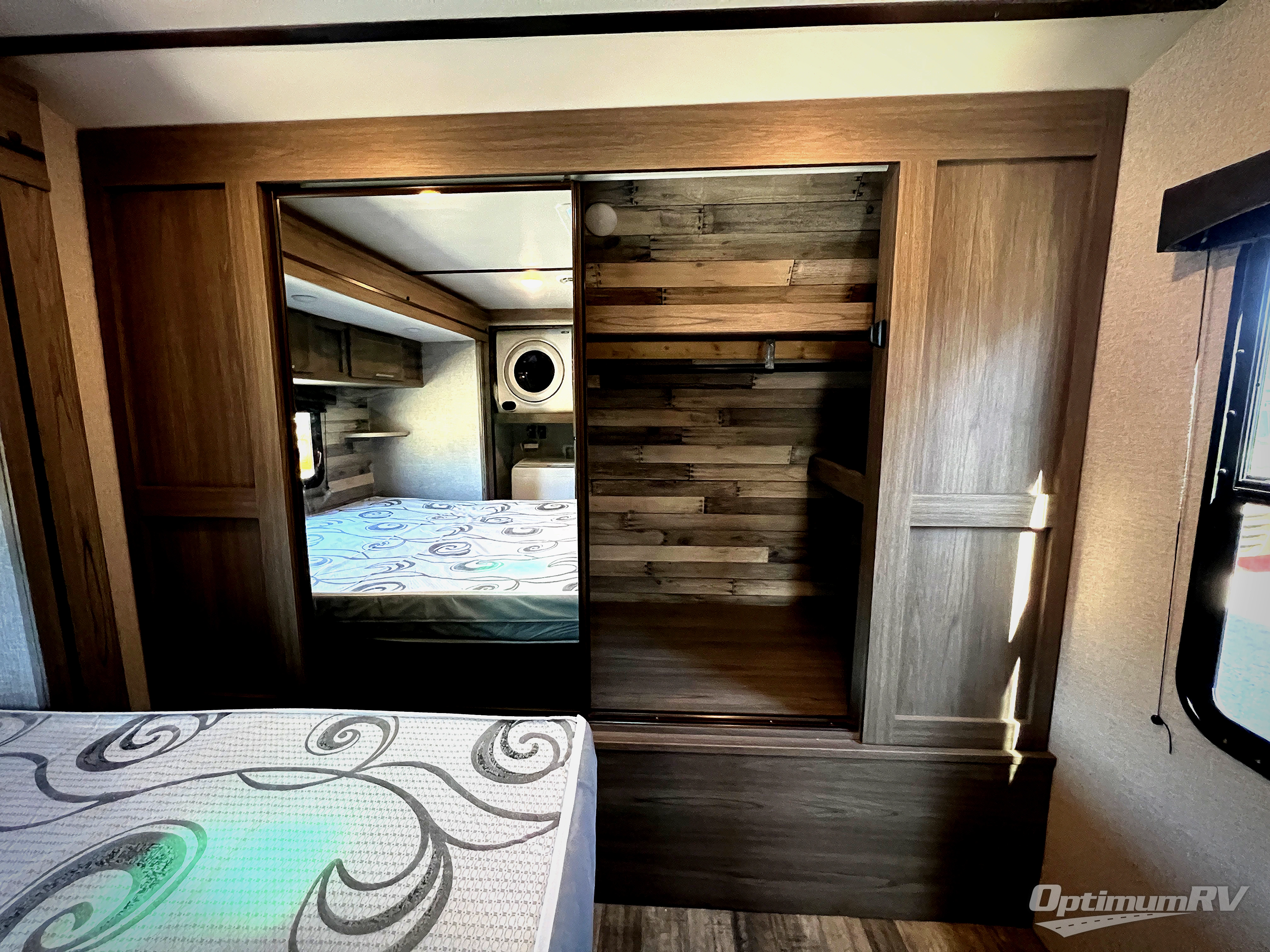 Whether you're relaxing on the theater seats, preparing a meal at the kitchen island, or taking a rest on the slide out king bed, you will enjoy every minute spent in this travel trailer. Your guests will love to sit at the stools around the kitchen island, or they can play a game around the U-shaped dinette. This model includes a hutch with a wine cooler to serve your guests, and the pantry can store snacks for everyone. When it's time to call it a night, the front private bedroom will feel just like home with its king bed and a large front wardrobe. There is even a space that has been prepped to add an optional washer and dryer if you choose!