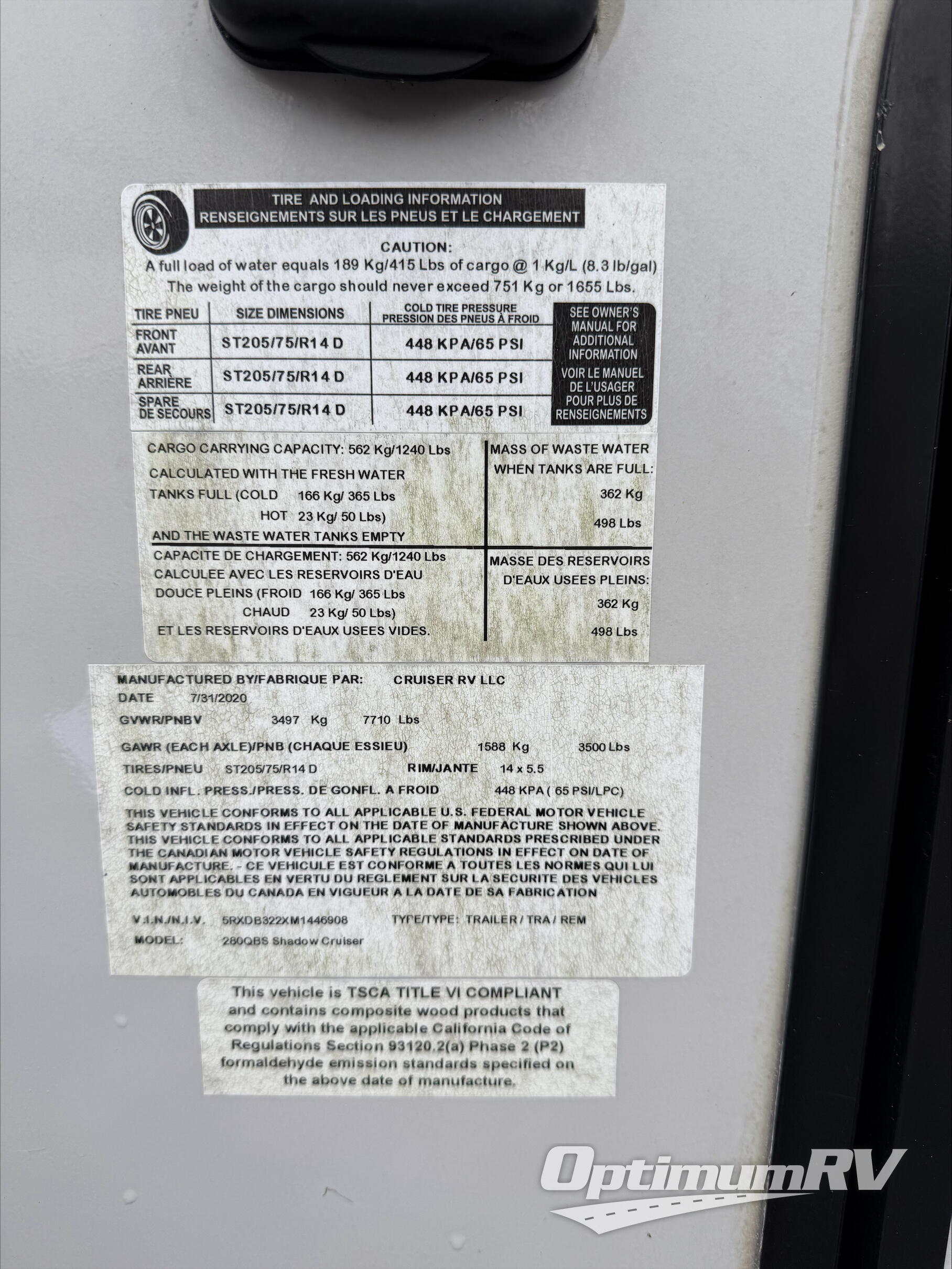 Cruiser RV Shadow Cruiser travel trailer 280QBS highlights: