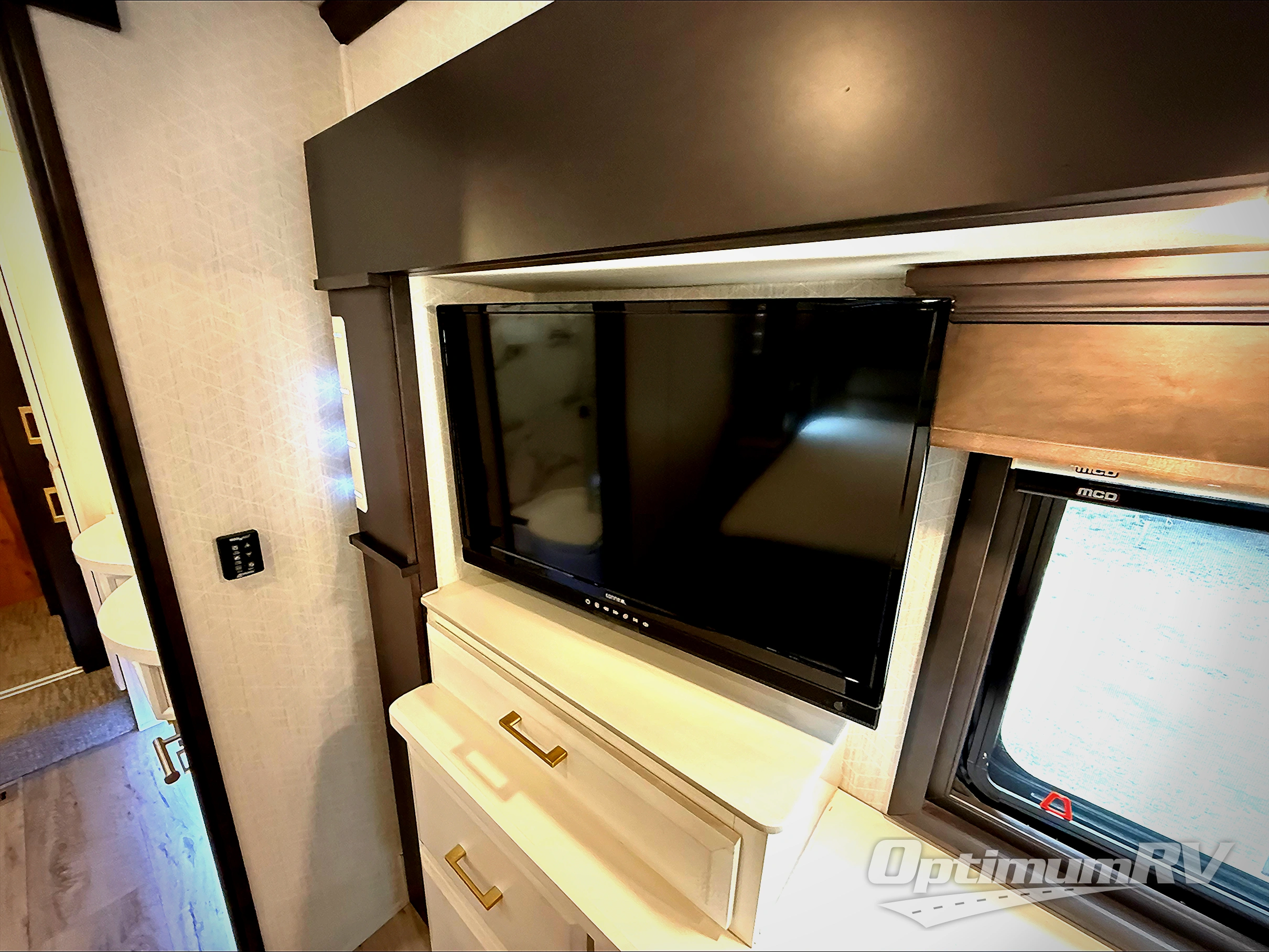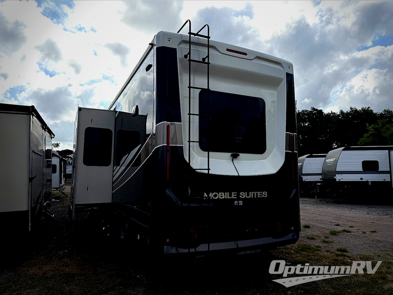 With any Mobile Suites fifth wheel by DRV Luxury Suites you will enjoy durable construction, beautiful interiors, and tons of storage spaces. The MORryde I.S suspension with MORryde pin box helps absorb road shock for a smooth towing experience, and the six point hydraulic leveling system will make set-up a breeze. Each model includes hassle-free conveniences, like the SeeLevel tank monitoring, the fully ducted A/C system with cold air return, solar prep, and much more! The interior is packed with luxury features, such as custom hardwood wardrobe doors, LED ceiling lights with dimmer switches, crown molding throughout, and custom hand laid glass backsplash. You may spend all your time relaxing indoors, but don't forget to check out the exterior. A power awning with LED lights, extra thick compartment doors with gas struts, and a custom painted exterior with clear coat are just a few features that are sure to be a deal breaker!