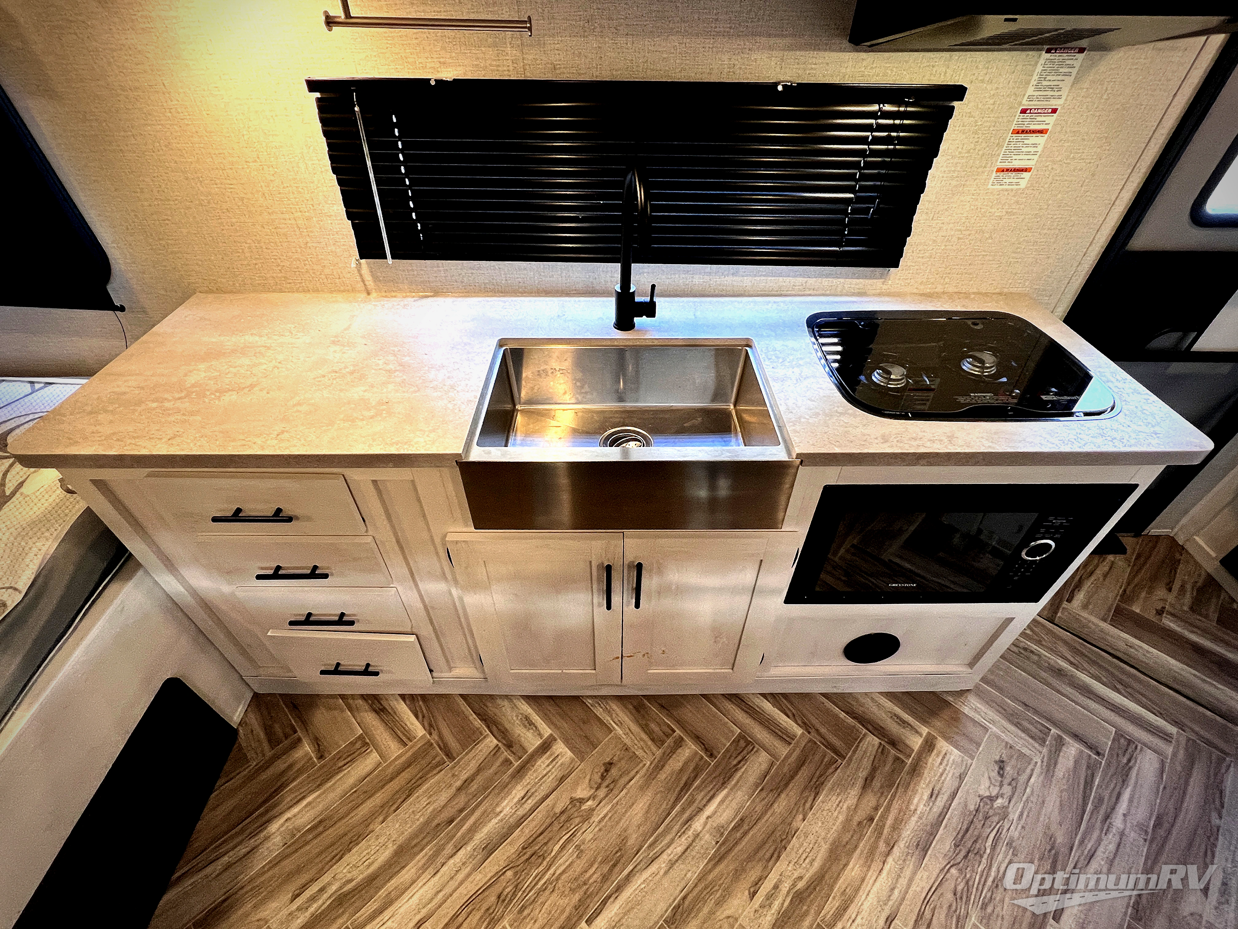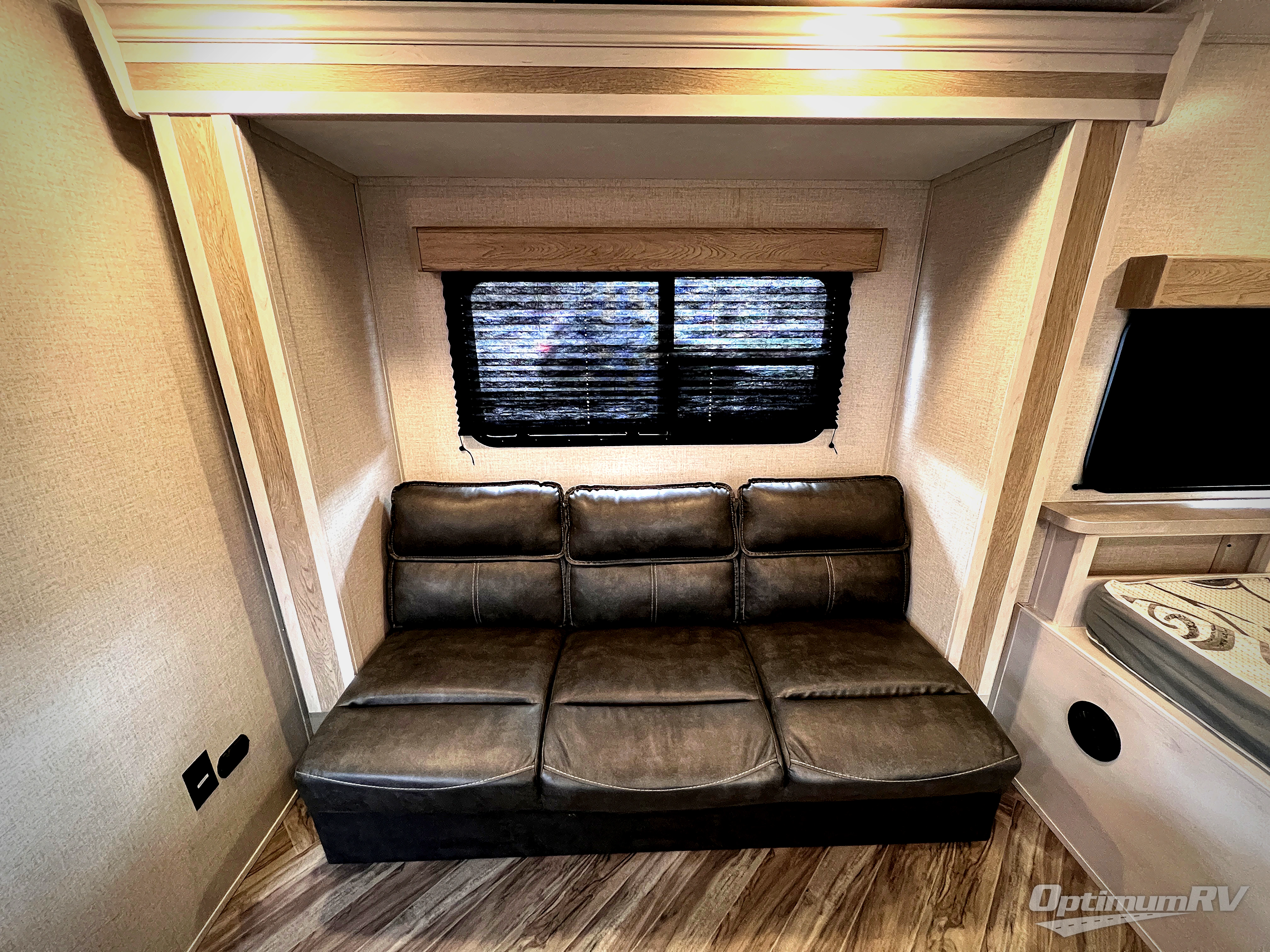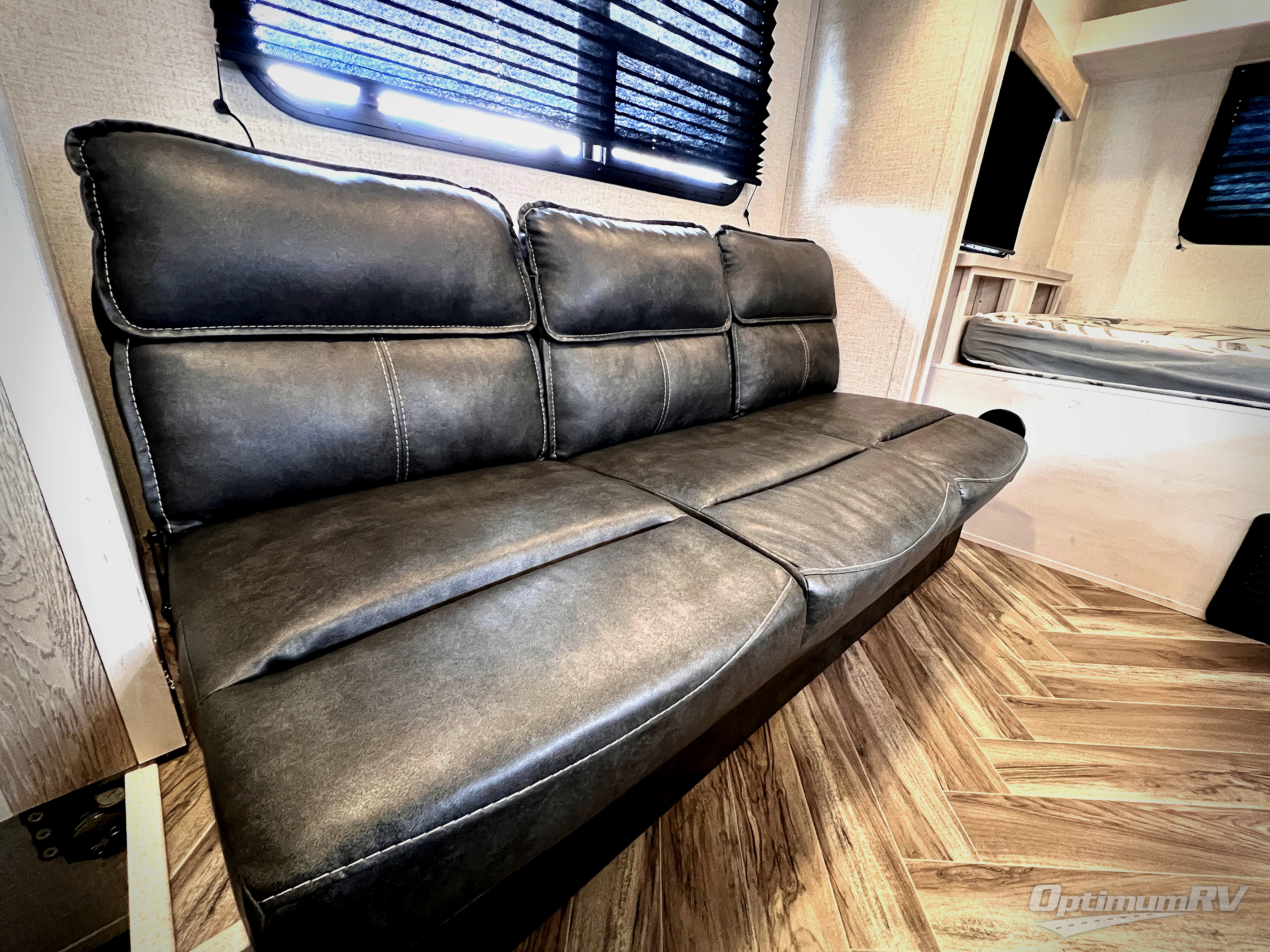 You and your spouse will love camping in this travel trailer! The front queen bed welcomes you to enjoy a good night's rest each night so you can feel refreshed every morning. After you have fried up some eggs with the two burner range, you can head to the sofa slide and enjoy it there with the indoor/outdoor table or take the table outside to have breakfast outdoors under the 12' power awning. The rear corner bathroom has a radius shower with a skylight above for natural lighting as you get ready each morning!