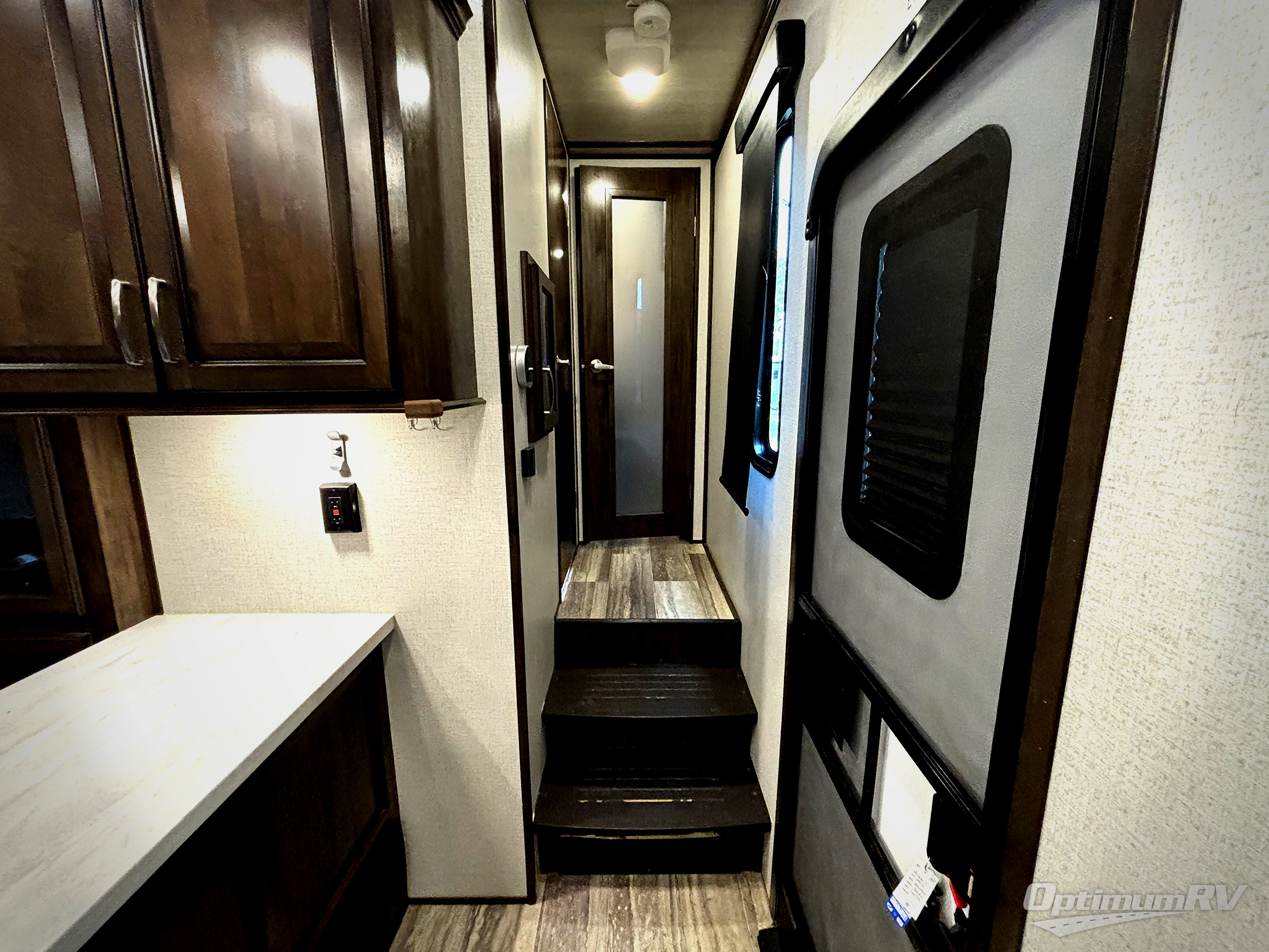 You will be extremely impressed by the amount of luxury found on the Dutchmen Voltage fifth wheel toy hauler! Some of the premium features that you will find on the Voltage are the Zero-Gravity ramp door that lets you access your toys with very little effort and the king-size bed which offers you extra space for sleeping comfortably. The Voltage also has industry-leading 7'-tall slides so that you can feel free to stretch your legs while inside. The ramp door patio system is certainly going to be an appealing factor because it provides you with an extra party space, and the dedicated heat ducts for the underbelly and the All-Weather Package with additional insulation will ensure that your Voltage is protected and prepared for all sorts of weather.