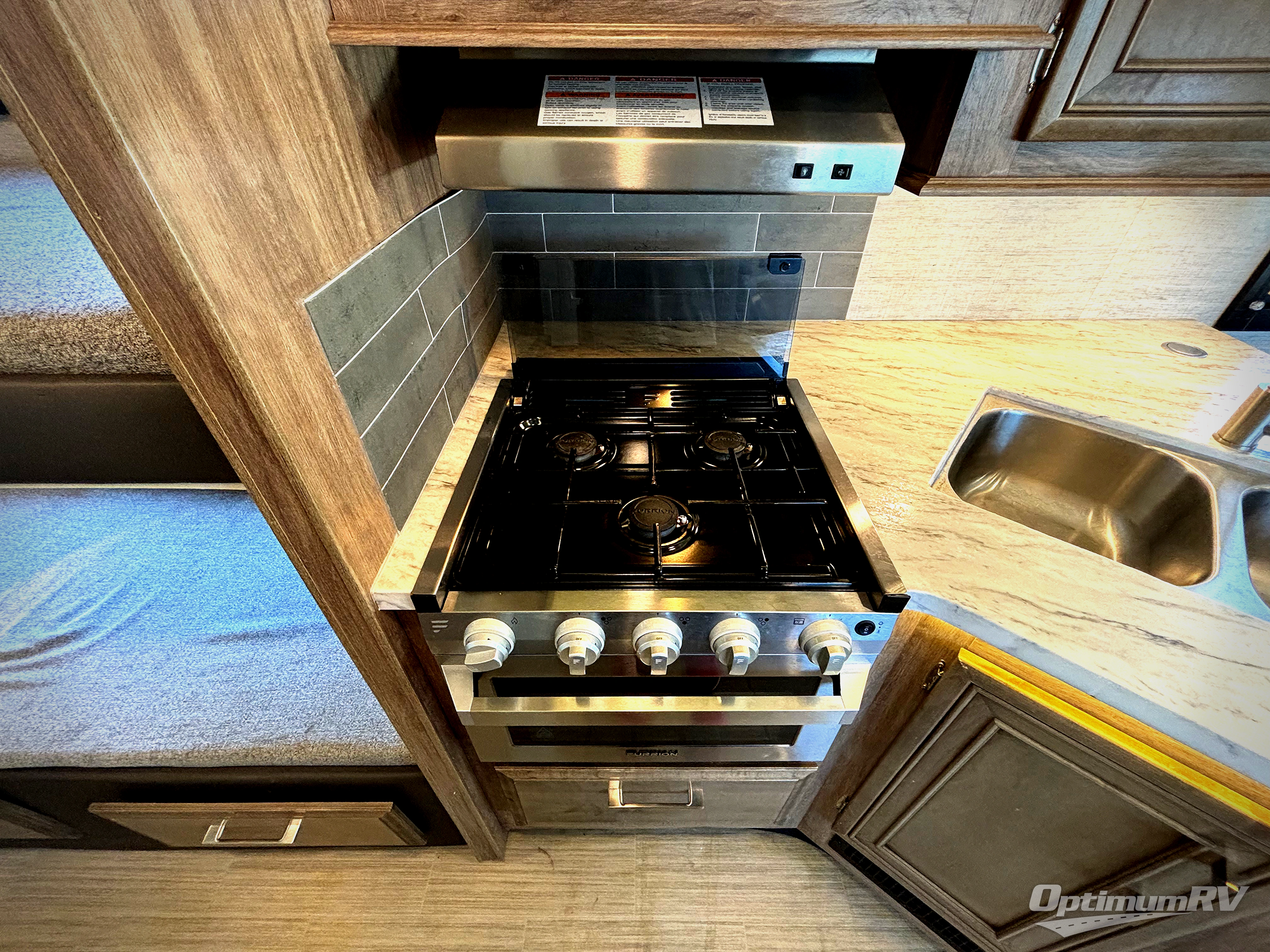 Traveling with family has never been easier than in this motorhome that includes bunk beds, plus a cab-over bunk. The full-wall slide will allow you to move around comfortably once you arrive at your destination, and you'll find seating space on the sofa and booth dinette. Let the chef of the family prepare lunch on the Furrion all-in-one cooktop, then take your plate to sit under the 18' power awning with LED lights.The dual entry bath is both spacious and convenient since you and your spouse will have easy access from the rear bedroom, and your guests can use the hallway entrance.