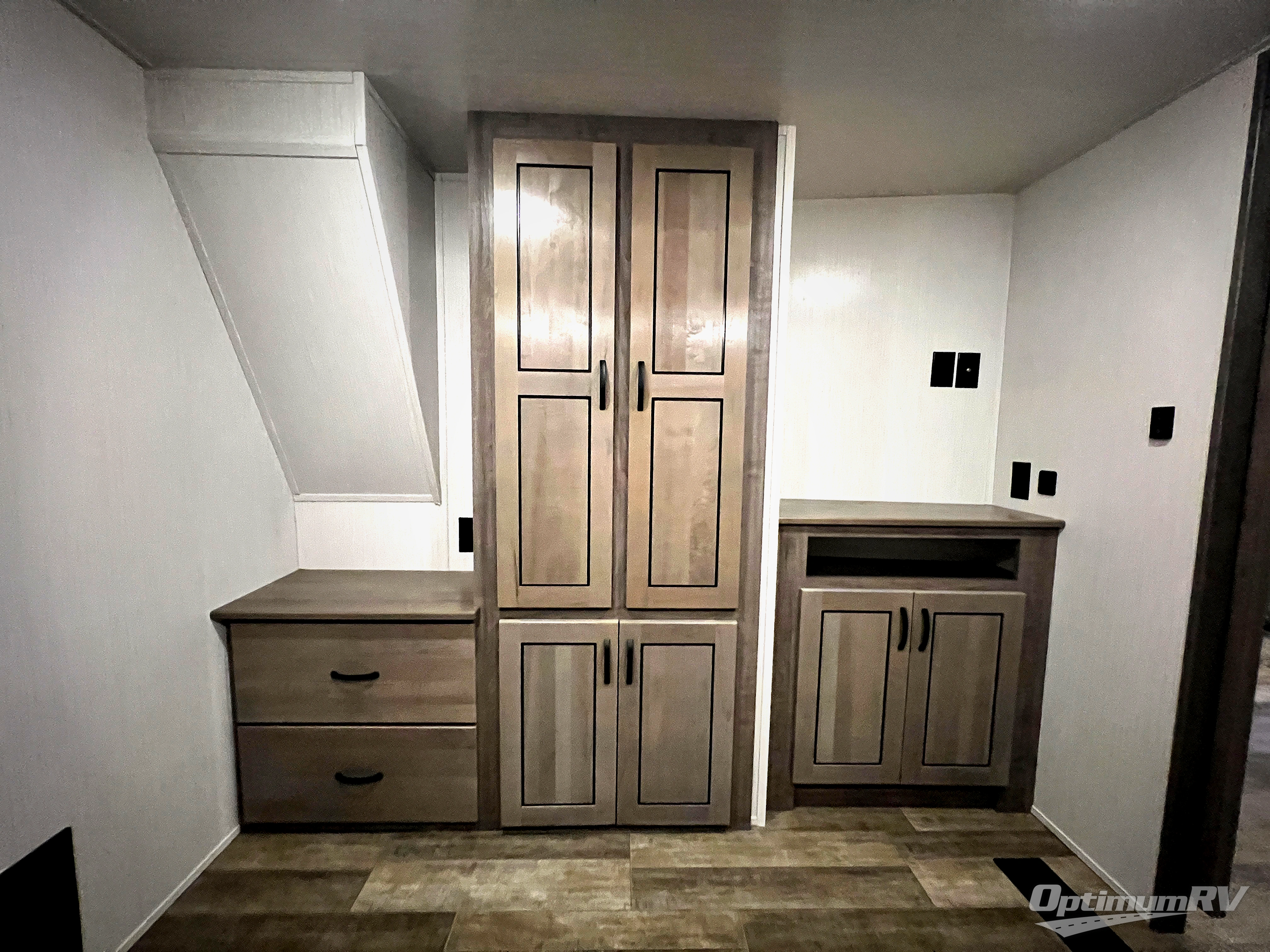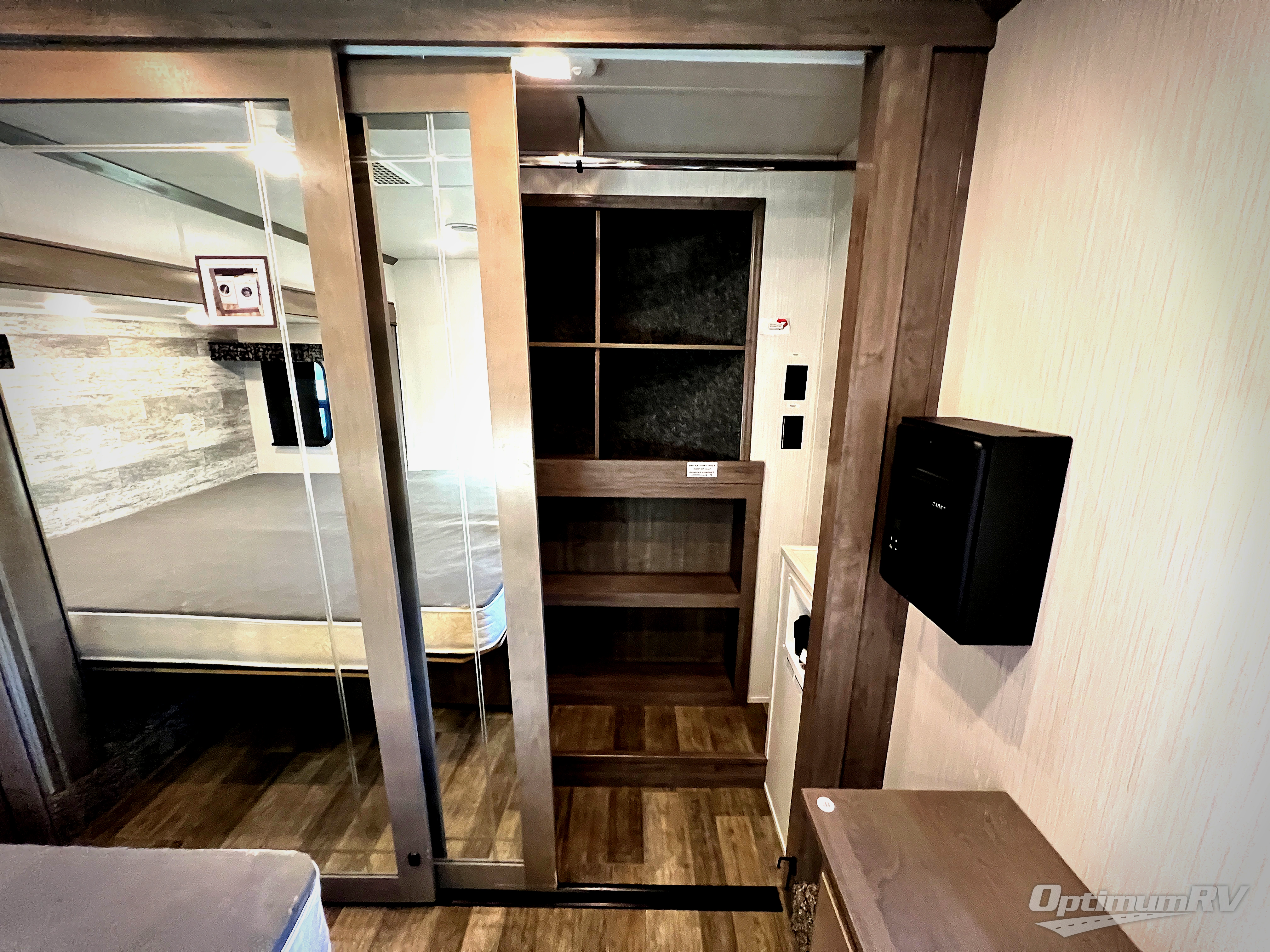 With two bedrooms, everyone will enjoy a good night's rest in this Cedar Creek fifth wheel! The front private bedroom has a king bed across from a dresser with a 32" TV and a full-width wardrobe with storage shelves and an area prepped to add the optional washer and dryer. The second bedroom has hide-a-bed sofa across from a wardrobe with a 91" x 64 1/4" loft above it all for extra sleeping and storage space. Everyone can freshen up each morning in the full bathroom that has a shower with a seat and a linen closet to store your towels. You can whip up a delicious home-cooked meal indoors with the kitchen island, or if you wish to add the optional exterior pull-out kitchen, then you can breathe in some fresh air while you grill!