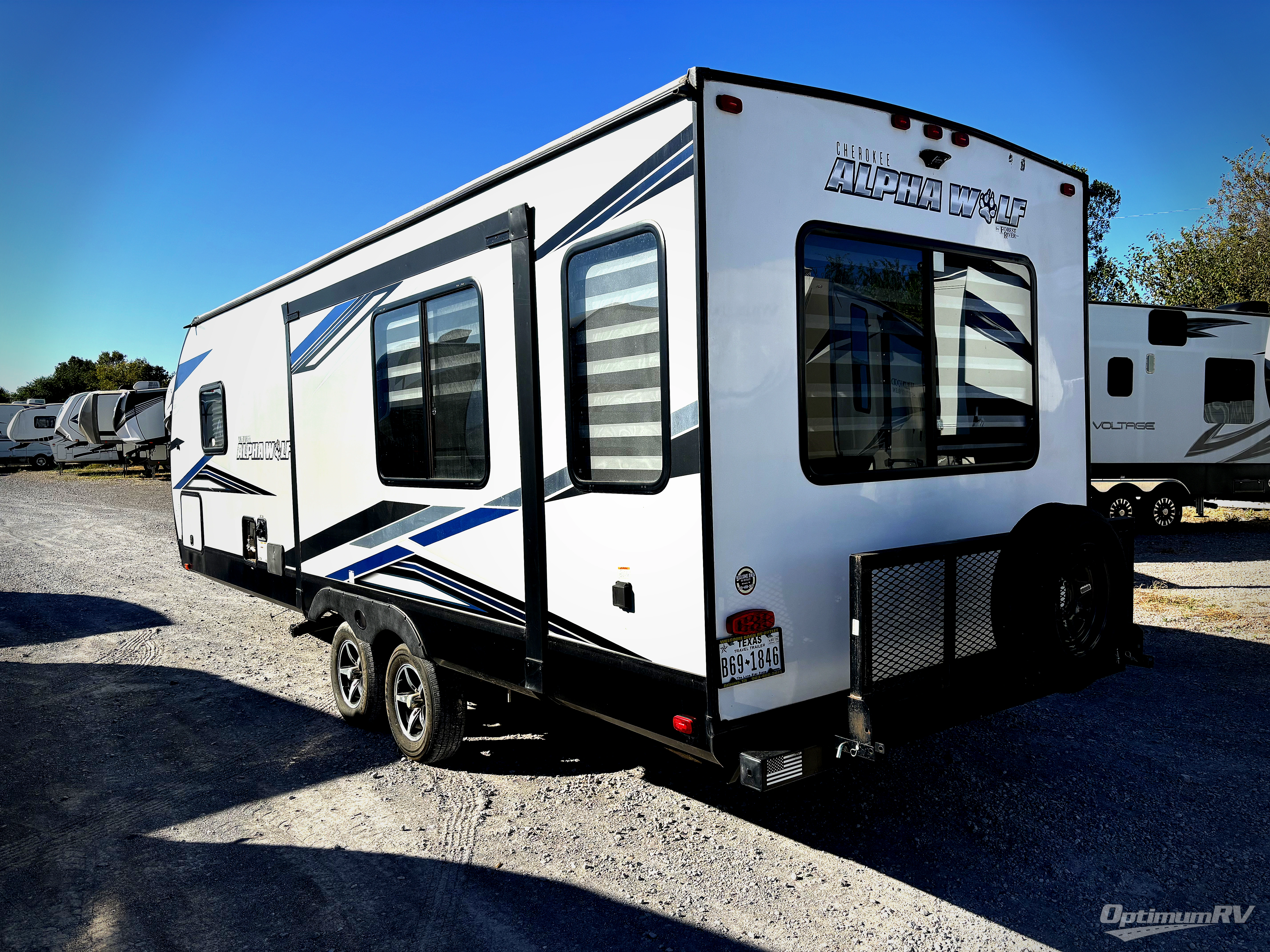 You will be one happy camper with any one of these Forest River Cherokee Alpha Wolf travel trailers! You will not only find top shelf amenities, but also a tougher, lighter, and better insulated shell with the engineered wood SuperTruss roof structure with 3/8" fully walkable decking. The LED interior and exterior lighting packages make it possible to see whether day or night, and the unobstructed pass-through storage area lets you easily access your camping gear. A few other features you will love having are the aluminum rims with tire pressure monitors, the Alpha bath fixtures, the power tongue jack, and the super-plush Evergreen mattress with a deluxe bedding package. You won't be disappointed with any one of these travel trailers!