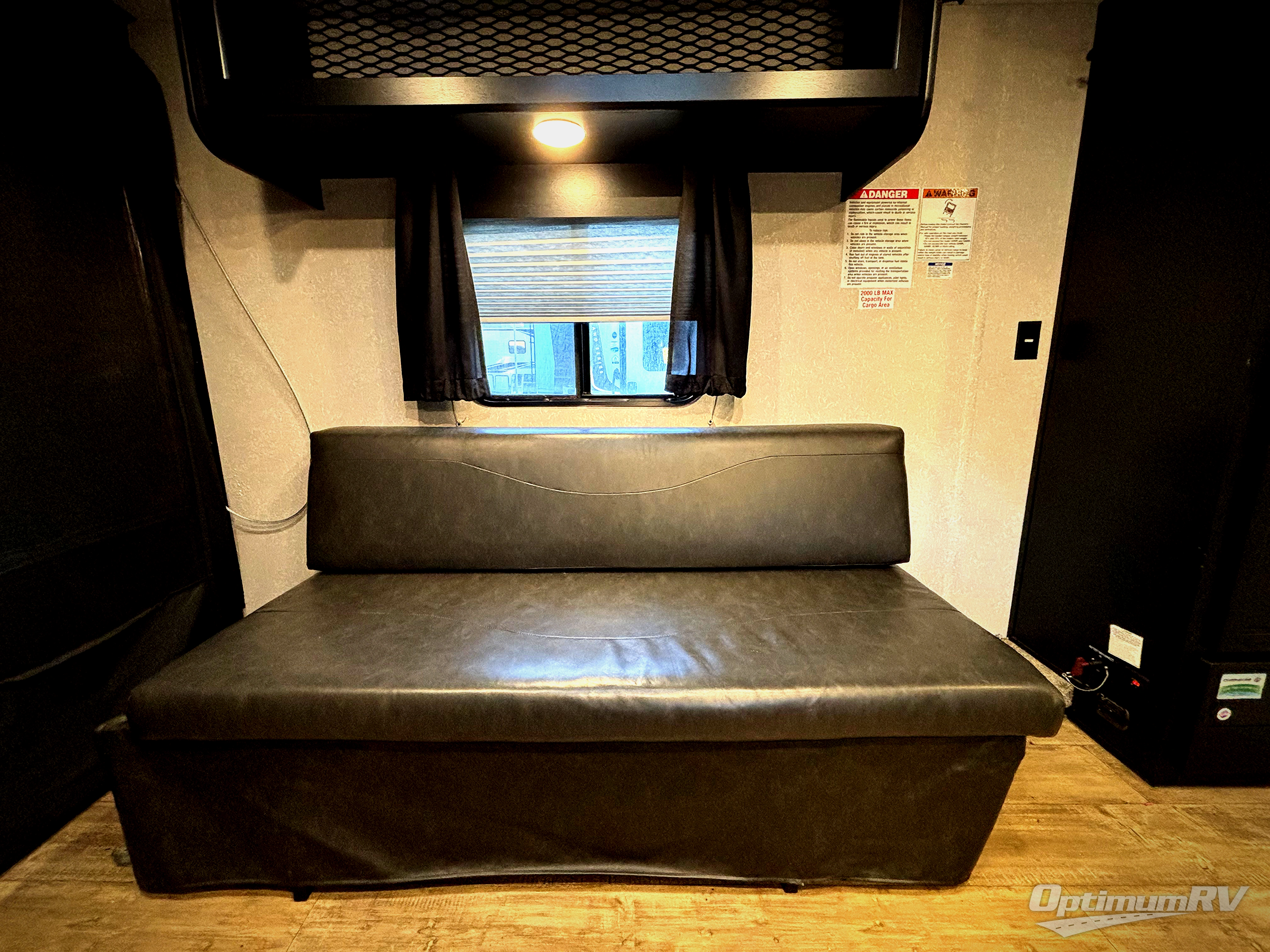 Grab your gear and head out for a weekend of adventure with this Cherokee Cascade toy hauler in tow! You will have ample room along the roadside with space to stow a dirt bike, bicycles, or even a couple of small kayaks while you travel. At camp, the fold-down sofa will be a nice place to kick back and relax. A complete kitchen and bath make it easy to enjoy your time away knowing you can cook meals just like home and get cleaned up easily at night. A comfortable queen bed up front awaits a couple of tired campers needing a great night's rest. Throughout, you will find plenty of spacious overhead cabinets or netted cargo cubbies for your personal belongings and gear. The outside also features some nice exterior storage compartments as well.