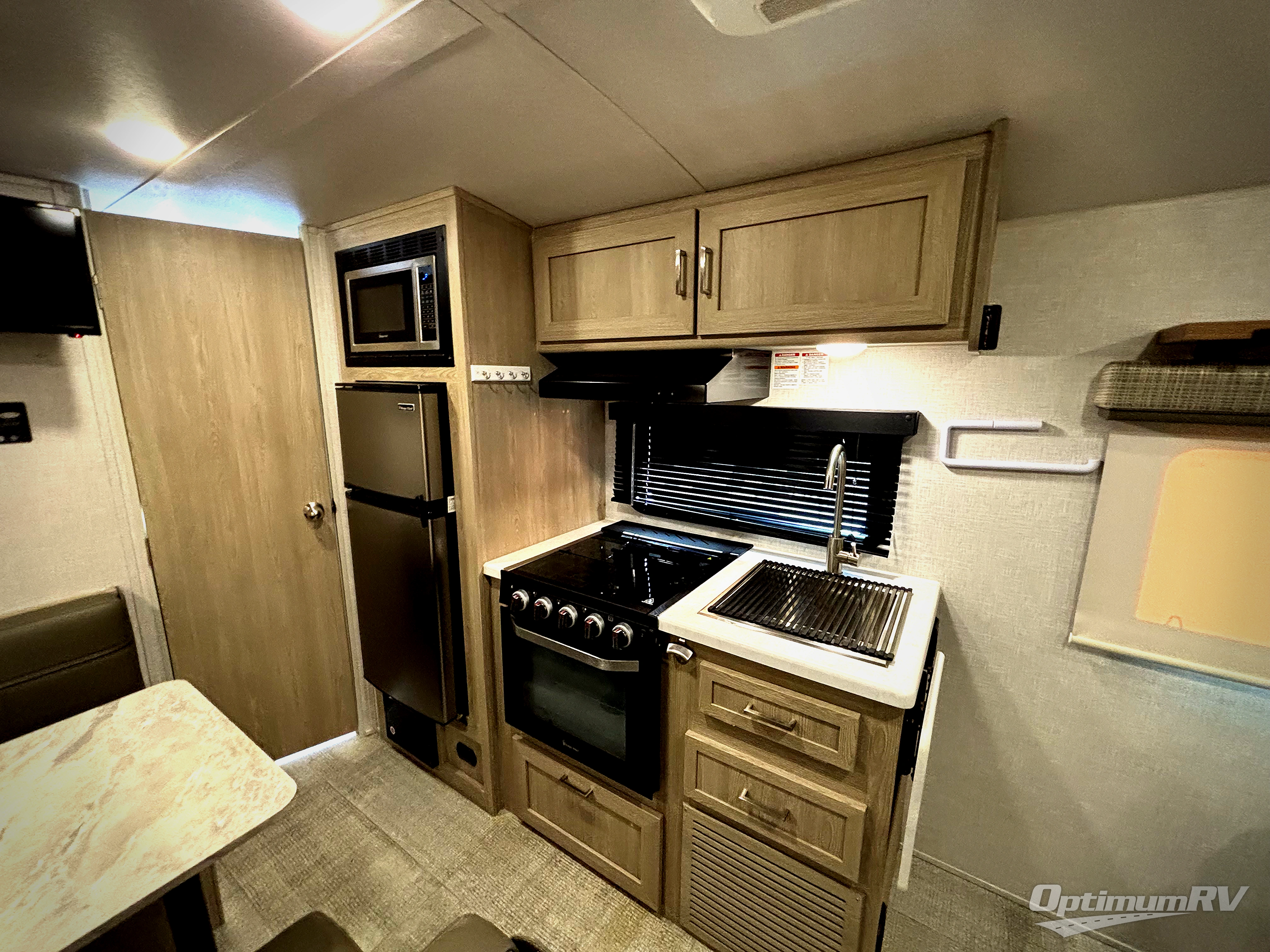 Ready, set, camp! For the camping enthusiast that appreciates convenience and full amenities, this Flagstaff E-Pro travel trailer is the one for you! You get to choose if you want to sit on the sofa or sleep on the Murphy bed whenever you like. You also have a booth dinette for extra seating and sleeping space. The rear full bath allows you to wash up after a fun day outdoors without having to use the public facilities, and you can cook inside on the cooktop and in the microwave or outside on the exterior griddle.