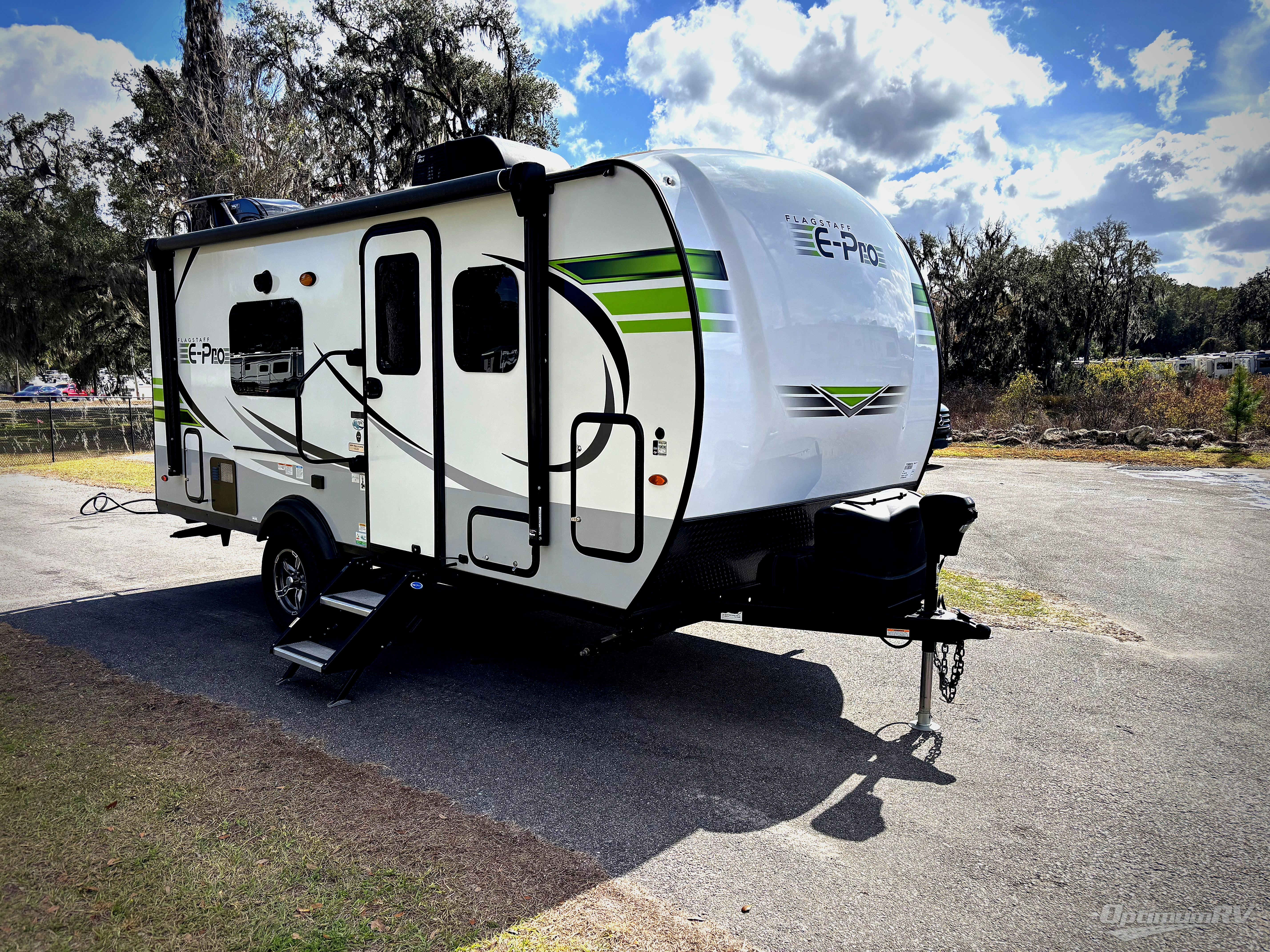 Forest River has custom designed each one of these Flagstaff E-Pro travel trailers and toy haulers to be towed by your fuel-efficient, smaller SUV! They may be light in weight, but they are heavy in features and options. Some of these features include an AM/FM Bluetooth stereo with USB ports to play your favorite tunes, a 190W roof-mount solar panel, and a Shower Miser water saver on most models. Their six-sided aluminum cage construction, frame-mounted stabilizer jacks, and vacuum laminated roof and walls will hold up through every adventure you throw their way. You even get a Sport Tire & Wheel Package which includes 15" Mud Rover radial tires and a lift kit. Come see all that these models have to offer!