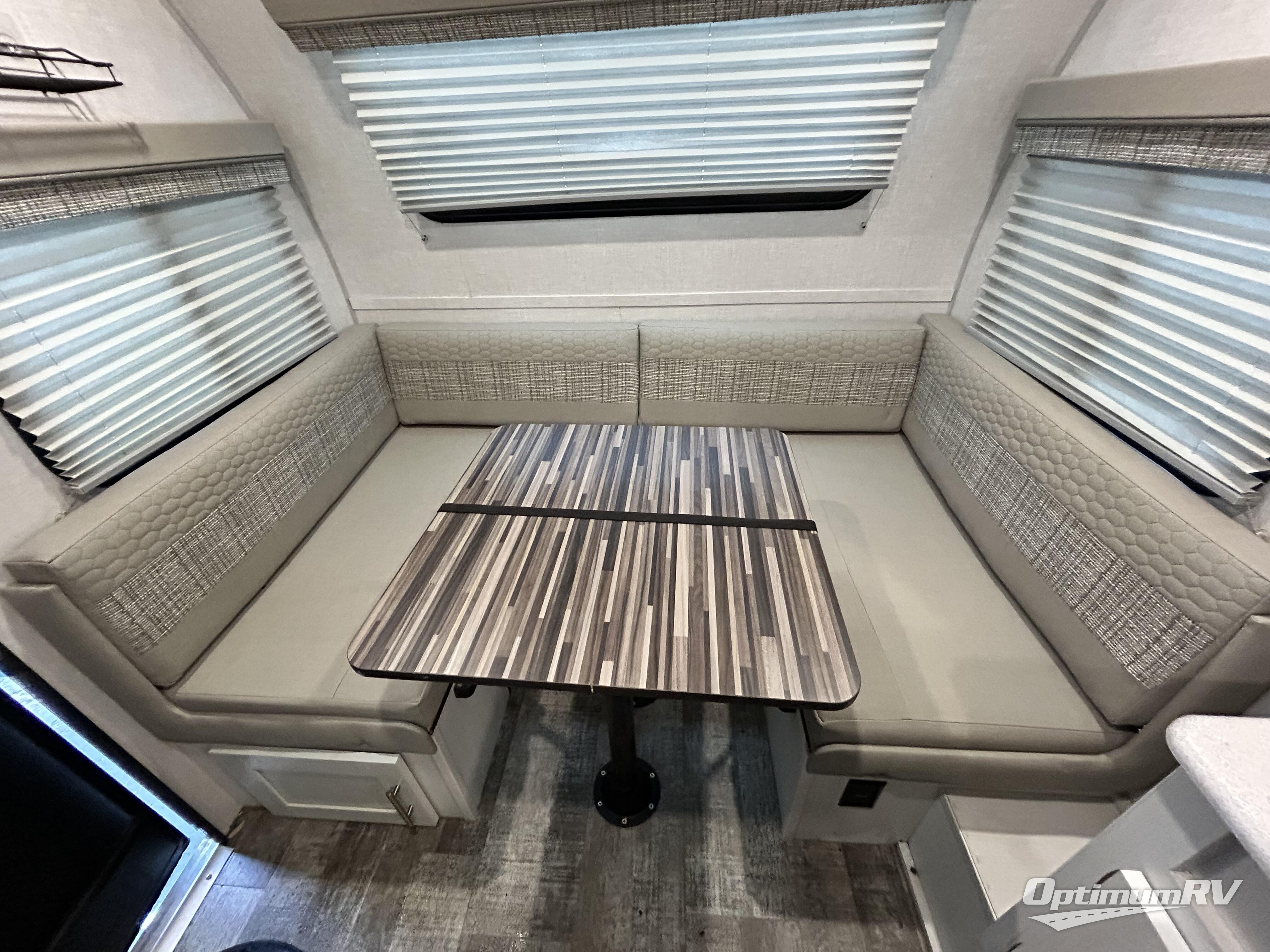 For the couple who is ready to camp anytime and anywhere, you will love how easy it is to travel with this R-Pod travel trailer. You can easily set up the single slide to give you more room to move about. Within this slide, you will find the kitchen amenities, which include a two-burner cooktop, convection microwave and a refrigerator. You can enjoy your meals at the U-shaped dinette, and this furniture can double as a sleeping space, if needed. Along the front is an RV queen bed where you can rest up for another day of fun and adventure. With all of the exterior storage, you can bring along all of your necessary camping items and more!