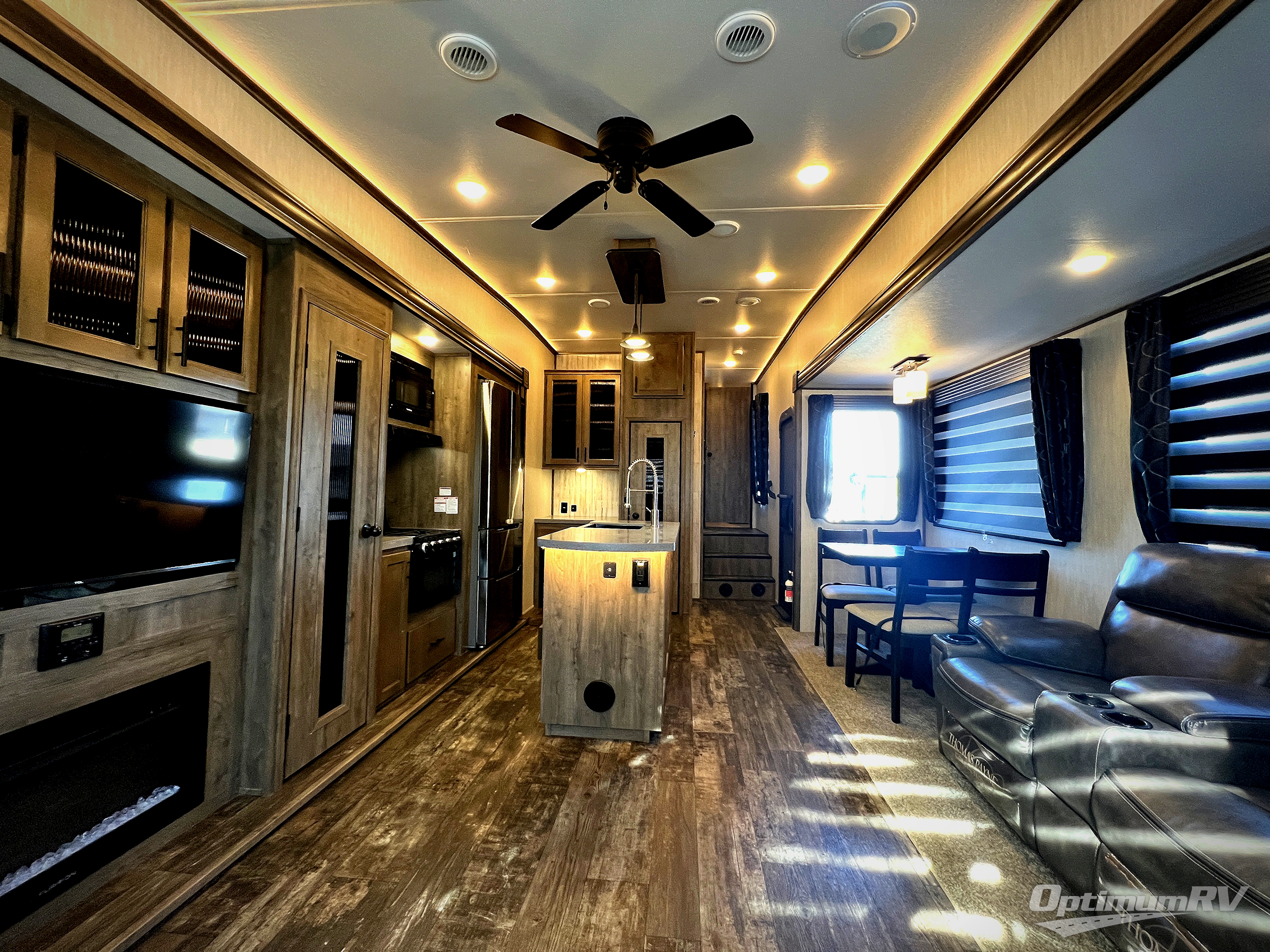 You will experience a luxurious camping trip at an affordable price with any one of these Forest River Sabre fifth wheels! These fifth wheels are durable and ready to travel anytime of the year thanks to features like the high-gloss gel-coat front cap, the maintenance-free heavy-duty PVC roof membrane, and the forced air, heated and enclosed gate valves and underbelly. The Generation III electric auto-leveling system makes setting up easy and safe. With the Sabre Cobalt package, you will enjoy exterior features like the universal docking station which includes a black tank flush and an outside shower and the MOR/Ryde quad "Step Above" entry steps for you to enter and exit the unit safely. The interior All-Inclusive package gives you plenty of entertainment and luxurious features to make you feel right at home, like the Cinemax seating, the fireplace with remote, and the double high-output USB charging ports so that you can stay connected the entire time.