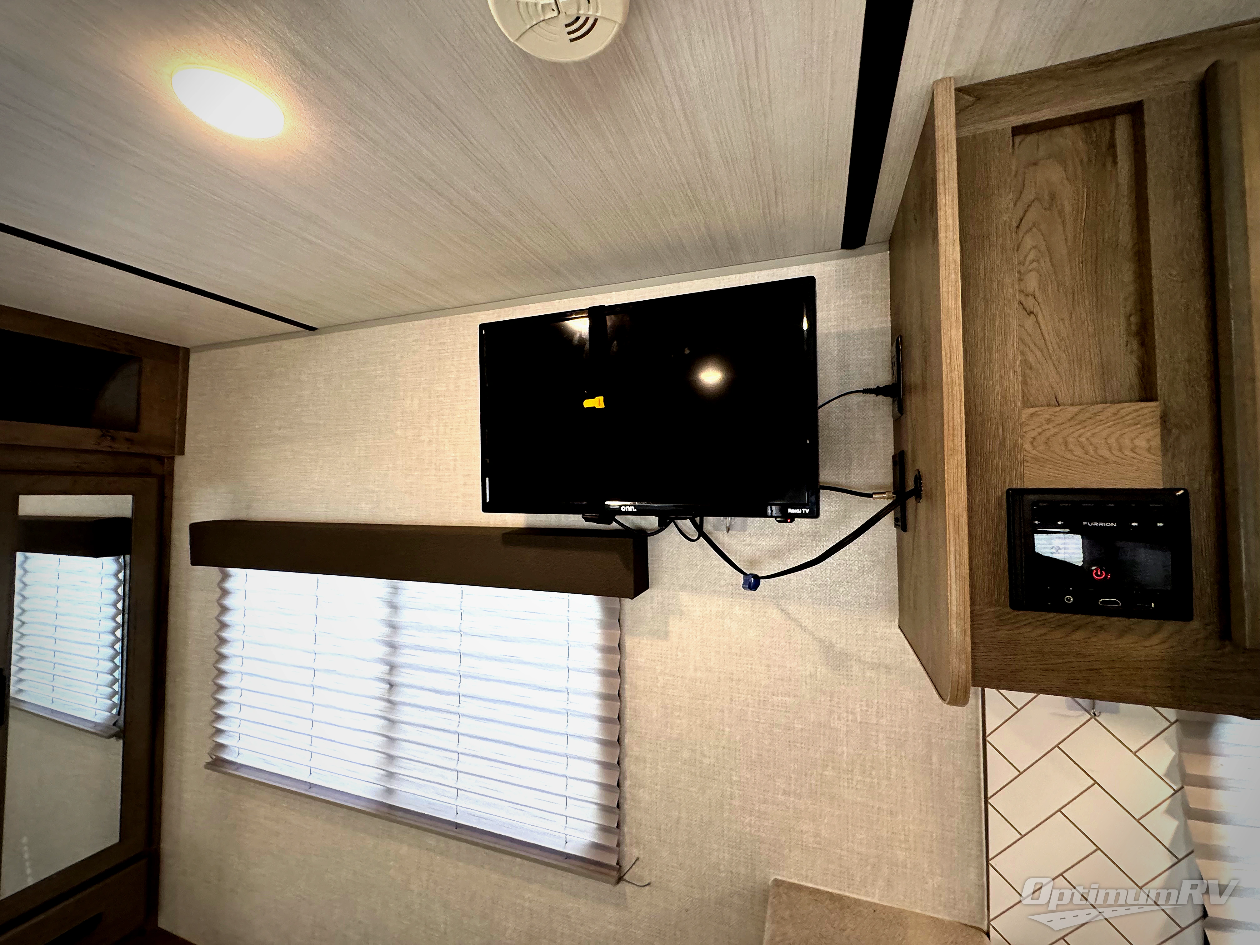 Only the Forest River Surveyor Legend travel trailer can inspire legendary adventures! The gel-coated fiberglass exterior is outfitted with front diamond plate protection, an integrated front windshield, preparations for rooftop solar power and a rear camera, and an adjustable platform step on the main entry. You'll be able to use the exterior LED speakers whenever you want to play music or a podcast, and the designer Shaw linoleum flooring is a quality base that will clean up easily if you track mud indoors. There are vented side windows in the slide outs so that you can bring in some fresh air, and each model is ready for cable/satellite.
