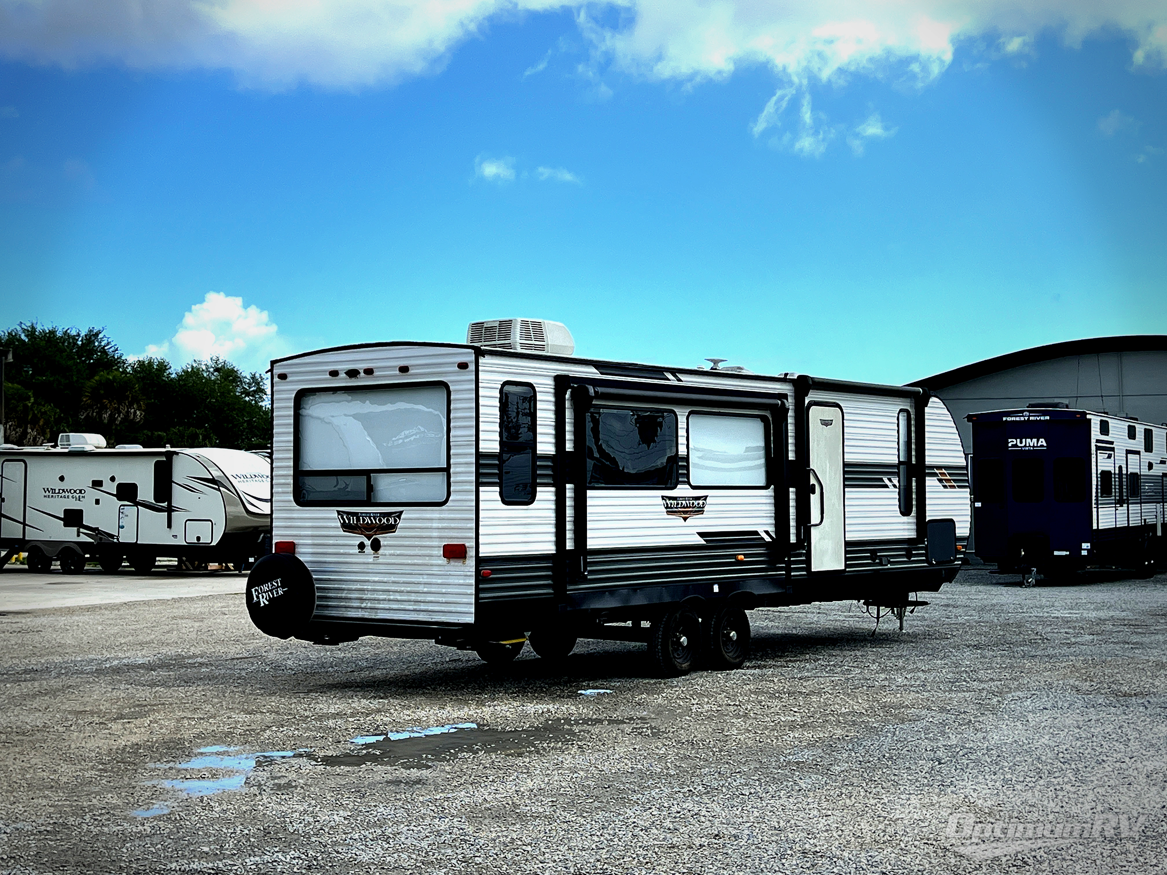 Forest River offers you the highest quality and the best components in its Wildwood travel trailer! The fully walkable one-piece roof is ultra reliable, and the rest of the construction is just as dependable with the powder-coated I-beam frame, cambered chassis, R-7 fiberglass insulation, nitrogen-filled tires, and triple-seal slide-out system. The Wildwood is not only full of quality, but it is also full of style with its herringbone luxury vinyl flooring, shiplap wall board, upgraded designer furniture, high-gloss exterior metal, and seamless countertops. The Wildwood also comes with some extra features that will make your life more comfortable, like the exterior speakers with blue LED light, the tablet-compatible USB ports, the residential vanity with shower caddy, and true stabilizer jacks with JT's Strong Arm.