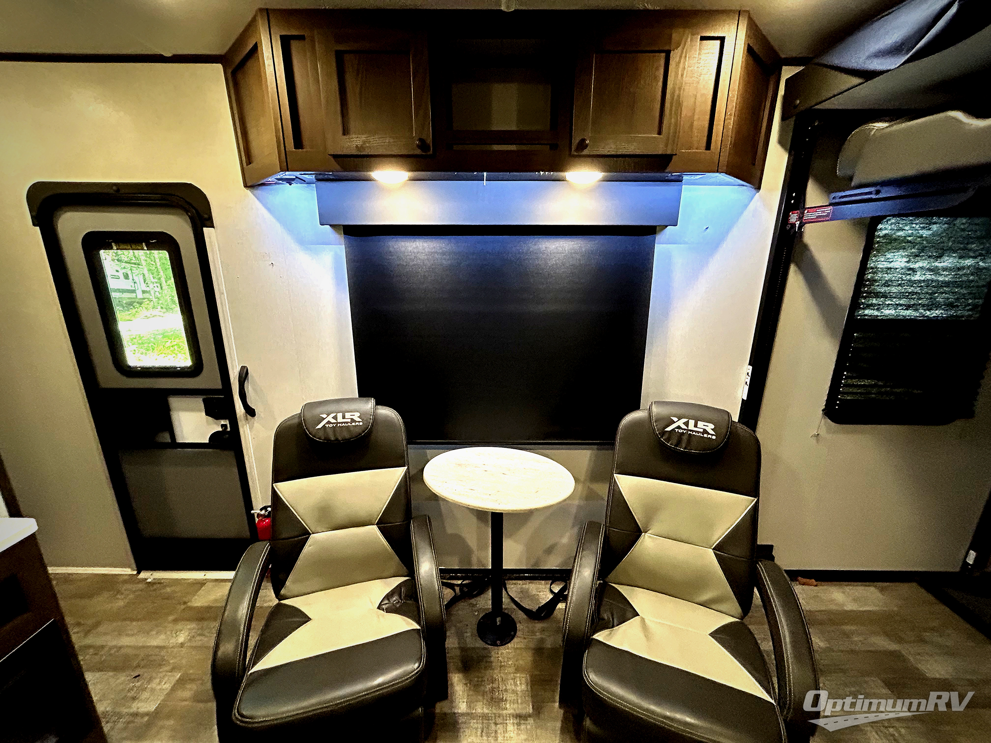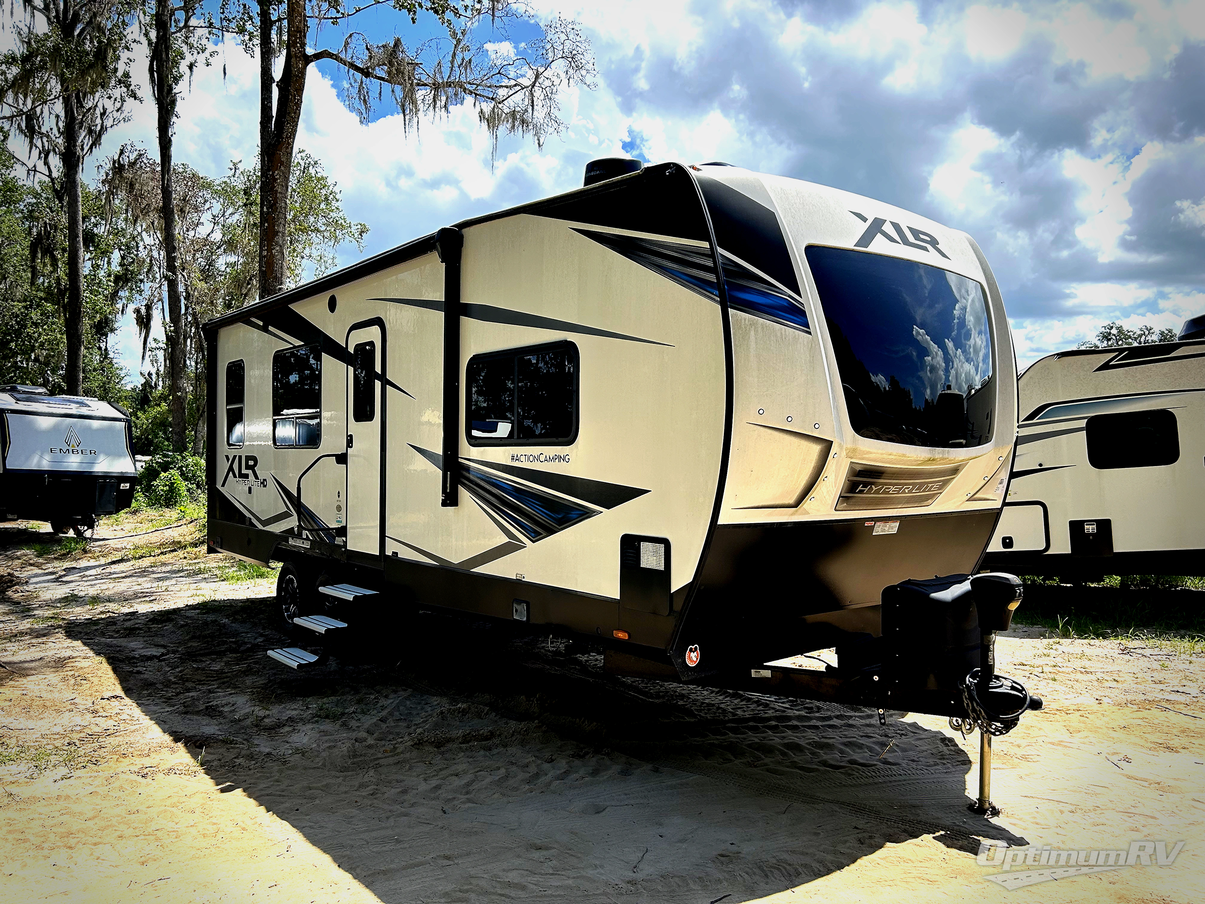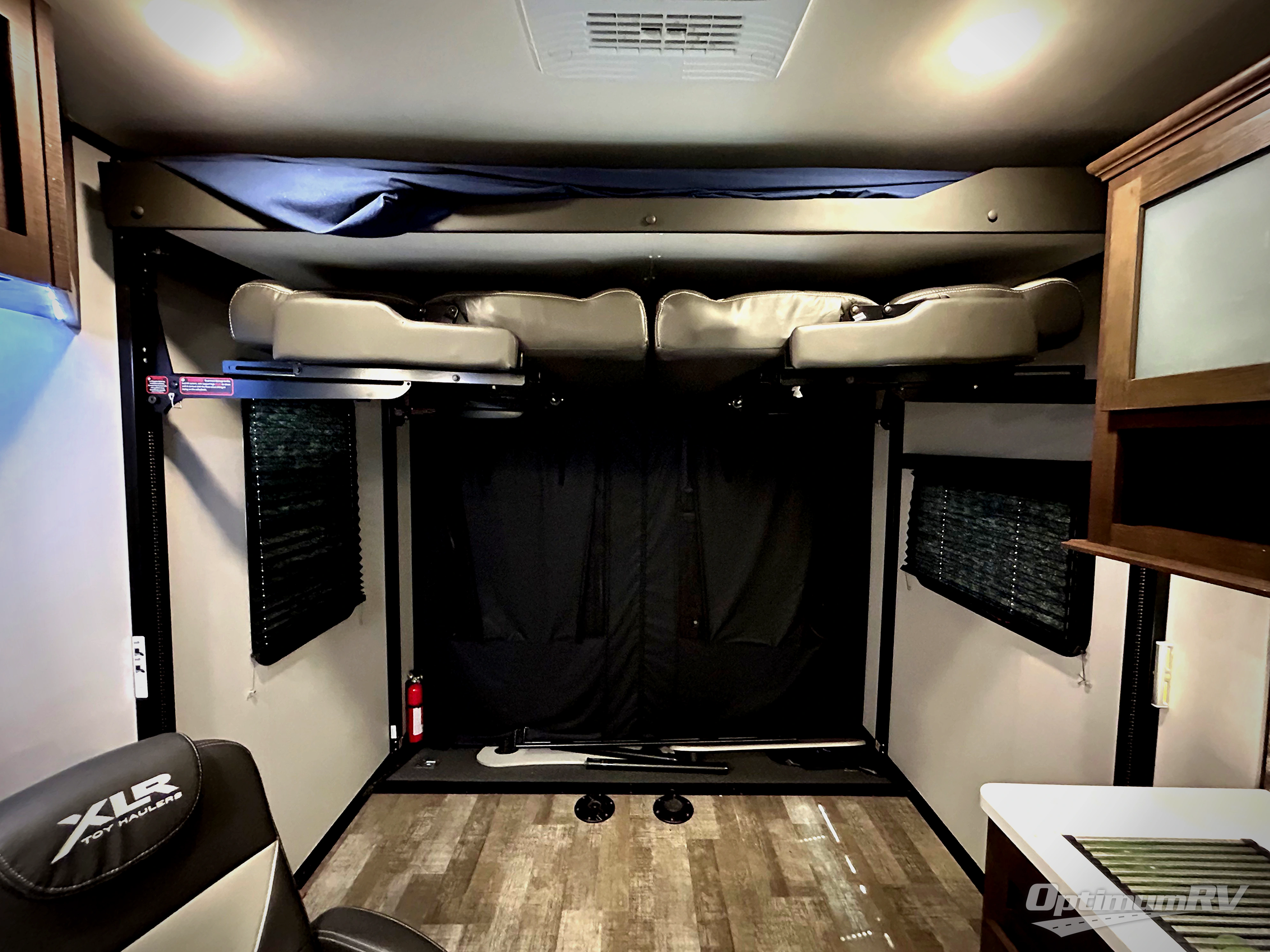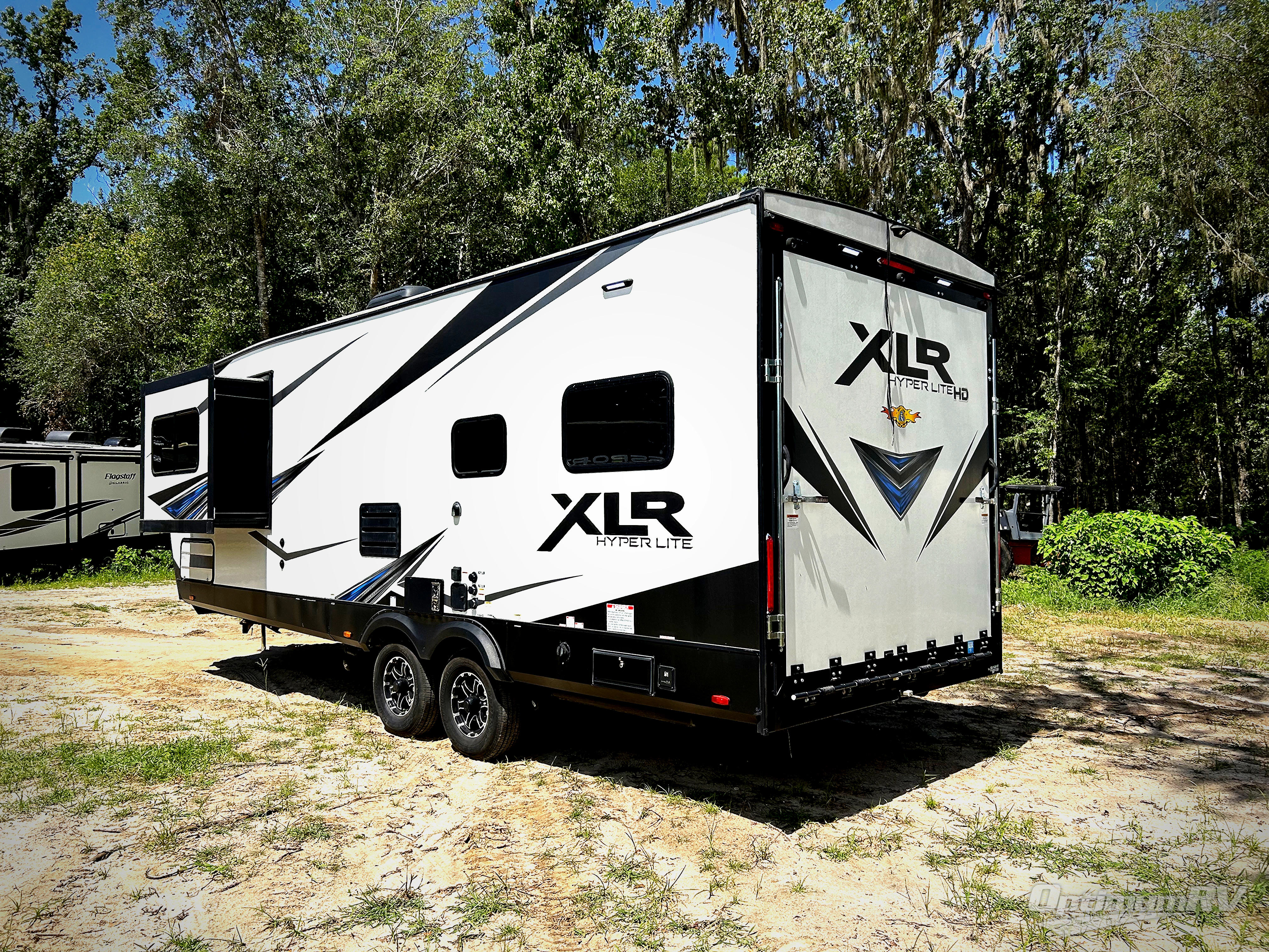 Forest River's XLR Hyper Lite toy hauler is affordable, half-ton and three-quarter-ton towable, lightweight, and very functional! These units are the epitome of action camping, and they are ready for the adventurer who wants to get out and live life to its fullest. The XLR Hyper Lite has been XTRA BUILT which means that you will have a unit that is simply built right to last you through all of your toughest excursions. You will be thrilled to find some of the latest technology included, like the Winegard Air 360 antenna with prep for WiFi & 4G LTE, the dual-zone sound bar with built-in subwoofer, the exterior speakers, the USB charging stations, and the 39" TV in the living area. The garage is completely primed and ready to go with its 20-gallon fuel station, 5,000-LB cargo tie-downs, insulated floor, black rear privacy screen, insulated weatherproof ramp door, and ramp patio cable kit. Plus, you also have an excellent list of options that you can add to your unit, like the optional VIP party deck and solar package.