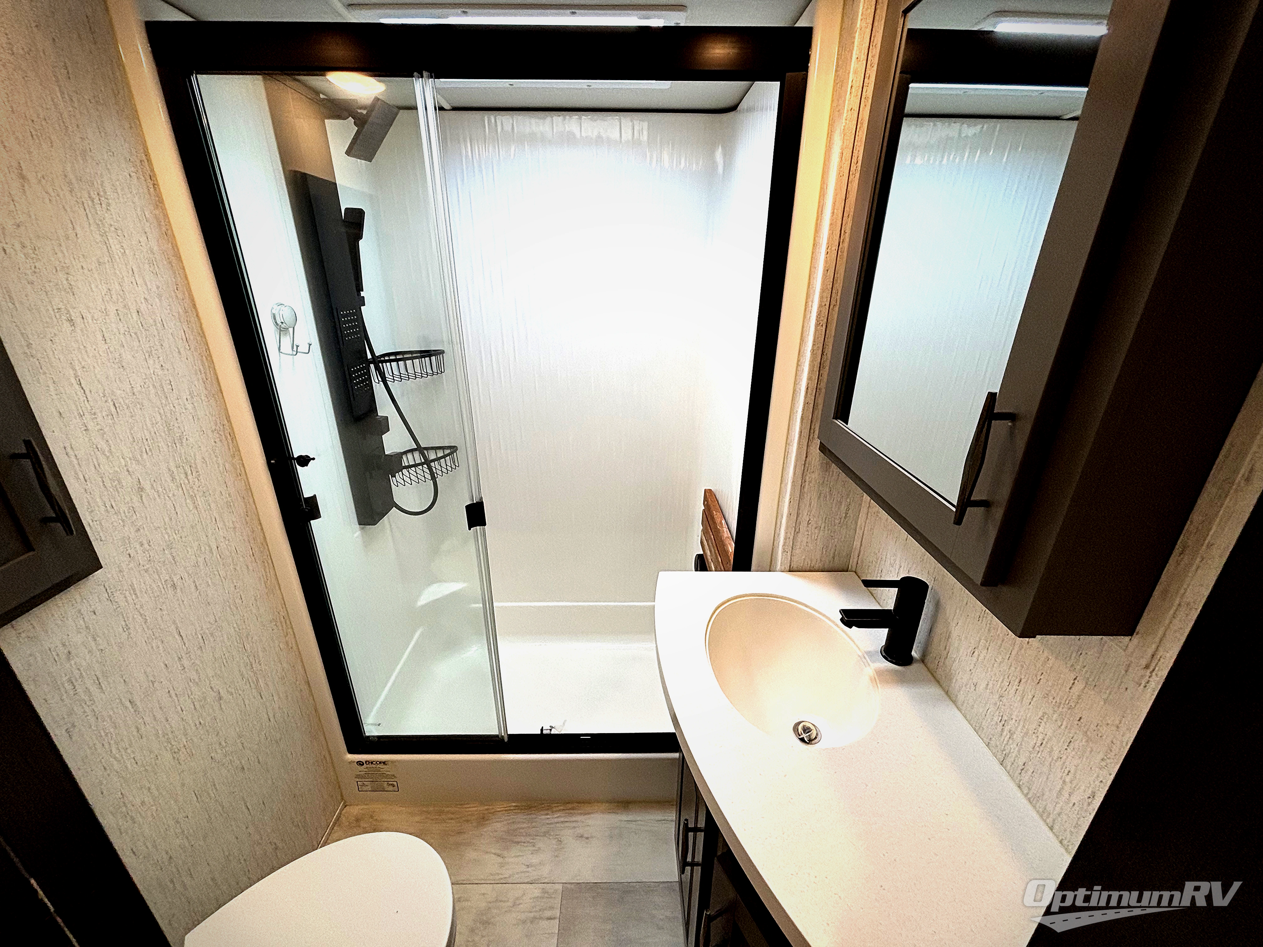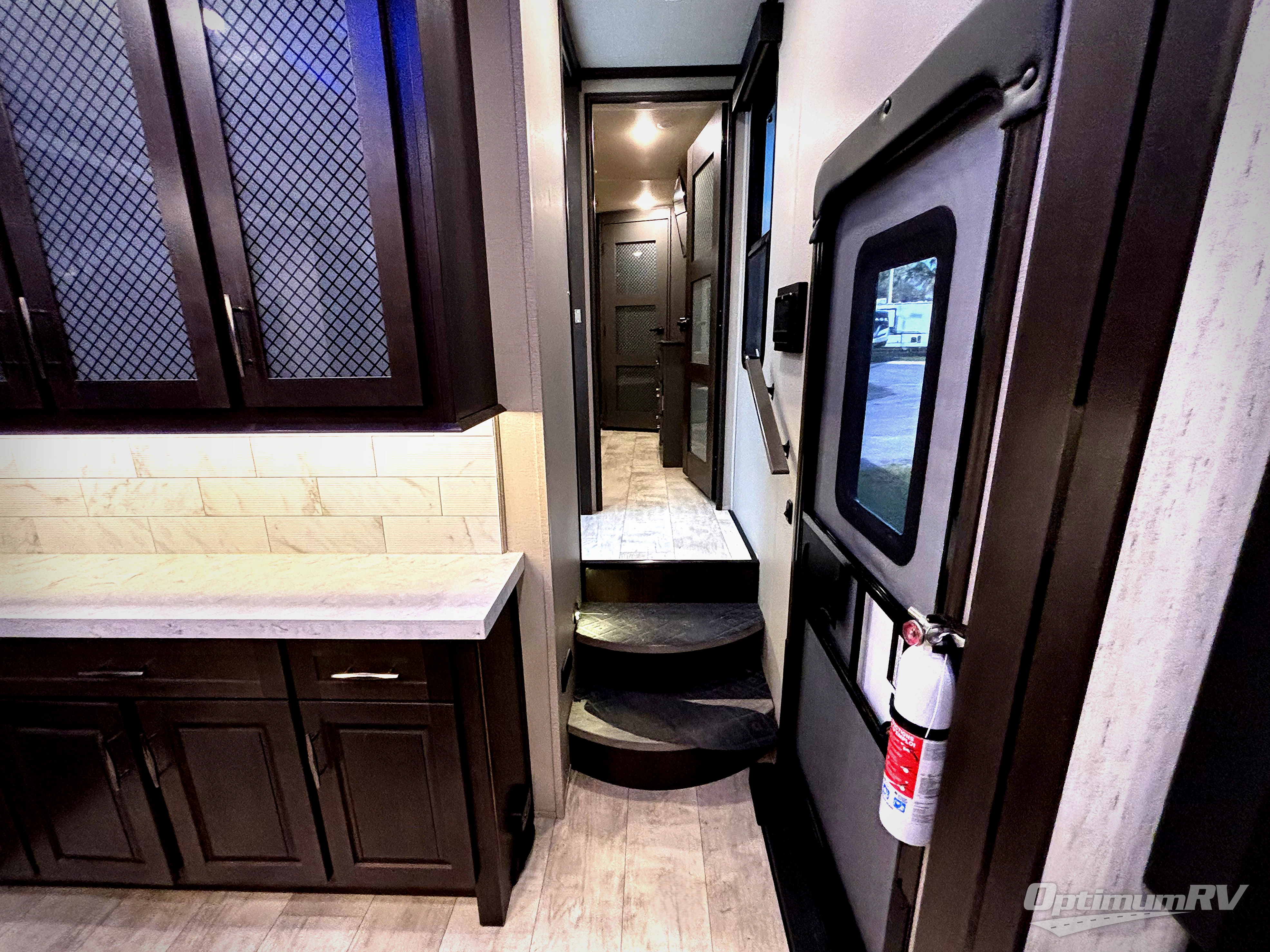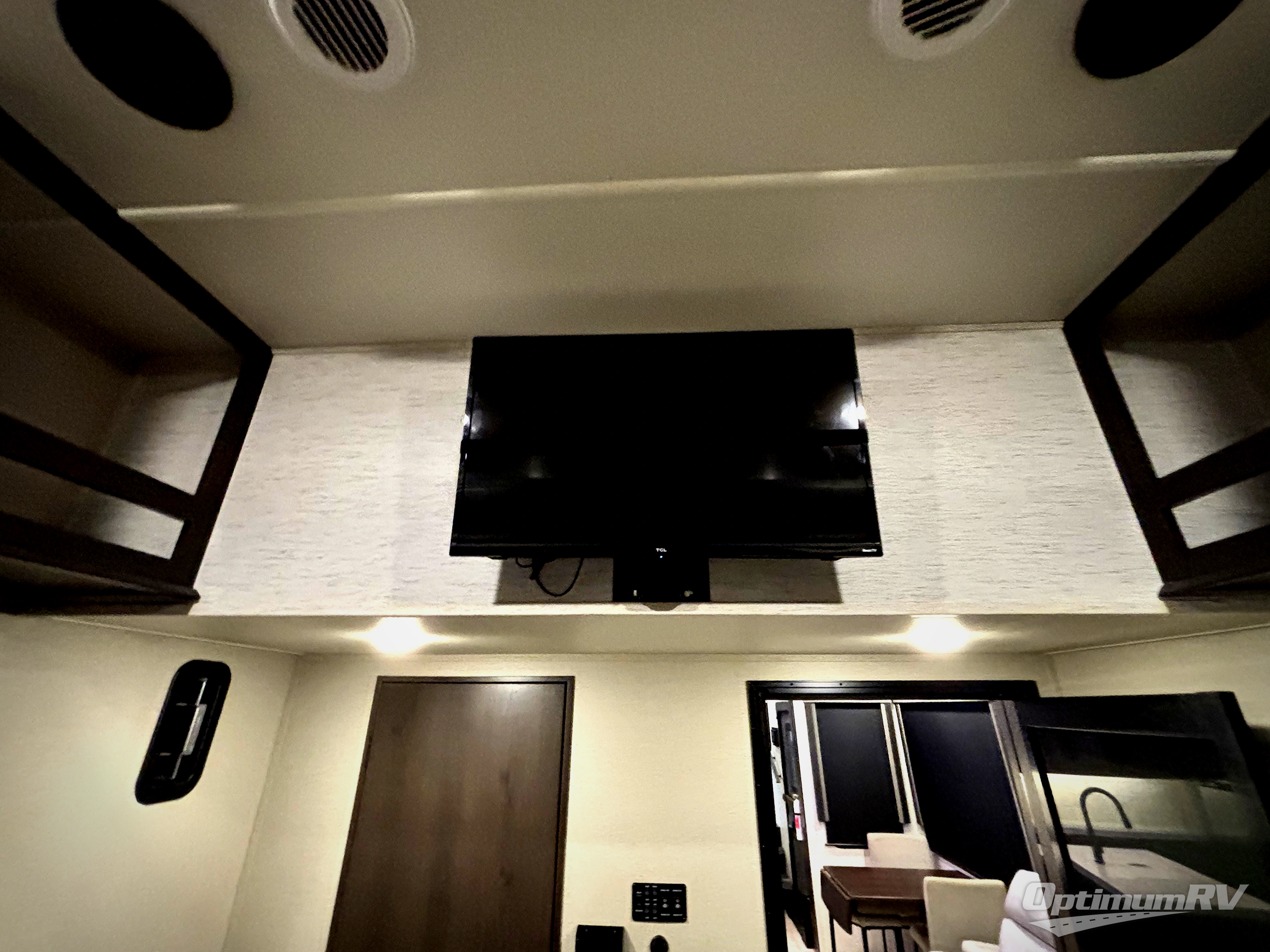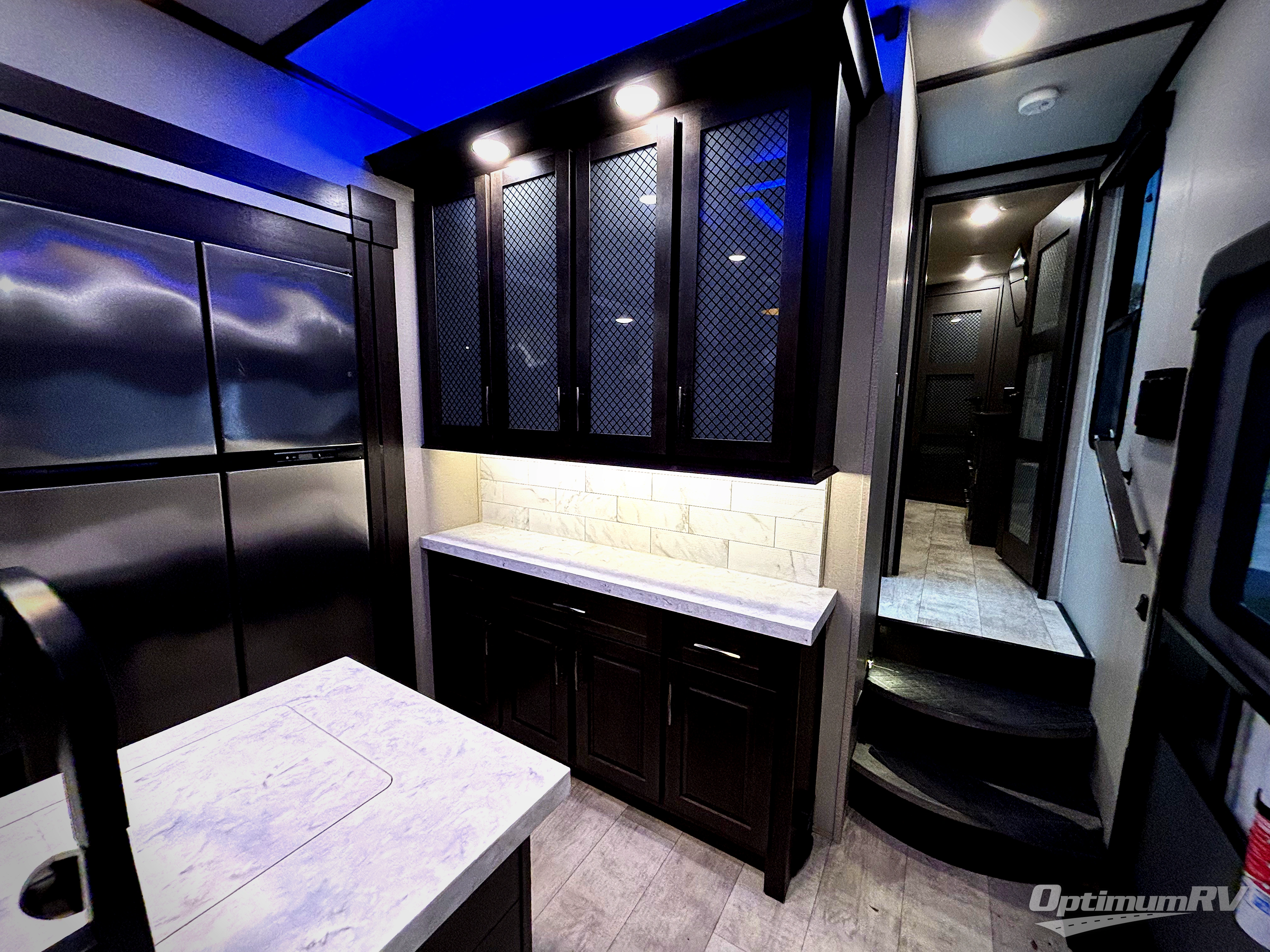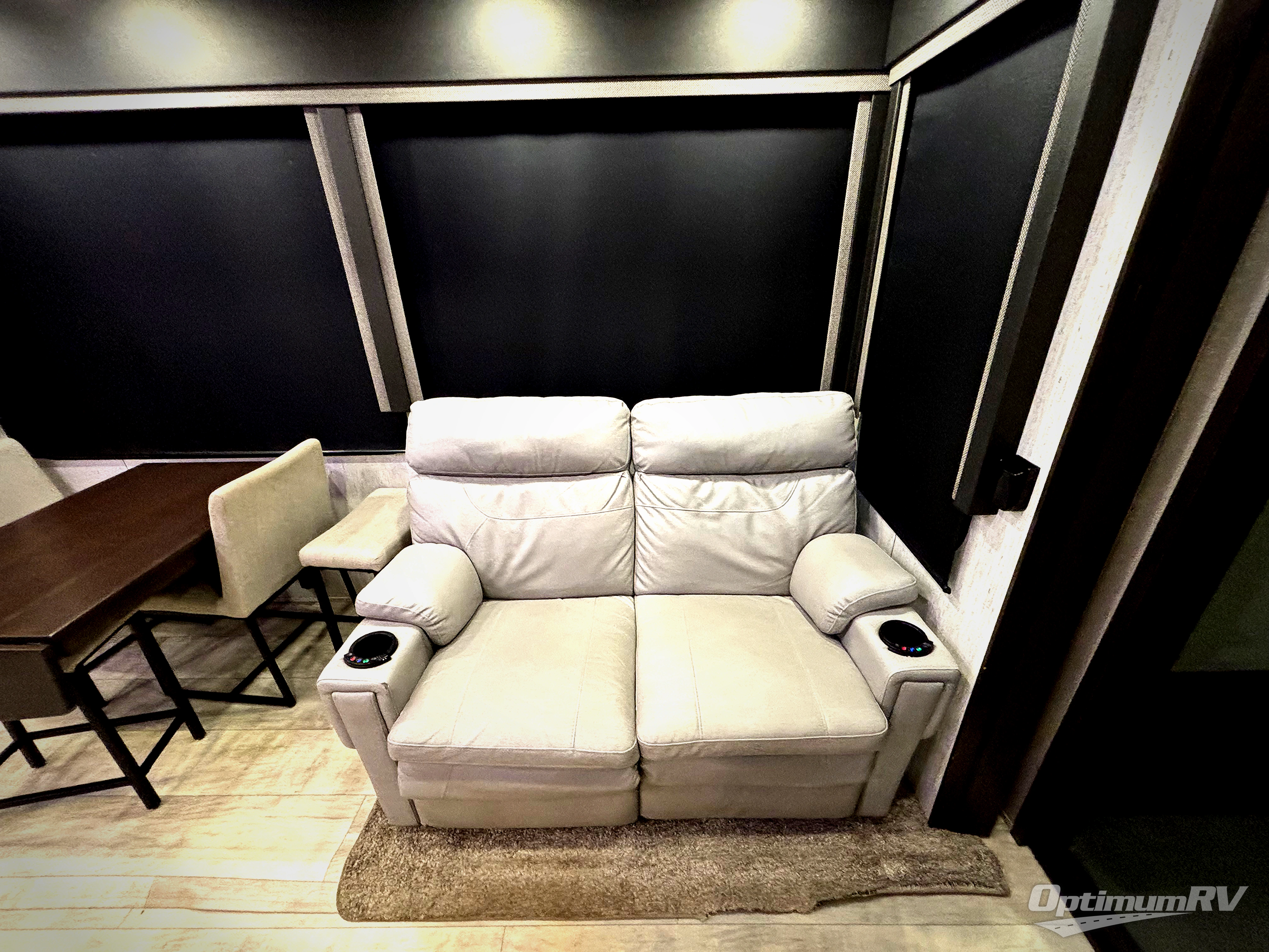 This Momentum toy hauler provides the maximum entertainment with its 49" LED TV in the living area, 32" LED TV in the private bedroom, 32" LED TV in the 12' 6" separate garage, and exterior LED TV! You can choose to add the optional Super Sofa which will create an amazingly comfortable area to sit down across from the electric fireplace. The two full bathrooms are one of the most impressive features found on this unit, and the three power awnings are another shocking addition. Within the kitchen, you'll be able to prepare all of your family's favorite dishes when you use the chef-inspired range and oven, and the window behind the range allows you to view the campsite while you cook. If you would prefer to have a residential refrigerator, you should check out model 397TH-R!