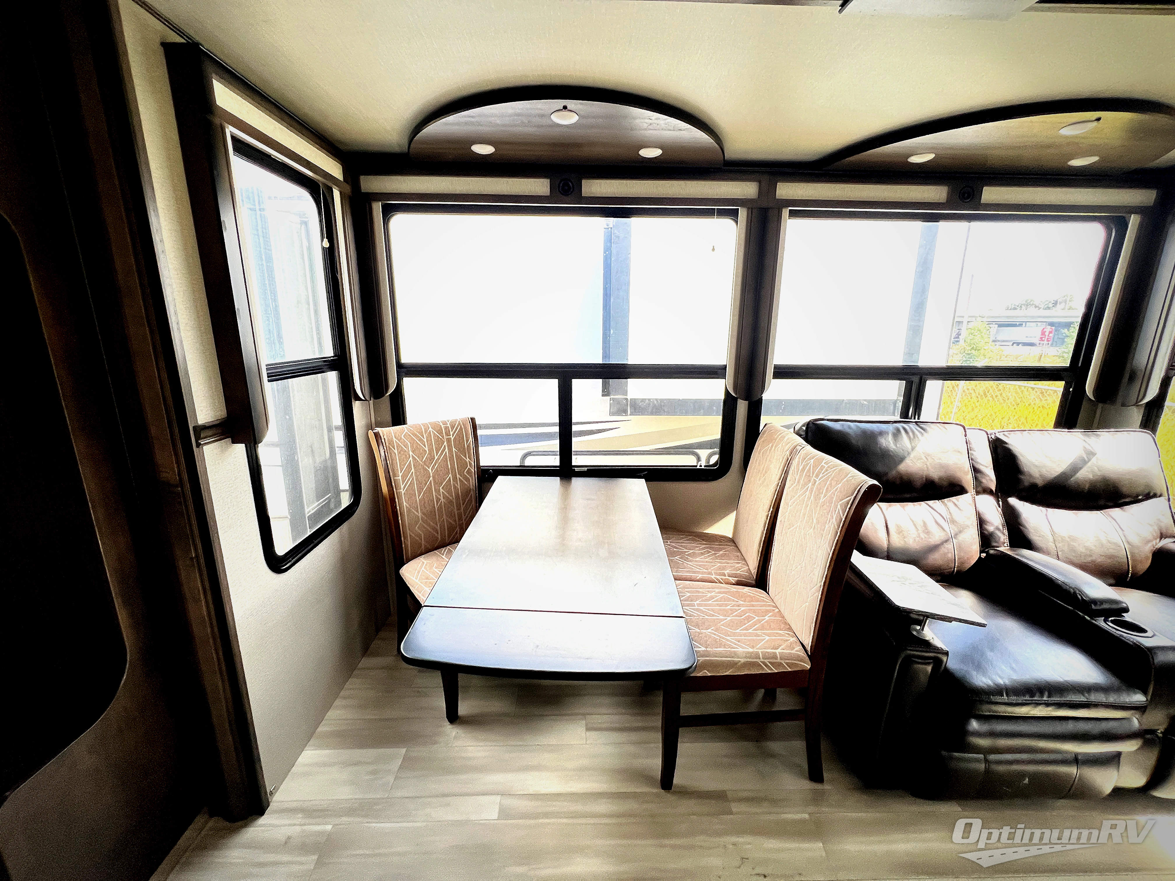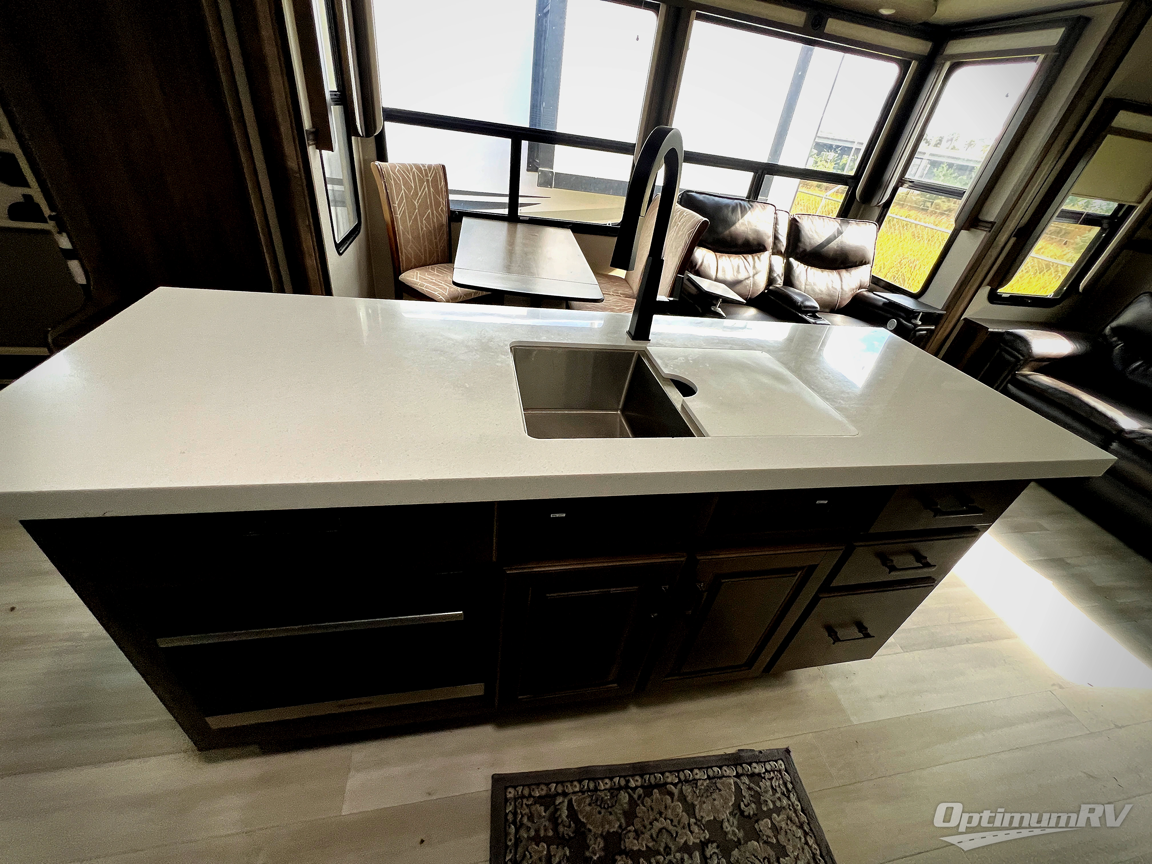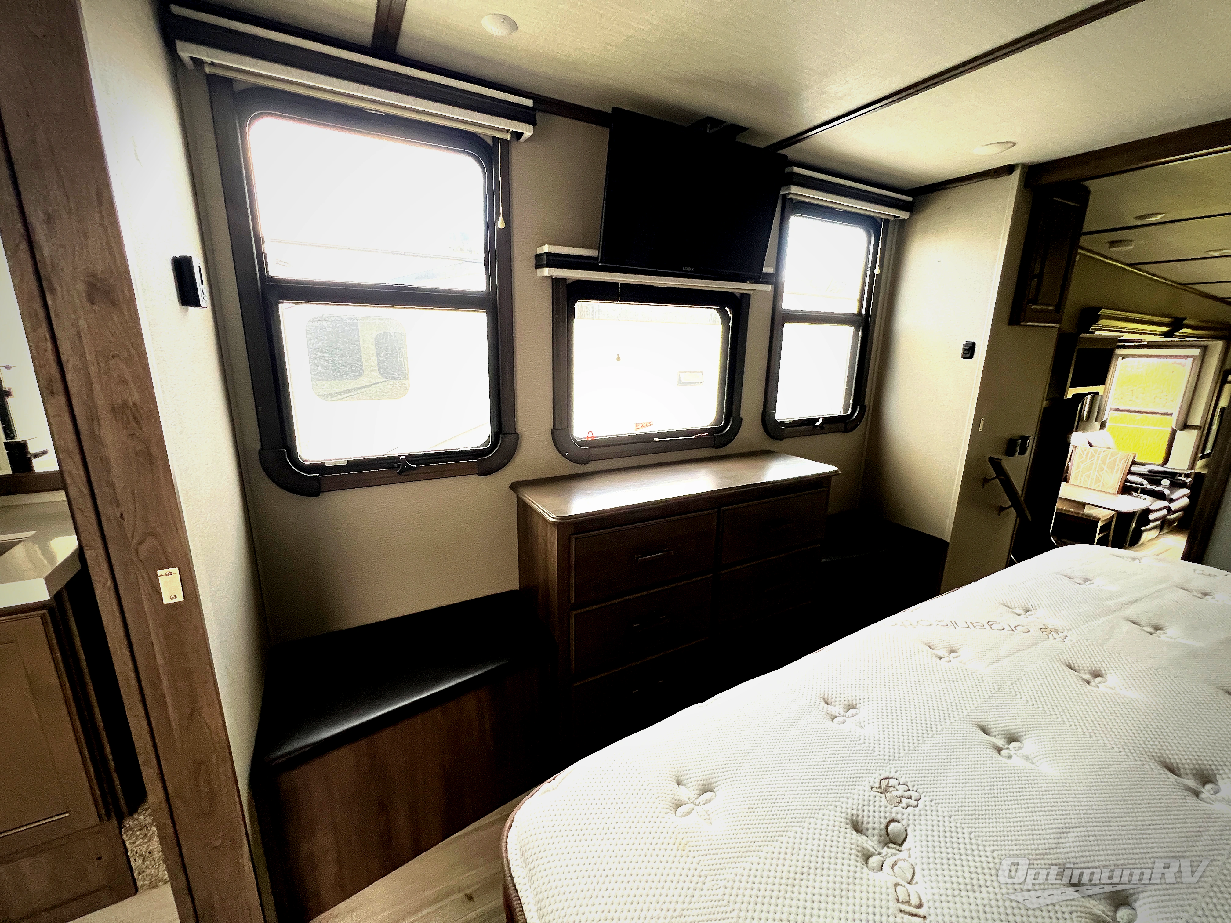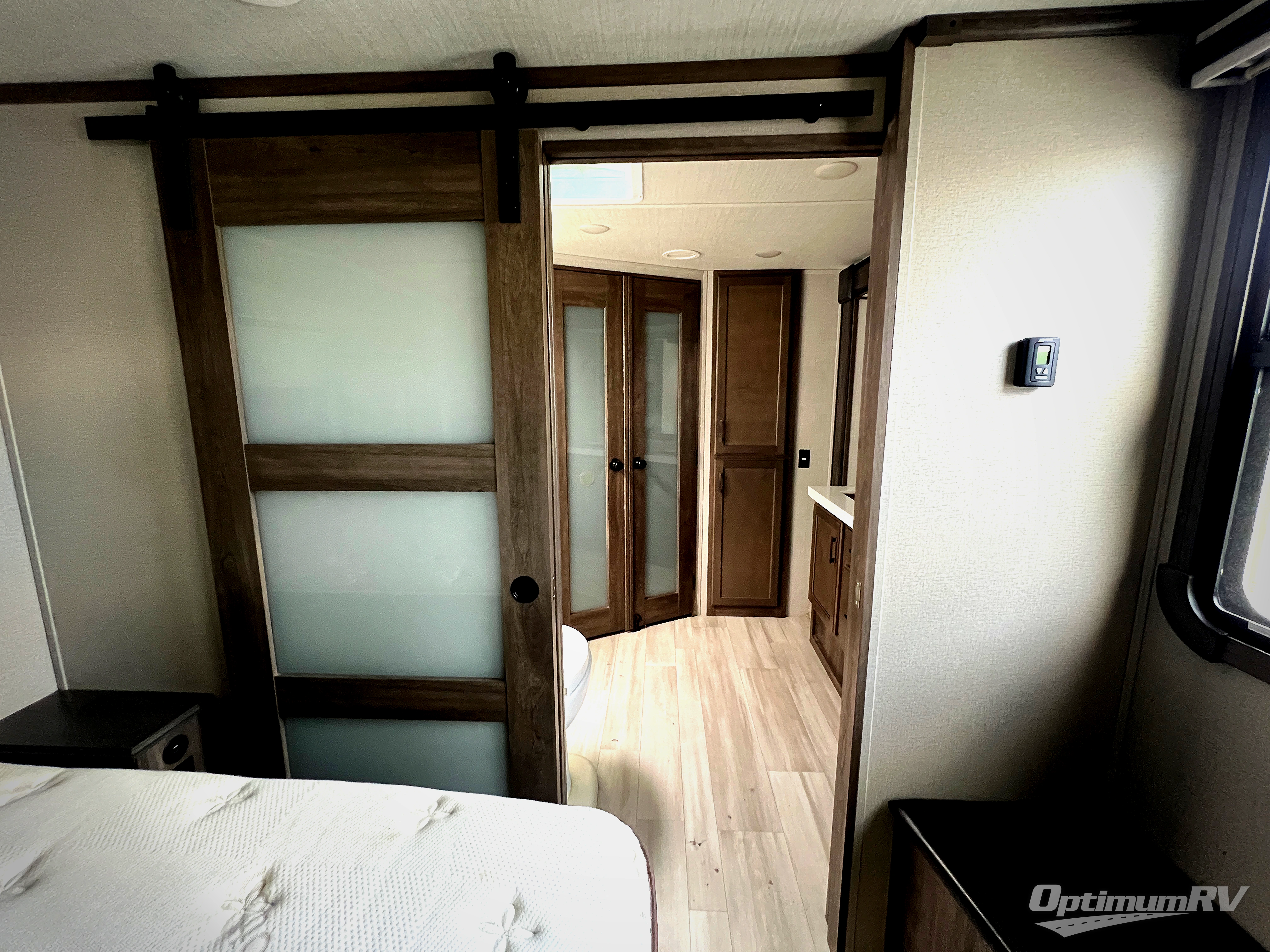 Whether you enjoy living in this fifth wheel or camping with family and friends at local state parks, you will love all the space and luxury found throughout! From the main living and kitchen area with dual opposing slides and a half bath for guests to the master suite with a large front bathroom which includes a shower with a seat, dual-sink vanity, and a large walk-in closet. You might decide to add the washer/dryer option in the prepped space in the closet, and you will love all the storage for your hanging clothes and such. The bedroom offers a queen bed slide or choose the king option, two bench seats that are convenient when putting on your shoes, a flip-top dresser and an LED TV. You will find storage throughout including under the interior steps, and in the oversized kitchen pantry plus the overhead cabinets as well as along the exterior for your outdoor gear. And the kitchen offers a professional-grade stainless steel cooktop, a built-in oven, and a microwave to make warm meals and much more!