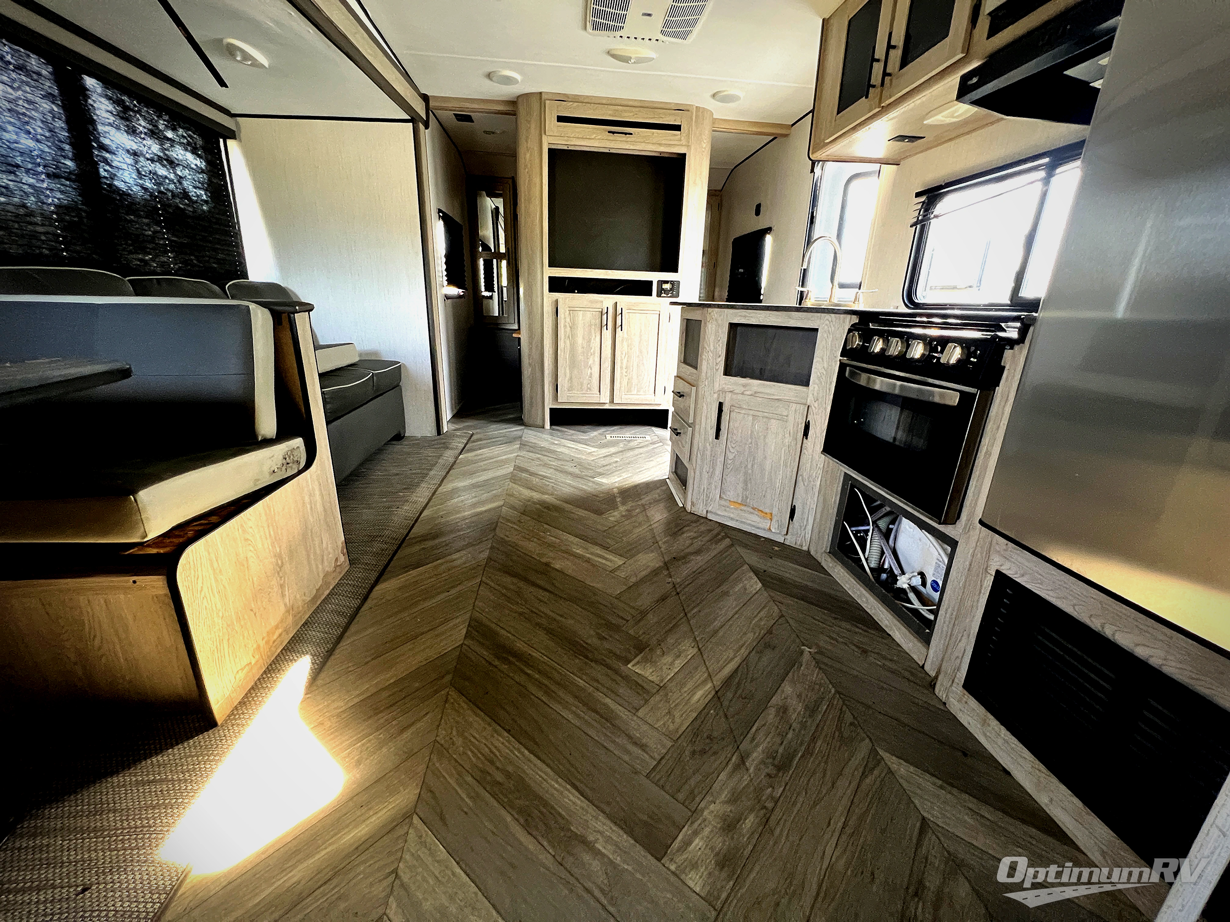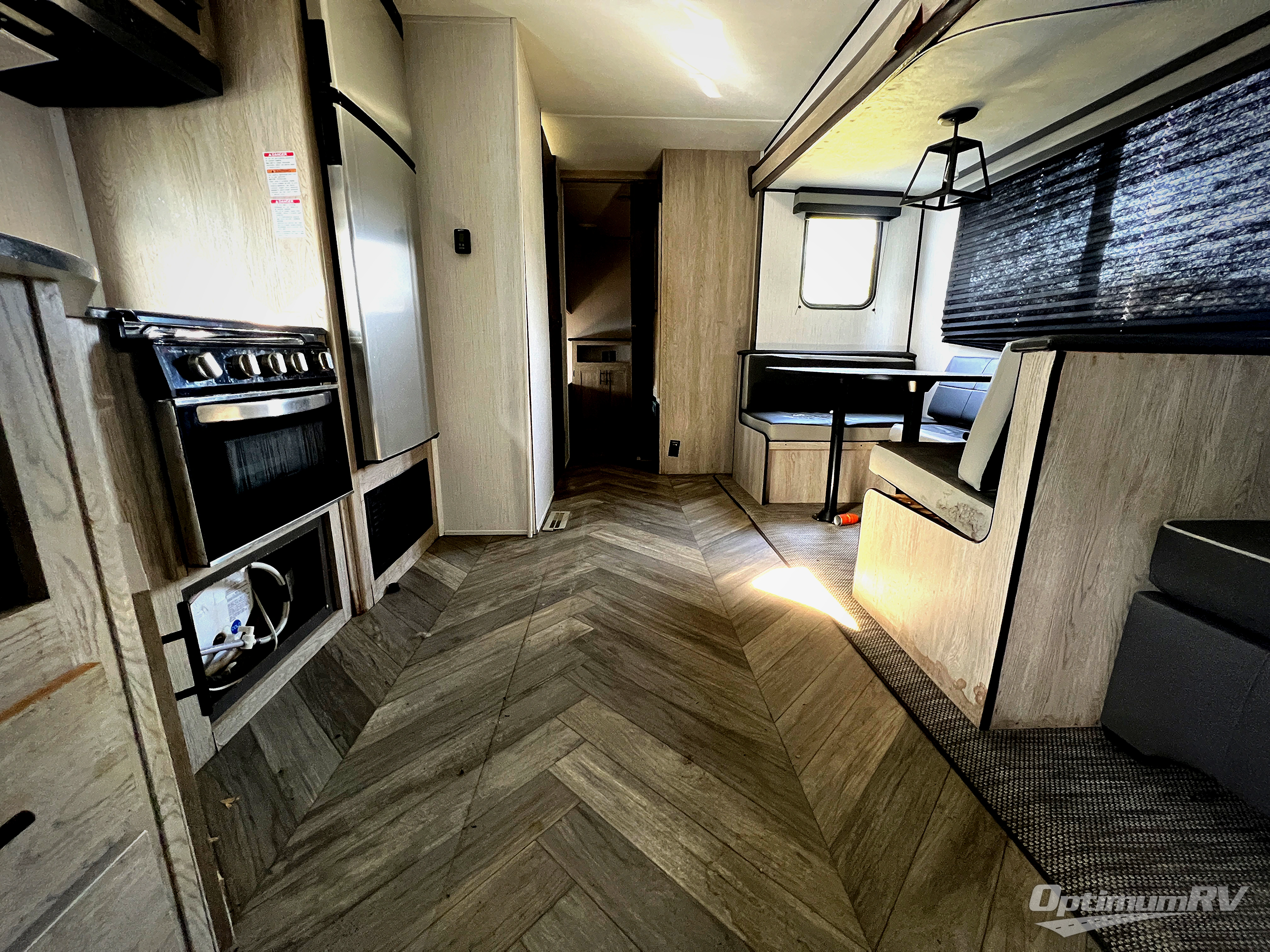 Now you can invite the grandkids along or your friends on camping trips since this travel trailer includes a private bunkhouse just for them! They will have three bunks to choose from, plus a dinette that can be converted to sleeping space at night. You and your spouse will sleep soundly on the queen bed in the front private bedroom, and any additional guests can sleep on the sofa or U-shaped dinette within the large slide out. The chef of the family can prepare eggs and bacon on the flush mount three burner cooktop in the morning before you all head out on a trail, and the full bath will allow everyone to clean up when you return!