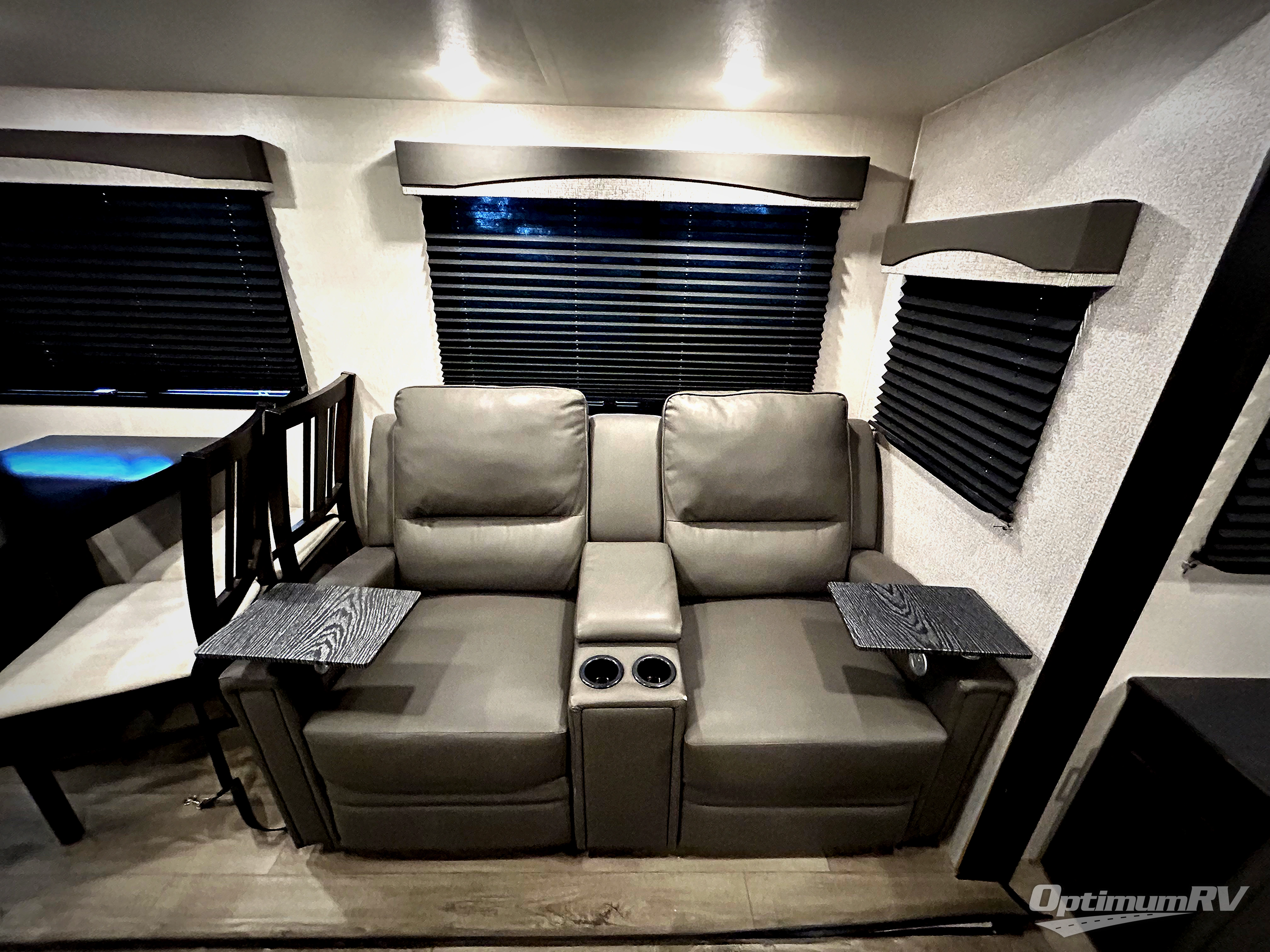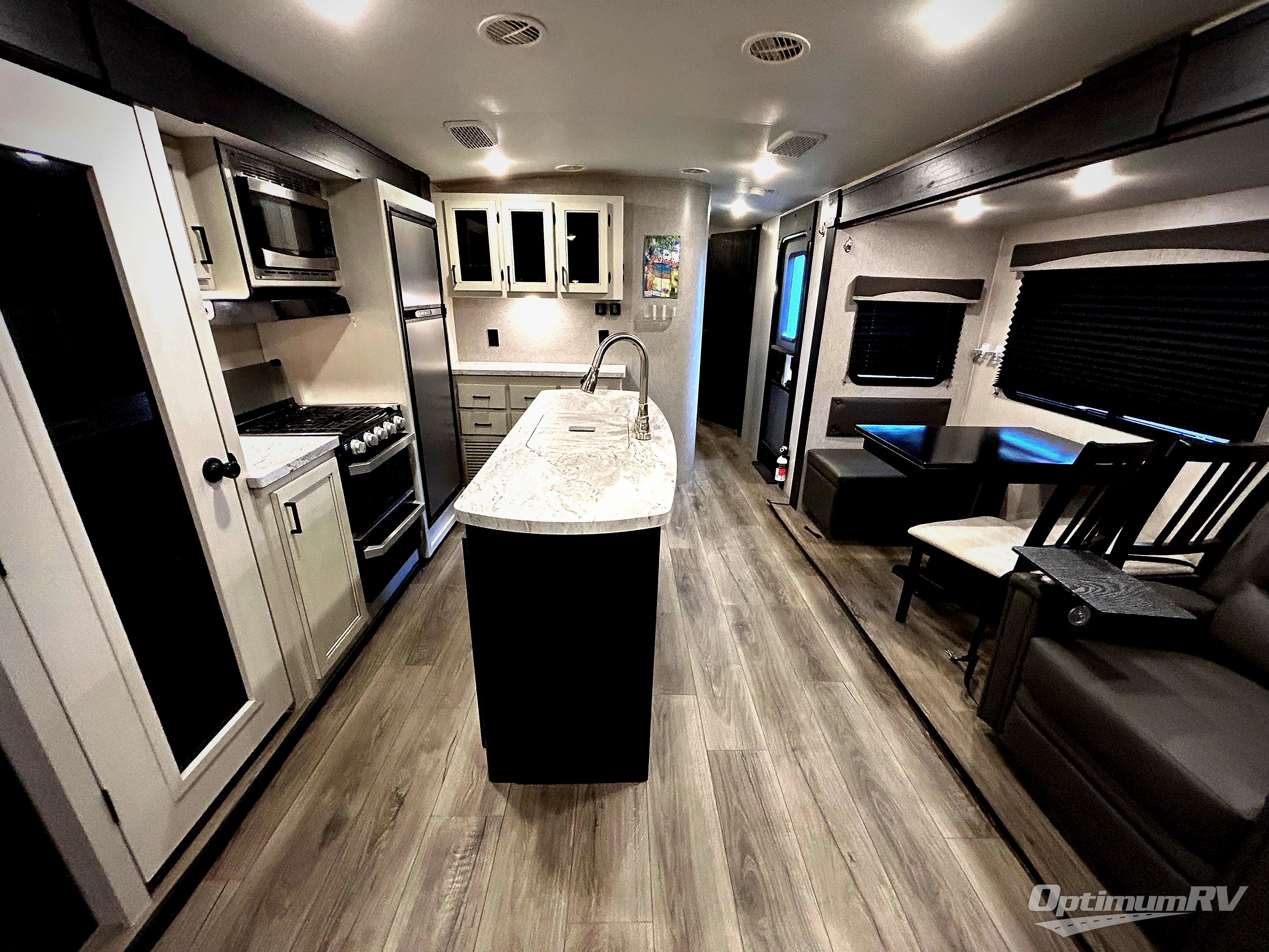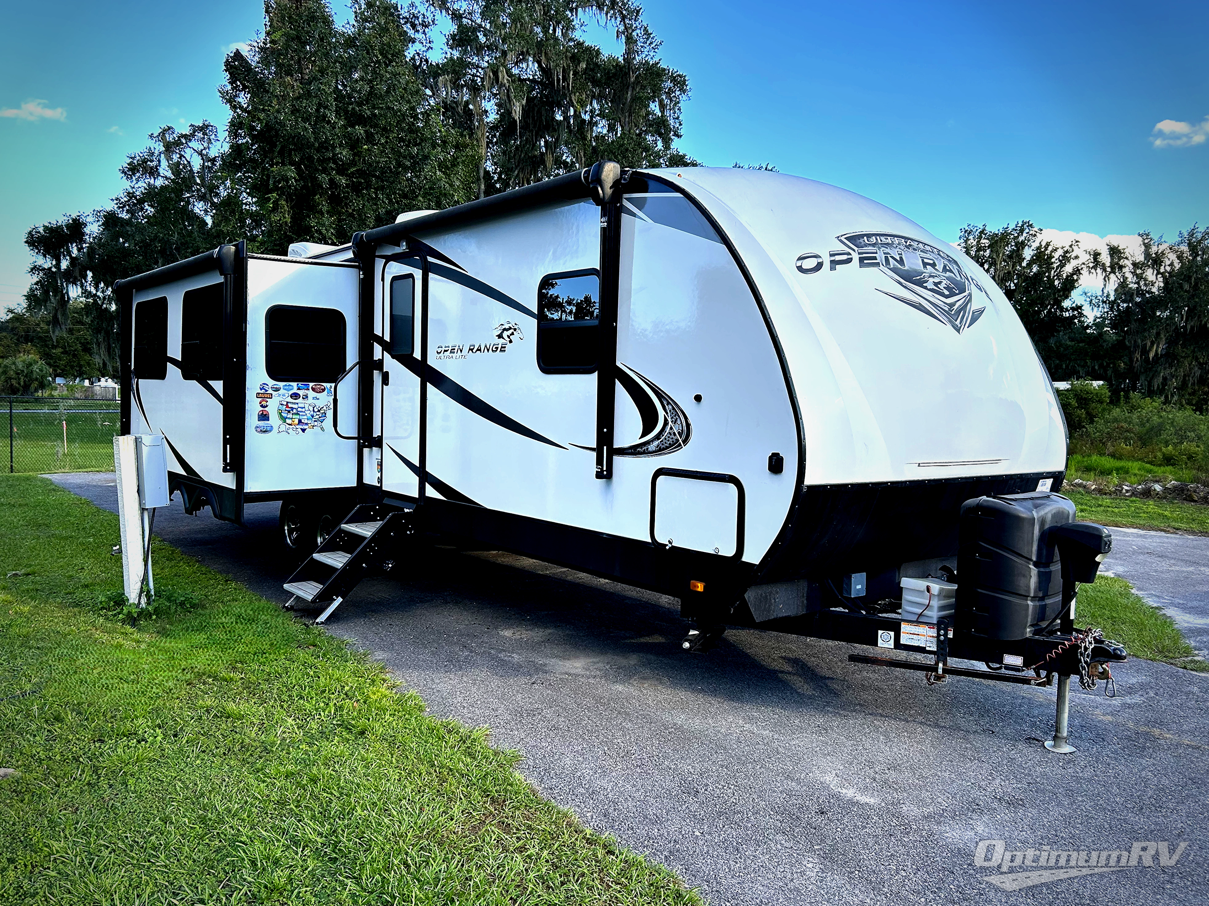 Are you interested in having your own private bedroom, a full bathroom, a fully equipped kitchen, and two power awnings? This Open Range Light travel trailer gives you all of that and more! Up in the bedroom, there is a laundry chute, two bedside closets, and two nightstands, and there is also an additional closet that has been prepped for a washer/dryer. The kitchen has great storage with its hutch, 8-cubic foot refrigerator, and full-size pantry, and the living area provides you with comfortable seating on the tri-fold sofa, theater seating, and booth dinette. You can even sit back, relax, and enjoy a show on the 39" LED HDTV with fireplace beneath.