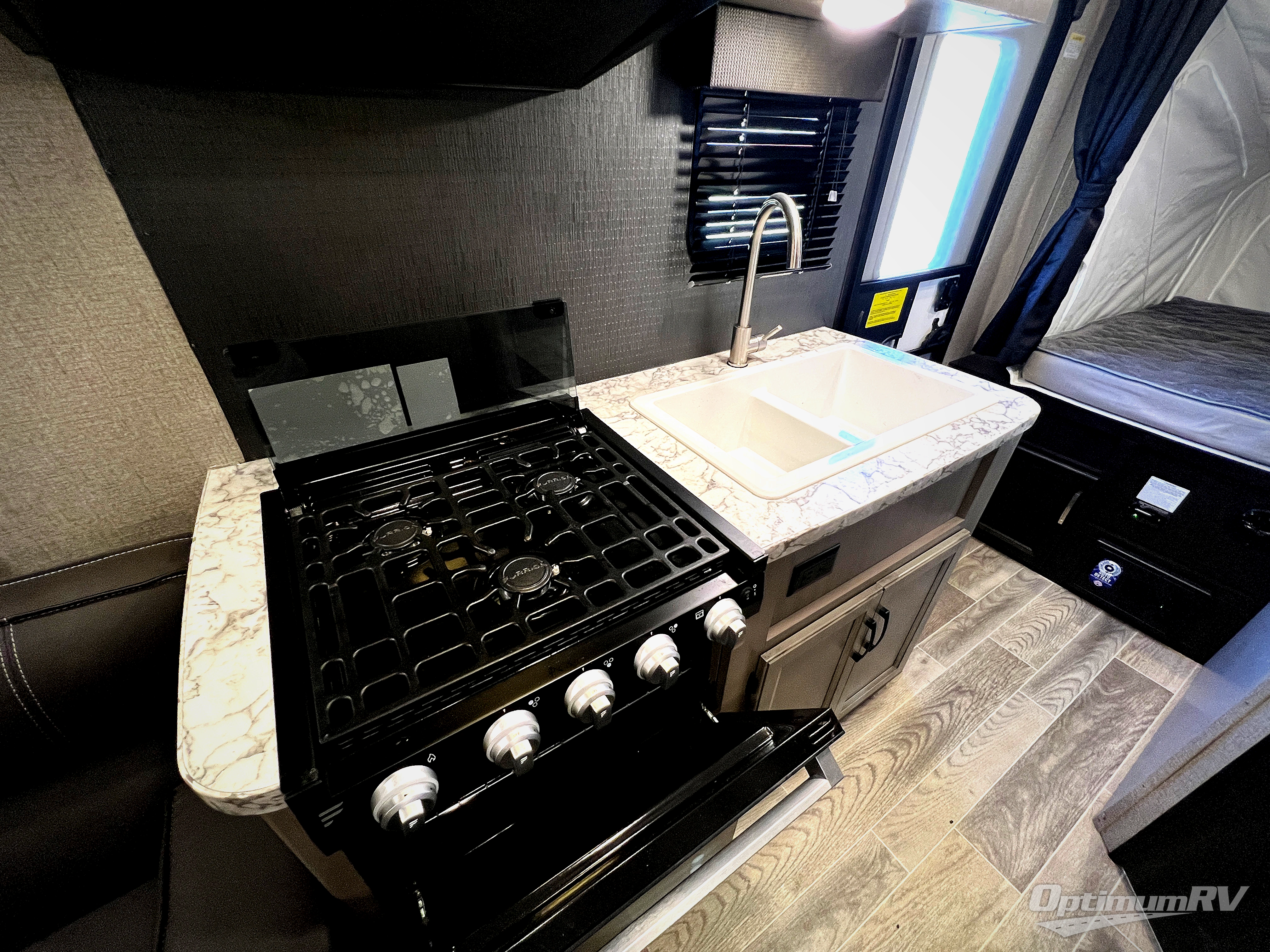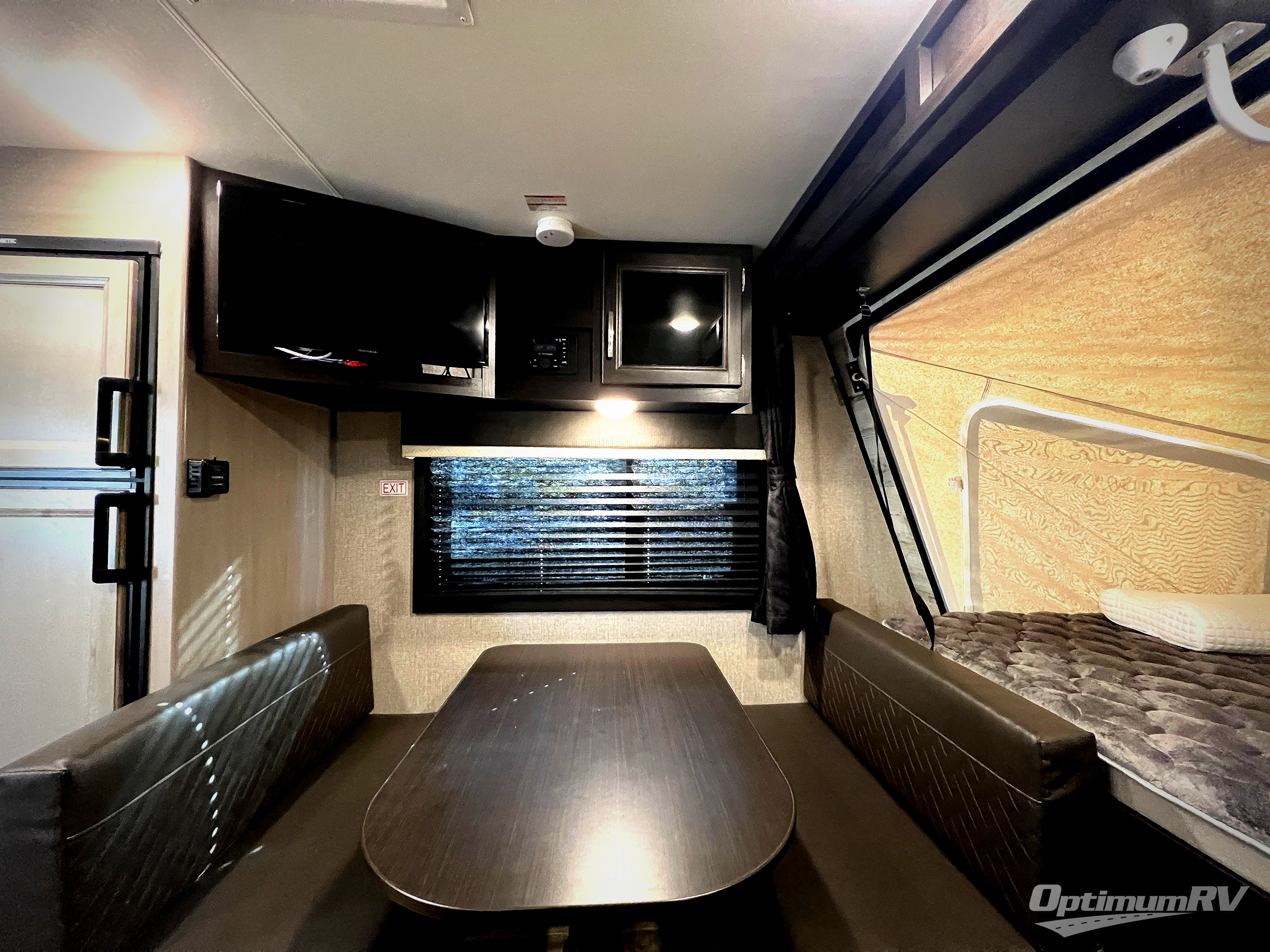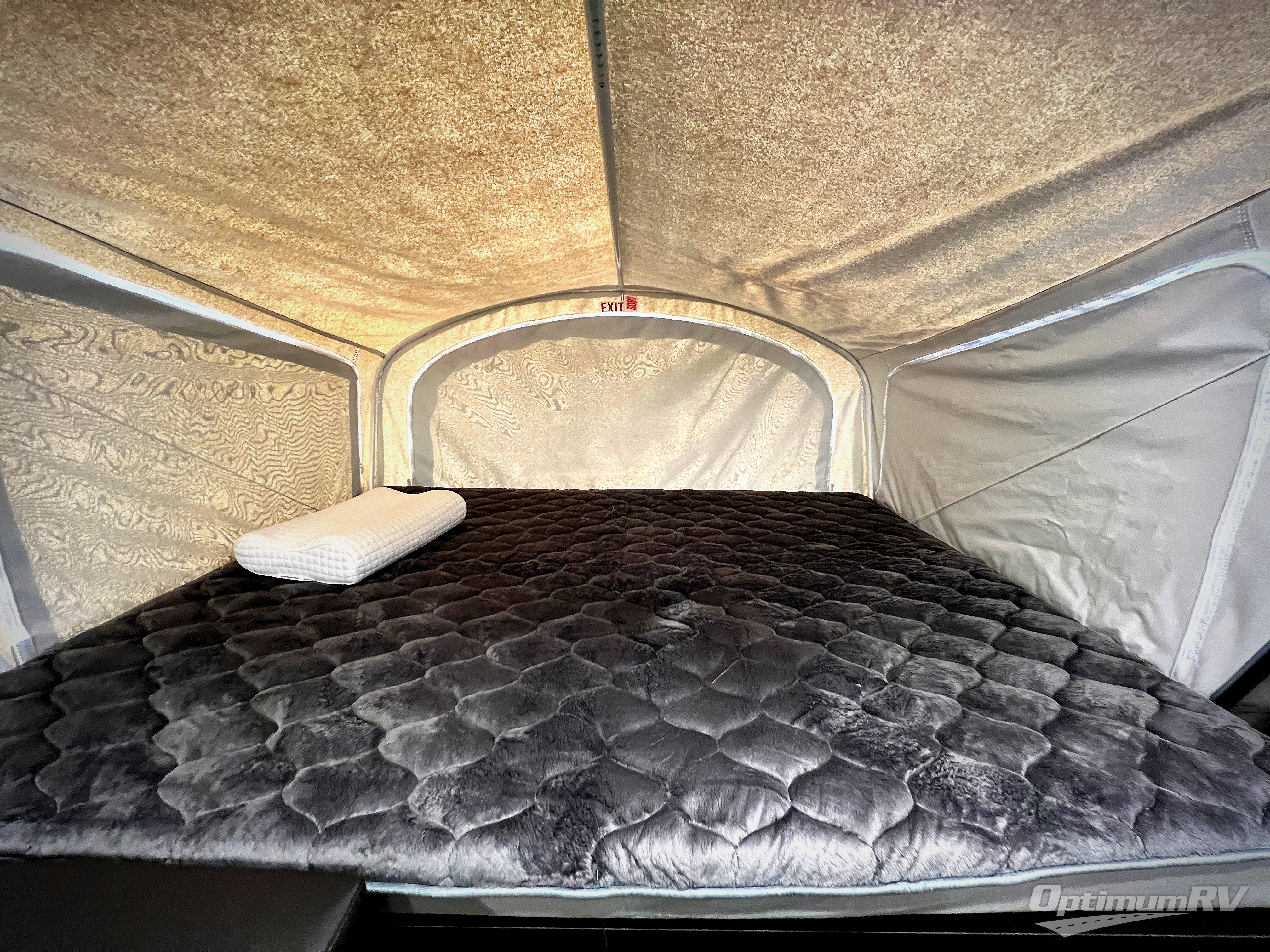 A family of four to six will enjoy this hybrid expandable with a rear 58" x 76" and a front 60" x 76" tent end bed on top of the Stronghold vacuum-bonded bed platforms with 1,050 lb. weight rating. You can make meals with the appliances provided and store your leftovers in the 6 cu. ft. refrigerator. The sofa and dinette allow you to relax inside as well as provides extra sleeping space. Everyone can take turns getting cleaned up in the full bathroom with a radius shower before choosing your bed, and you will find storage in the overhead shelves and cabinets.
