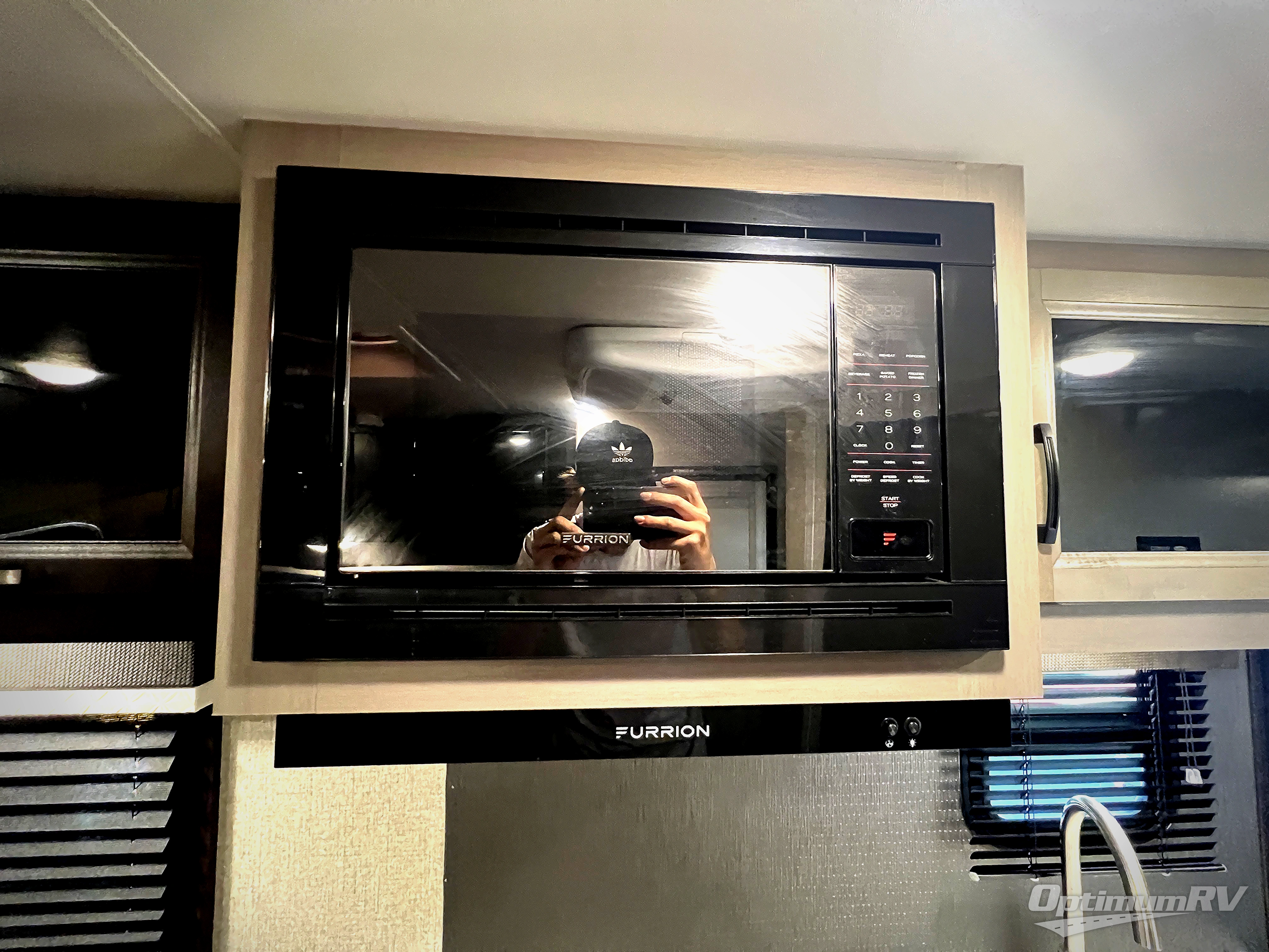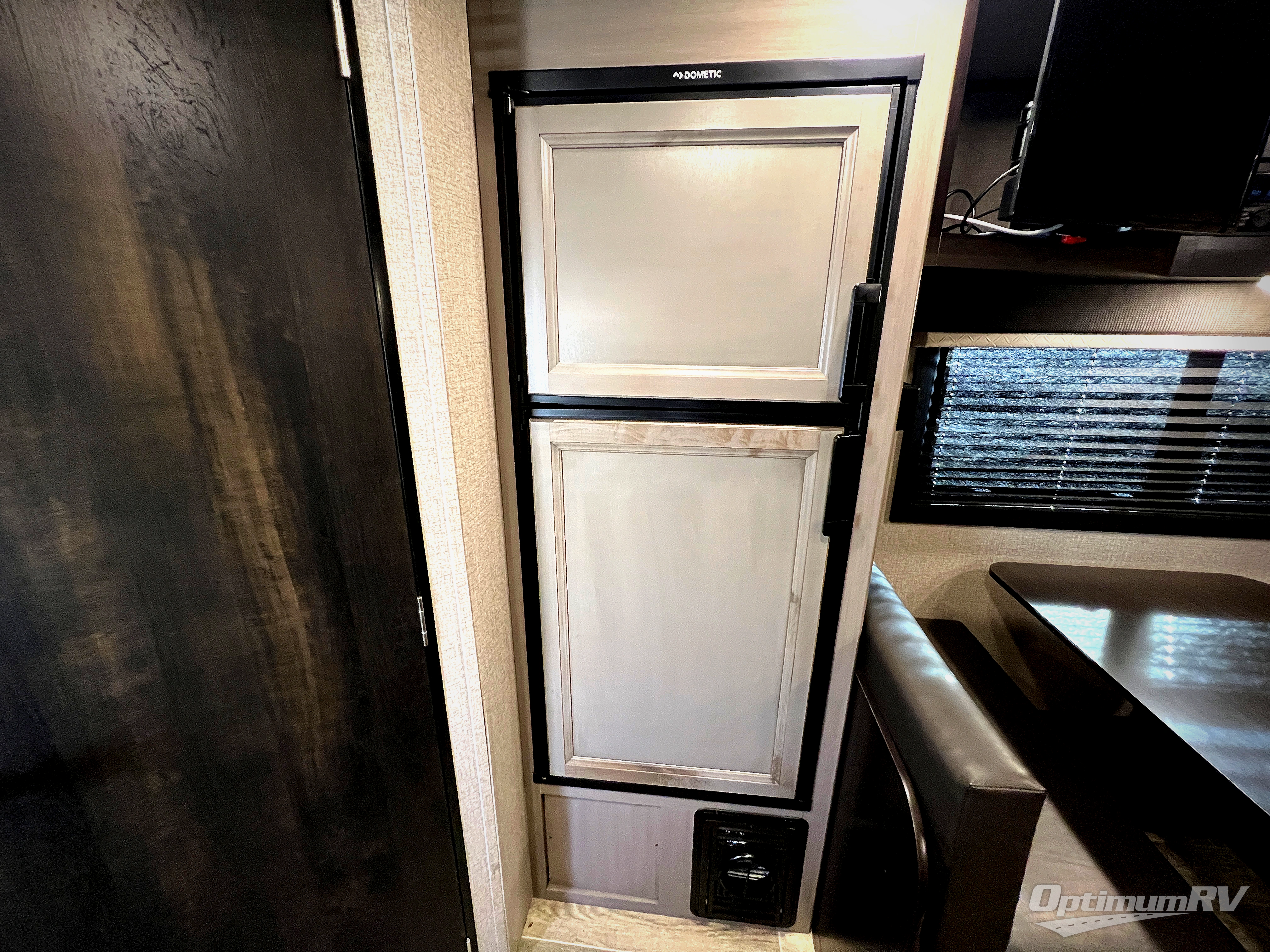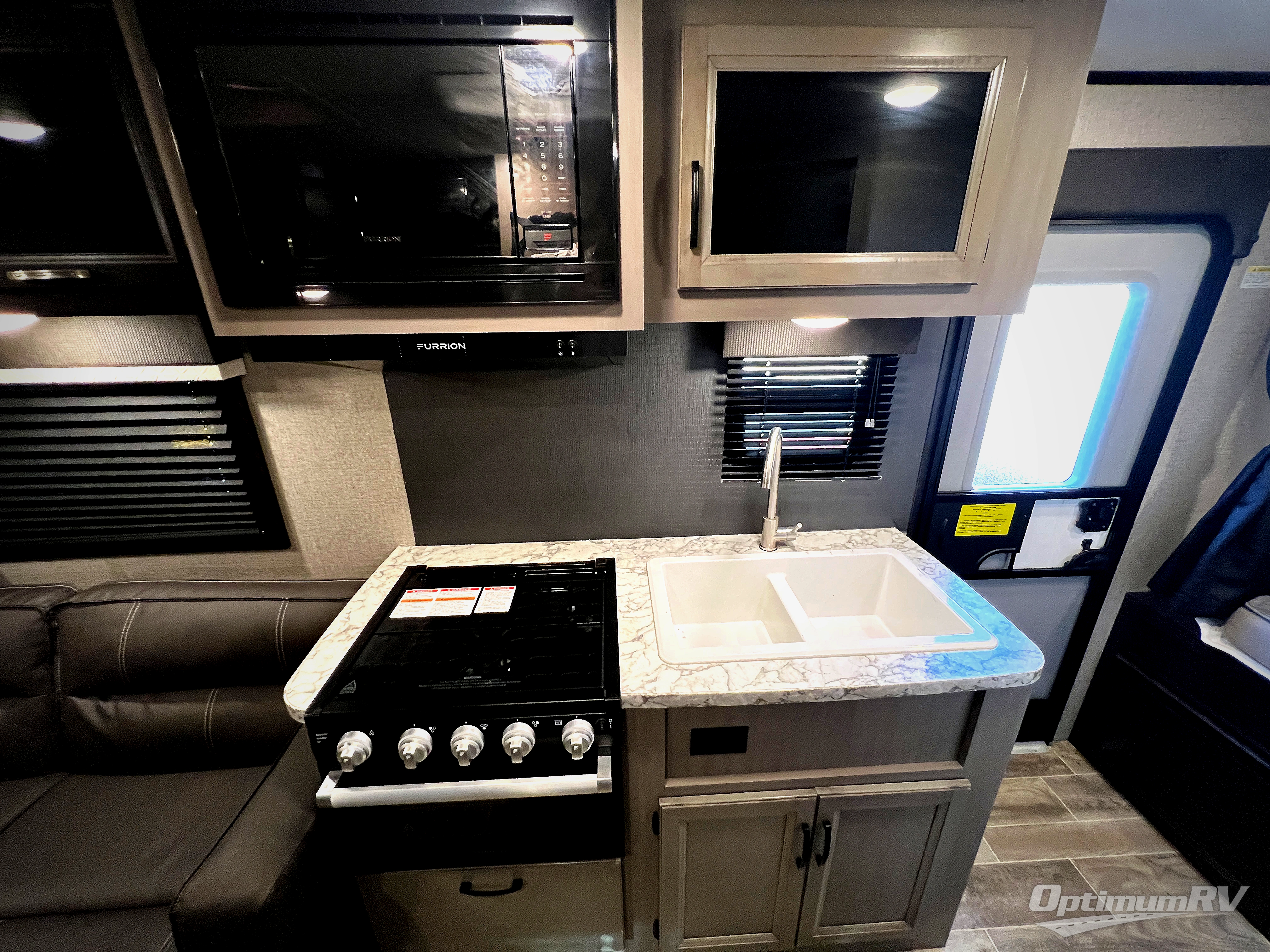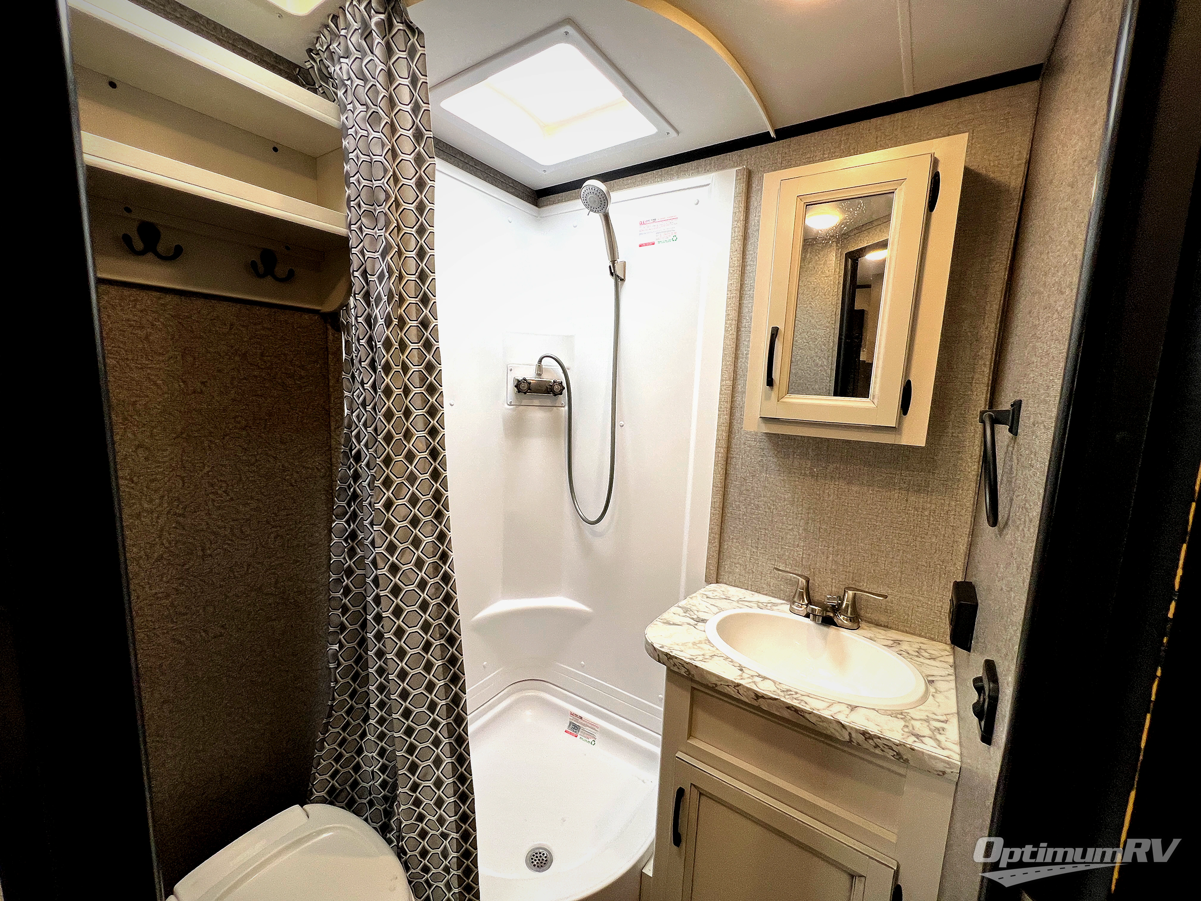 A family of four to six will enjoy this hybrid expandable with a rear 58" x 76" and a front 60" x 76" tent end bed on top of the Stronghold vacuum-bonded bed platforms with 1,050 lb. weight rating. You can make meals with the appliances provided and store your leftovers in the 6 cu. ft. refrigerator. The sofa and dinette allow you to relax inside as well as provides extra sleeping space. Everyone can take turns getting cleaned up in the full bathroom with a radius shower before choosing your bed, and you will find storage in the overhead shelves and cabinets.