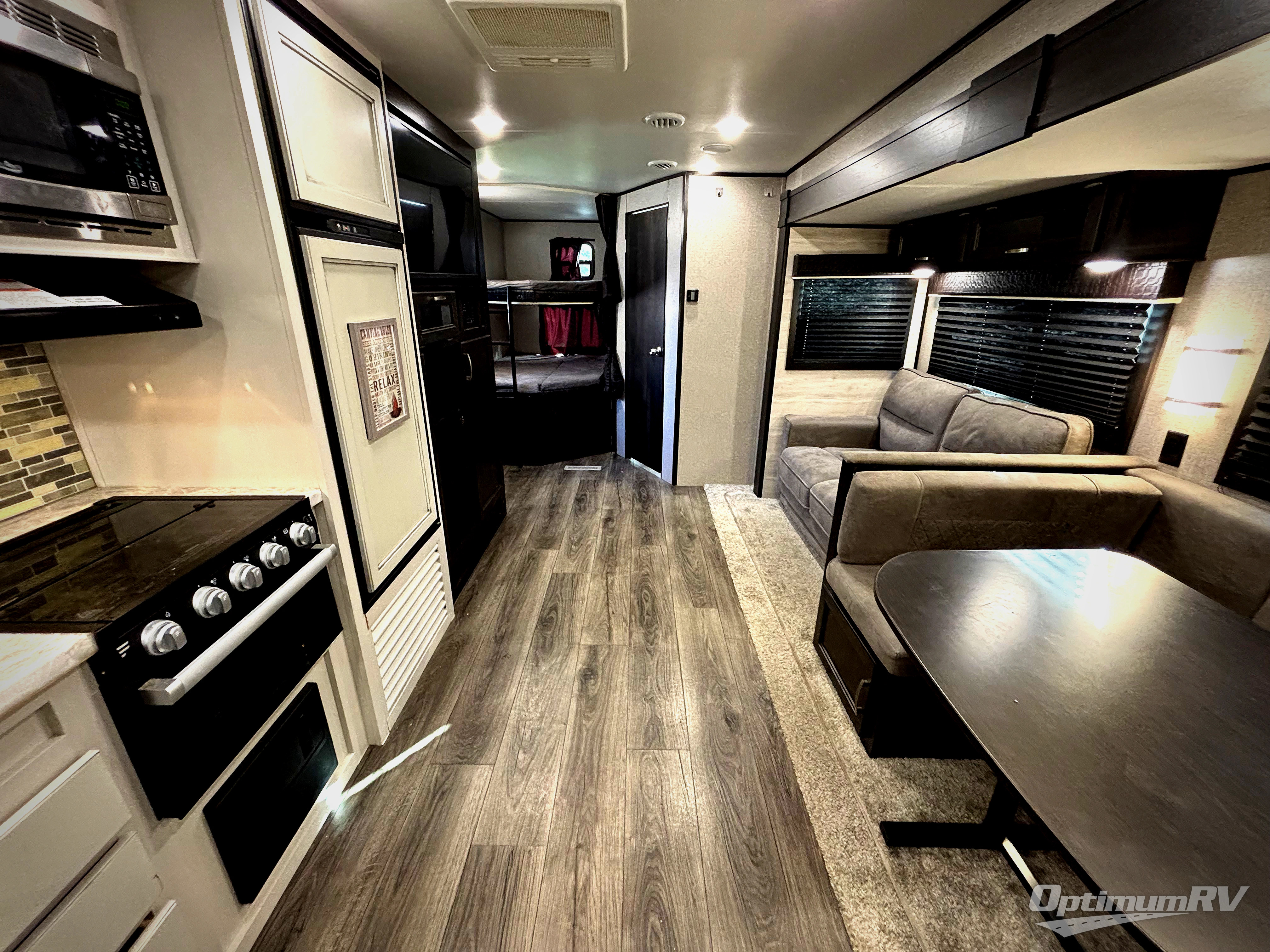 Are you looking for an RV that is extremely family-friendly? Look no further than this Jay Flight travel trailer! It will be easy to have family time in the main living area because there is seating space on the jackknife sofa and U-shaped dinette, and the large slide provides extra space so that you don't feel cramped while you're together. Everyone can have their own sleeping space with the front private bedroom and the rear double-size bunks, and since there are also two entry doors included in this trailer, you can even come and go easily too. The full bathroom is extremely valuable for morning routines, and having both an indoor and outdoor kitchen is going to make your life so much simpler.