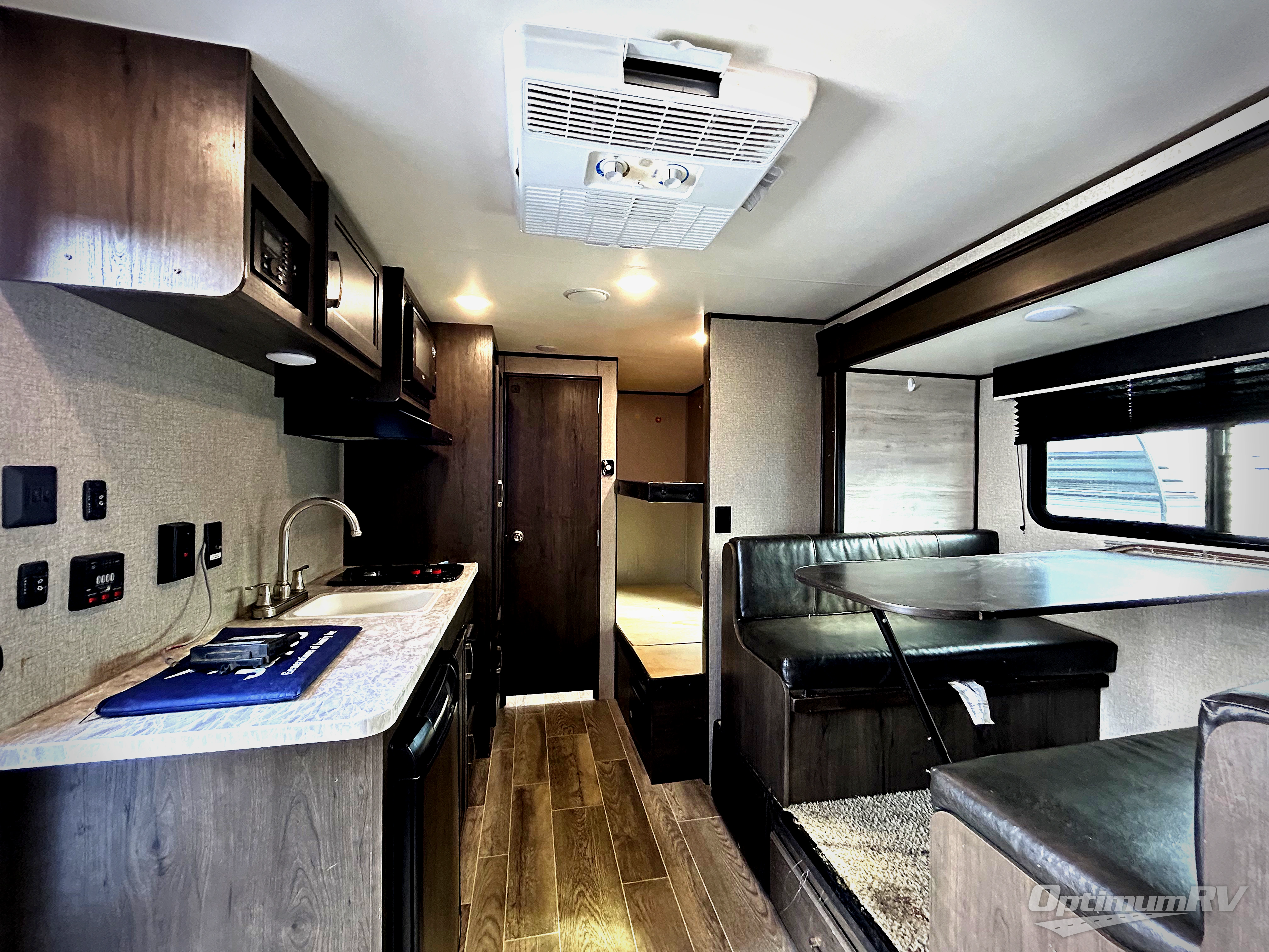 This Jay Flight SLX 7 travel trailer is similar to model 174BH, but it includes a slide out for more interior space. The bunk beds include 4"-thick bunk mats for comfort, and the front queen bed includes a privacy curtain for your own space. Easily prepare your meals on the two-burner cooktop, or use the convenient microwave oven. This mode includes a private bathroom so that you don't have to use the camp's facilities, plus you'll find plenty of storage, including overhead compartments, a pantry, and outside storage!