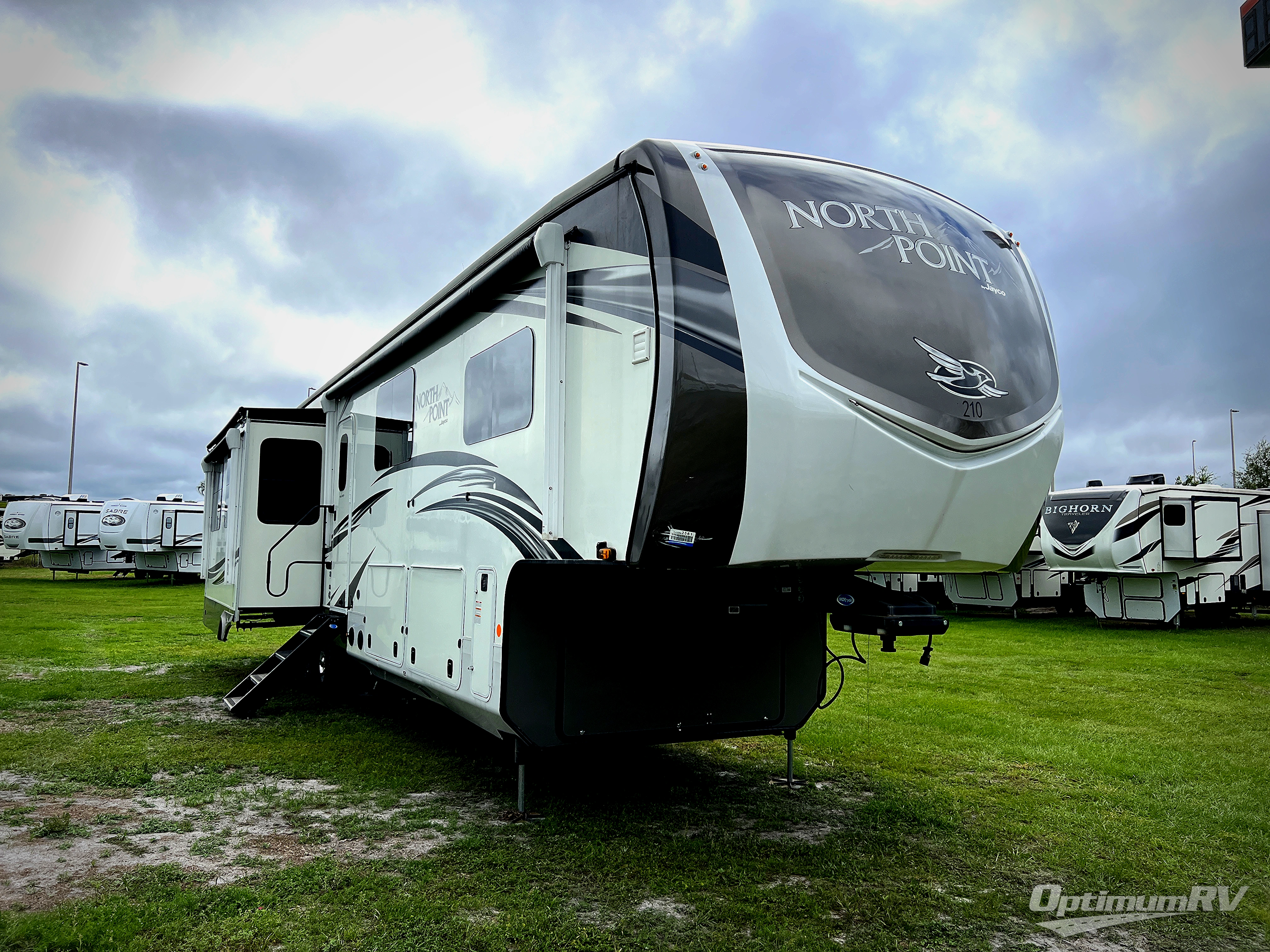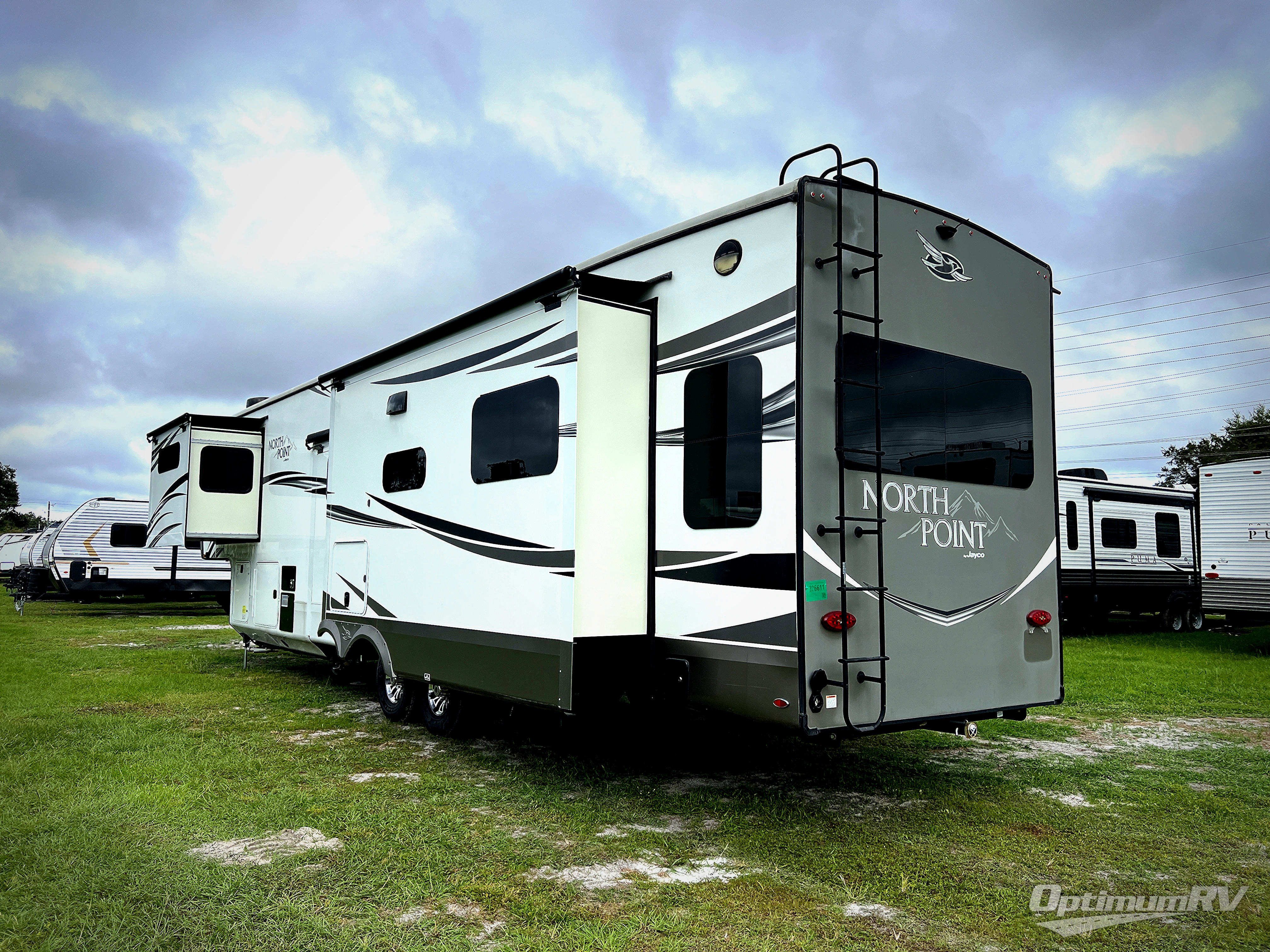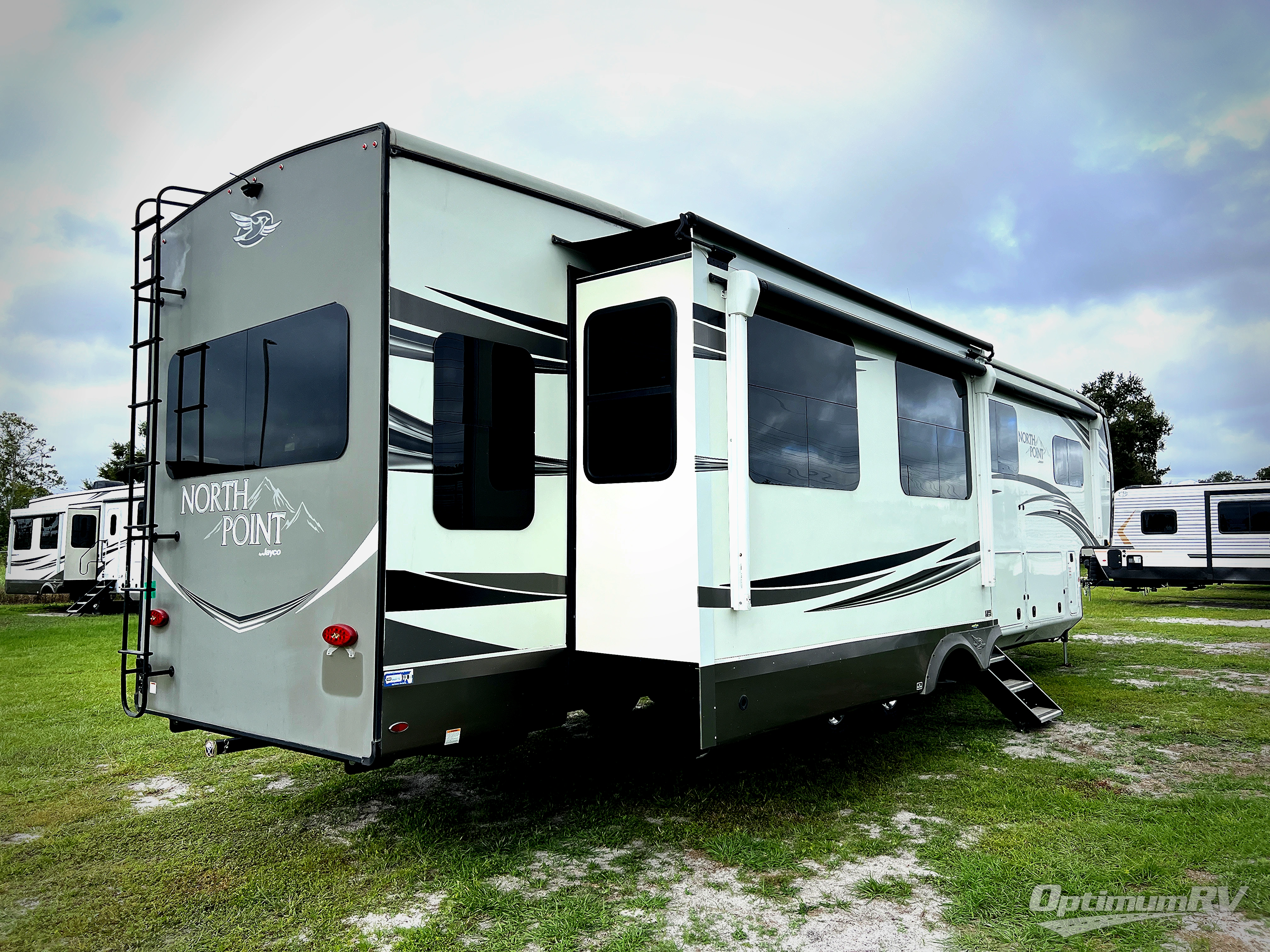 These Jayco North Point fifth wheels offer sleeping spaces and luxurious features to accommodate all types and sizes of groups! You will have generations of family fun with construction features like the Stronghold VBL™ aluminum framed, vacuum bond laminated walls and a Magnum Truss™ XL6™ roof system with a one-piece, seamless DiFlex II material which is the strongest tested roof in the industry. There are three mandatory packages to make your traveling experience even better. One of the packages is a five star handling package which includes Dexter axles with Nev-R-Adjust brakes, Dexter heavy-duty shackles with wet bolt fasteners and bronze bushings to resist the wear and tear of towing, Goodyear beast tires, a MORryde rubberized suspension system, and a MORryde pin box so you can travel forward, backward, and side-to-side for a smoother tow. Come choose your favorite model today!