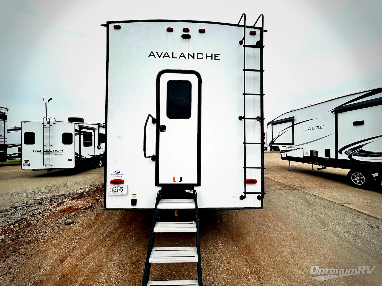 With any Keystone luxury full-profile Avalanche fifth wheel, you can experience wide-body construction that allows you to stretch out and stay awhile during any season thanks to the Polar Pack All Season Protection that includes a heated and enclosed underbelly, an Astro foil reflective layer on the roof, front and rear walls, and two static attic vents, plus more! The interior offers grained soft gray wood throughout and polished natural stone solid surface countertops, plus your choice of modern interior design. There are many more Keystone exclusives, plus standard and optional features that will allow you to choose the perfect RV for you!