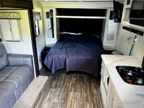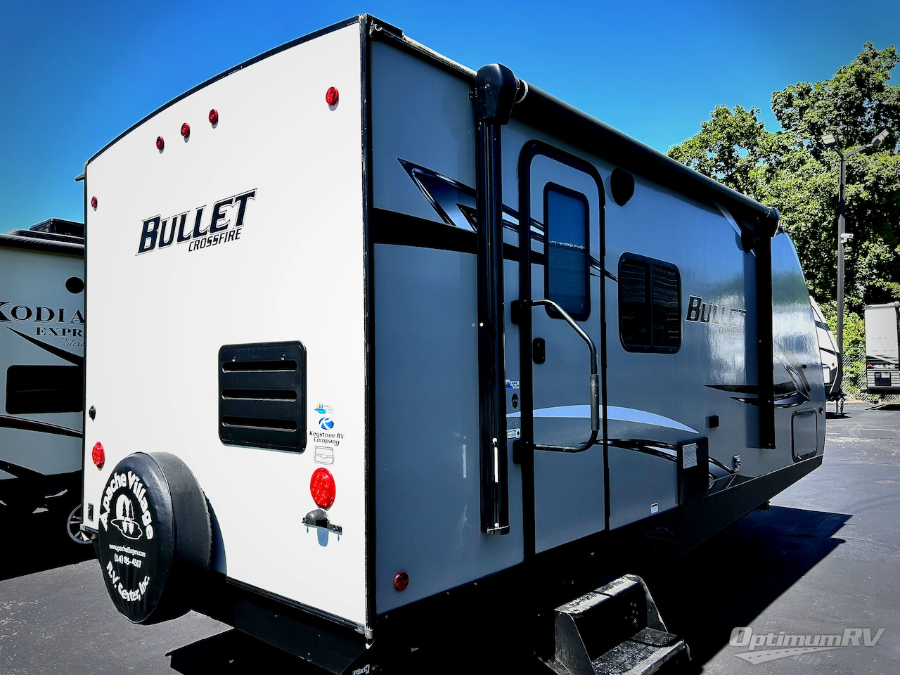 This Bullet Crossfire travel trailer is the perfect complement to all of your upcoming travel plans! Because of the single slide, the interior feels spacious as you sit back and relax on the 68" tri-fold sofa and set your cup of coffee on the end table. The stainless steel sink and two-burner range in the kitchen will ensure that you can create delicious meals while you're out exploring, and the radius shower in the back will give you an area to get cleaned up whenever you need.