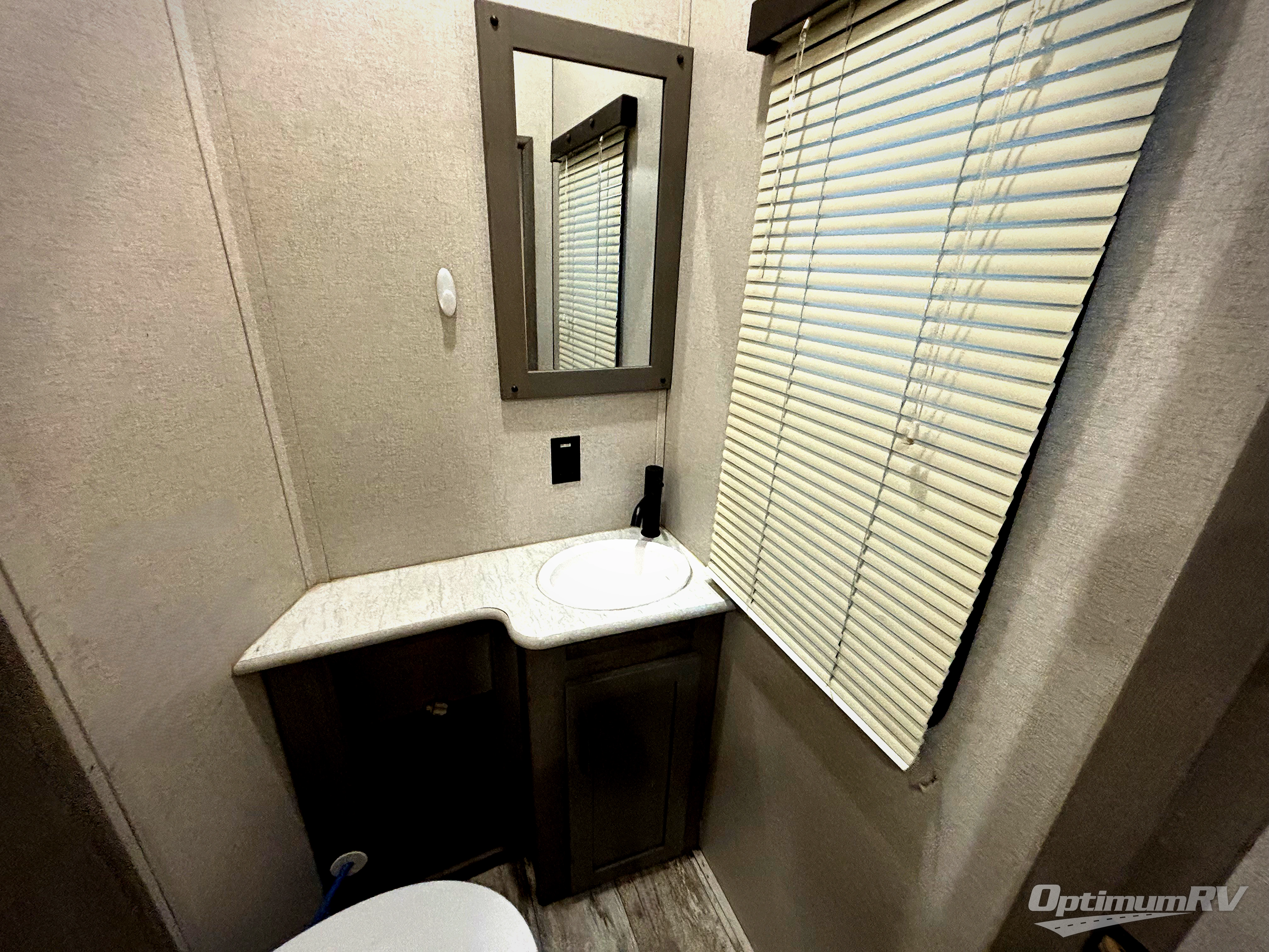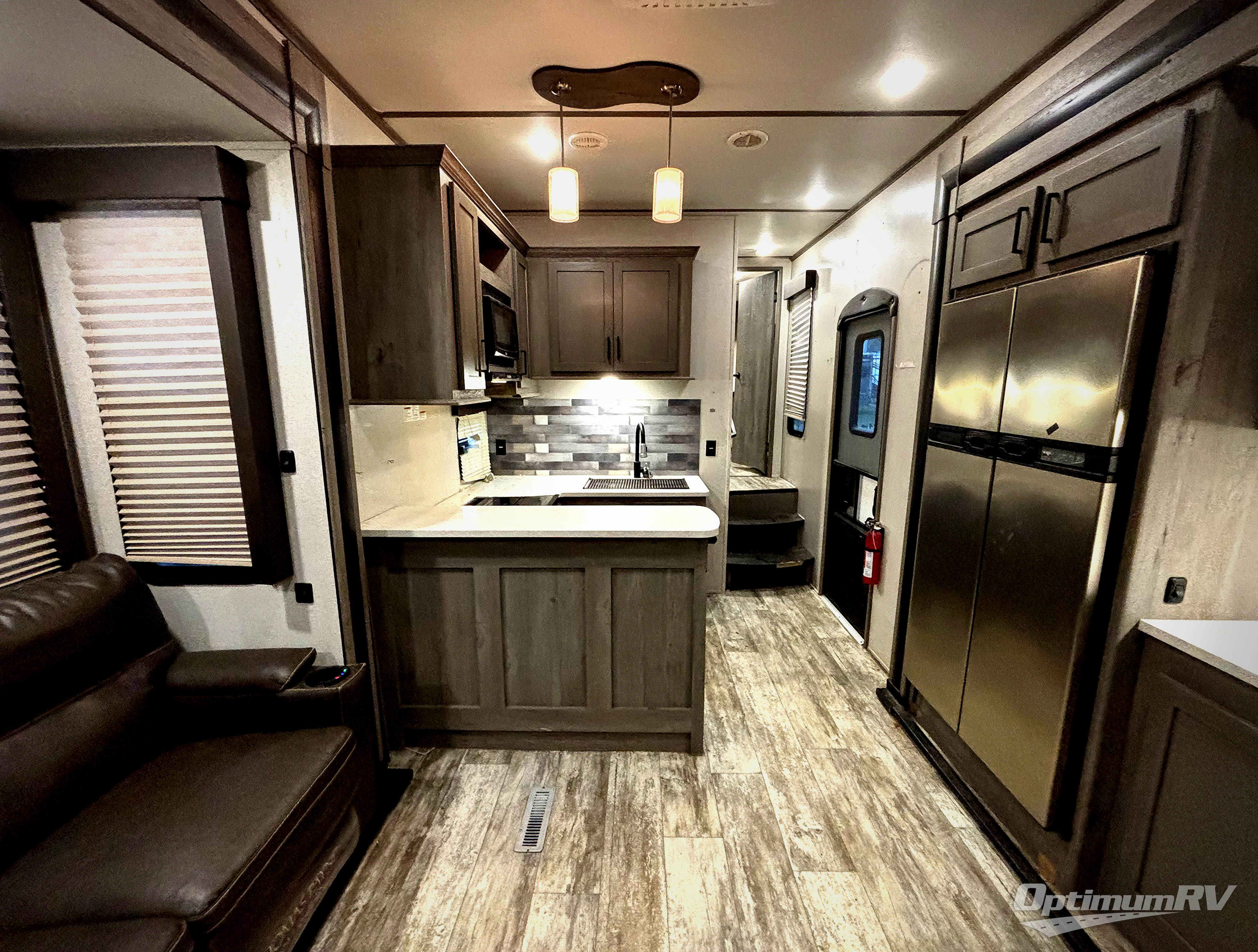 The new look of the Keystone Carbon toy hauler is clean, sporty, and optimistic! This brand is geared towards those who enjoy an active lifestyle, and the new exterior graphics package perfectly displays that spirit. The Carbon now comes with the Blade high-performance air handling system which has been engineered by Keystone to deliver an average of 20% more cooling power by accelerating air flow, eliminating leakage, and delivering 360-degree circulation. The Carbon has been built for the road ahead with its Roto-Flex pin box that absorbs road shock, its Dexter E-Z Lube 7,000-LB axles, its automotive-grade fiberglass front cap that has been designed to prevent chipping, and its industry-leading frame-welded tie-downs that have a capacity of 5,000 LBS. Combine all of that with a top-notch interior designed for endless entertaining, and you have one very impressive Carbon toy hauler!