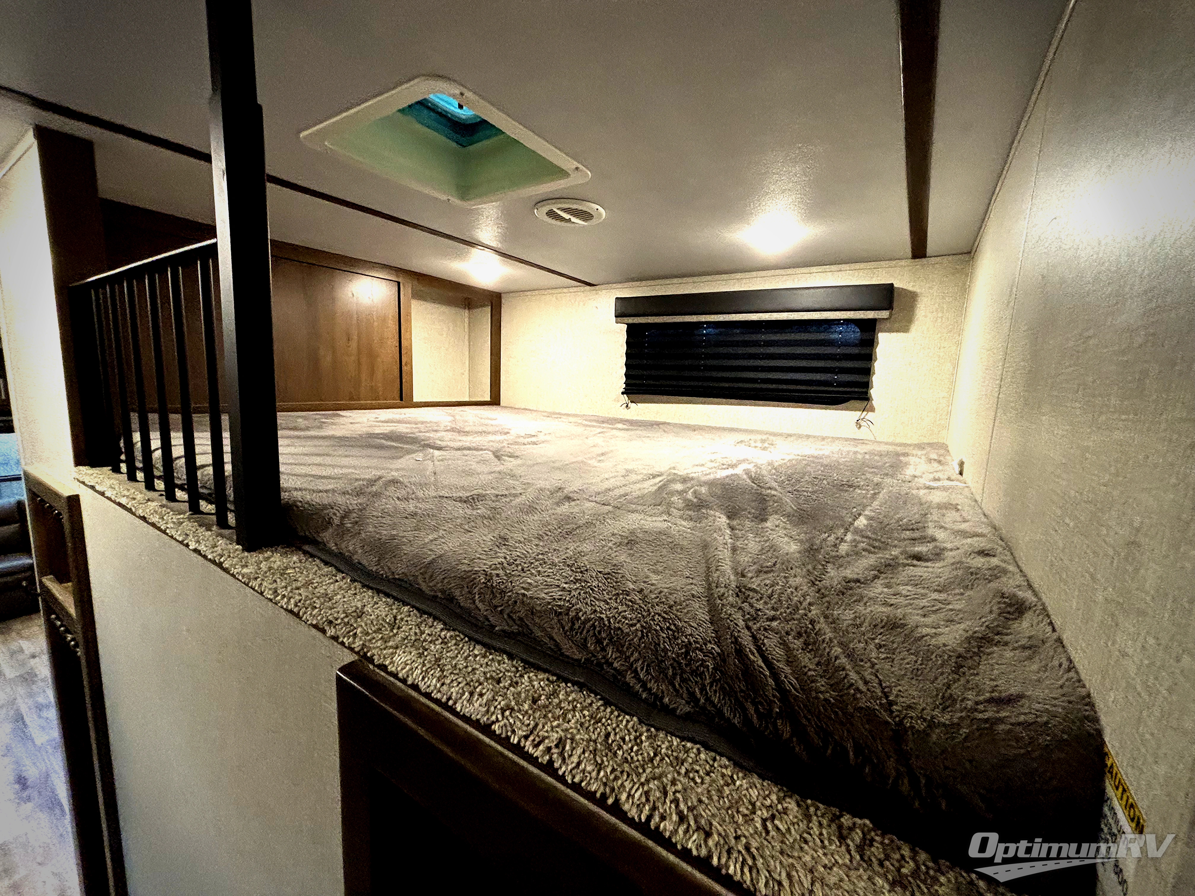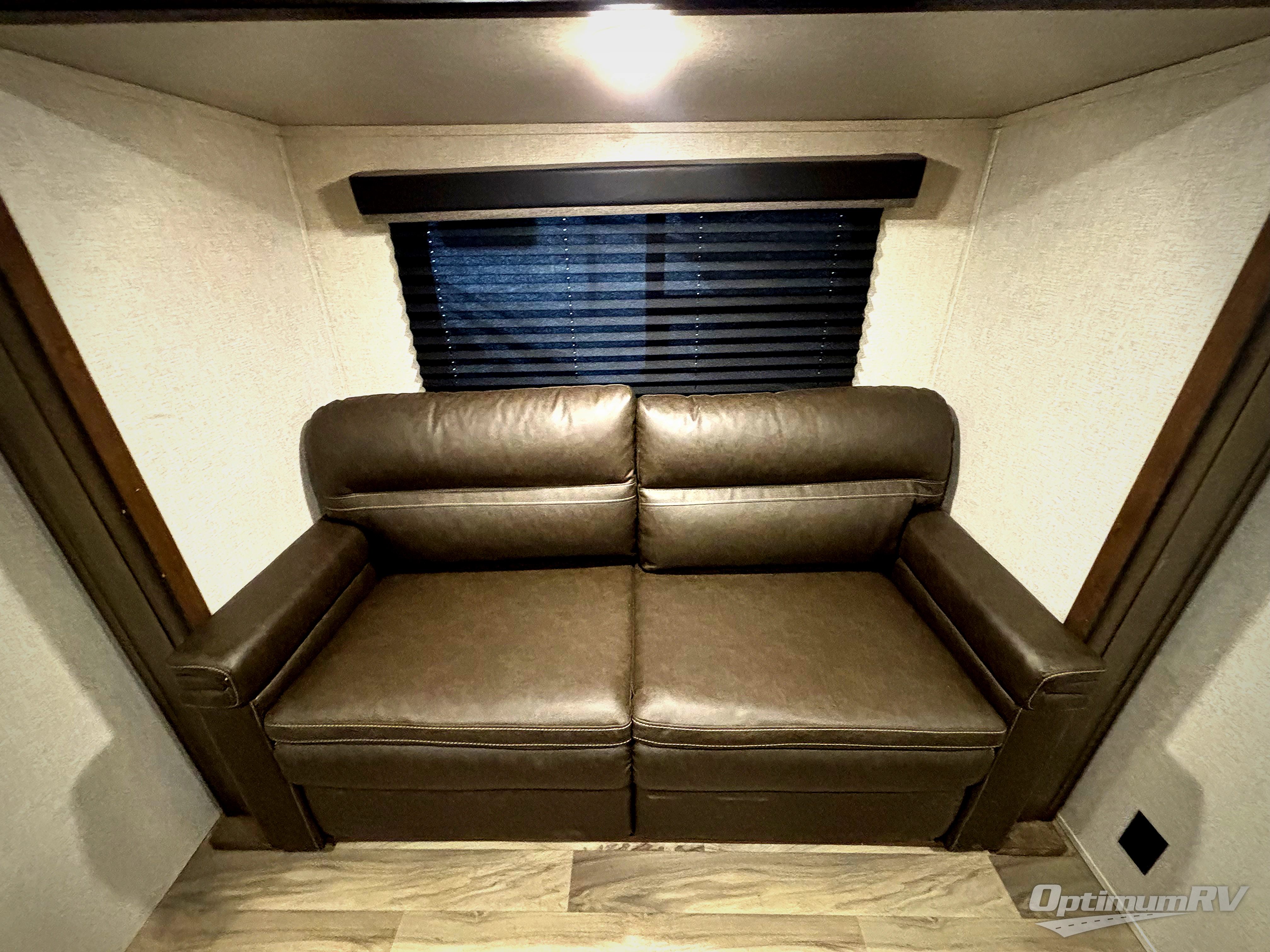 You and your family can enjoy the great outdoors with inside comforts only steps away. Spend your afternoons relaxing underneath the two power awnings while you use the outdoor grill to prepare dinner. You can easily stow away your camping chairs in the unobstructed pass-through compartment along with other outdoor gear when you need to tidy up. Once you head inside, you'll find a loft area above the extra room that can be utilized as a living area, an office and/or a bedroom thanks to the sleeper sofa, the desk and the wardrobe. You can even choose to stay up late and watch a show on the TV while you lounge on the tri-fold sleeper sofa or theater seating before heading to your own queen bed, or choose the king bed option.