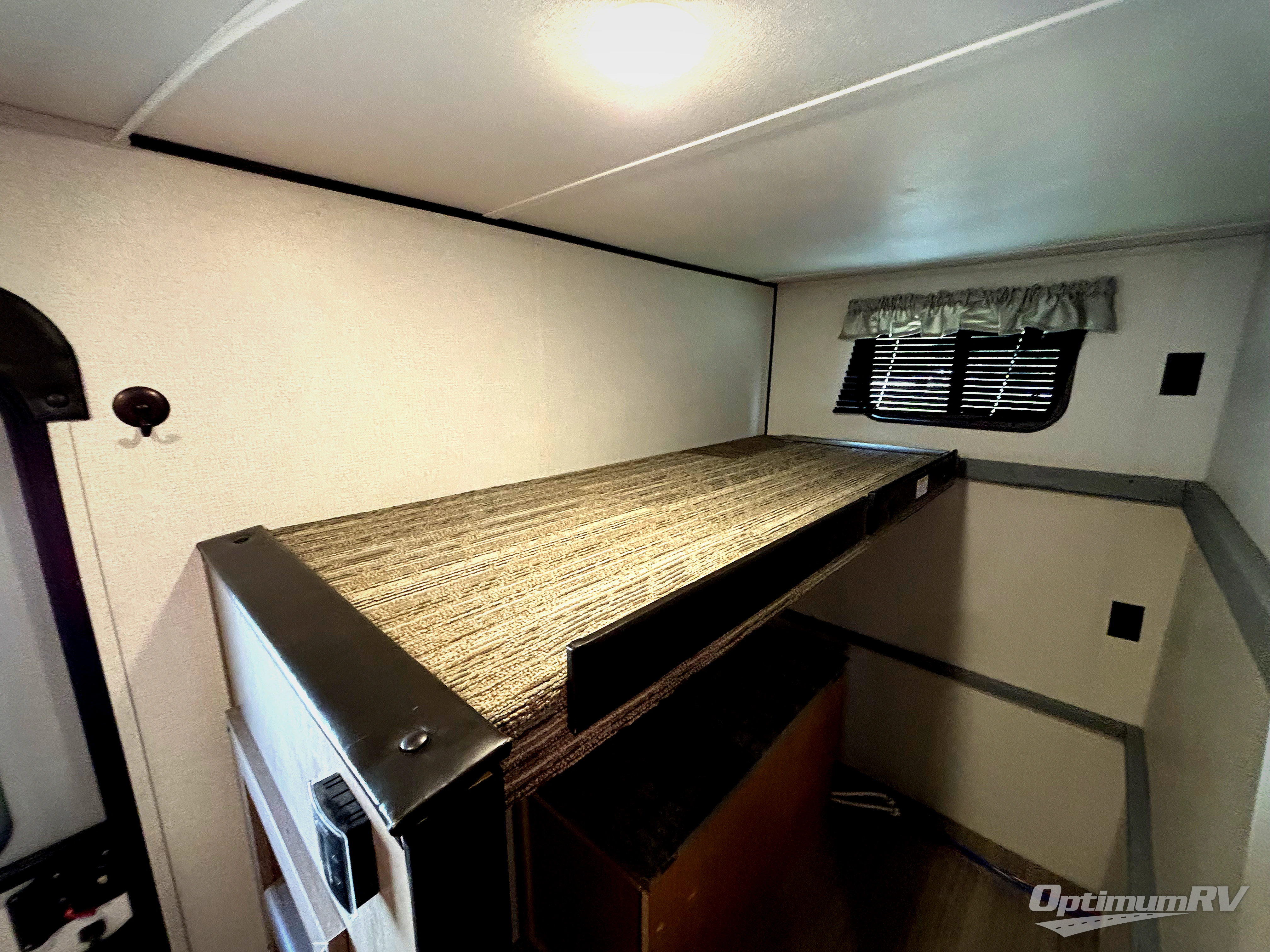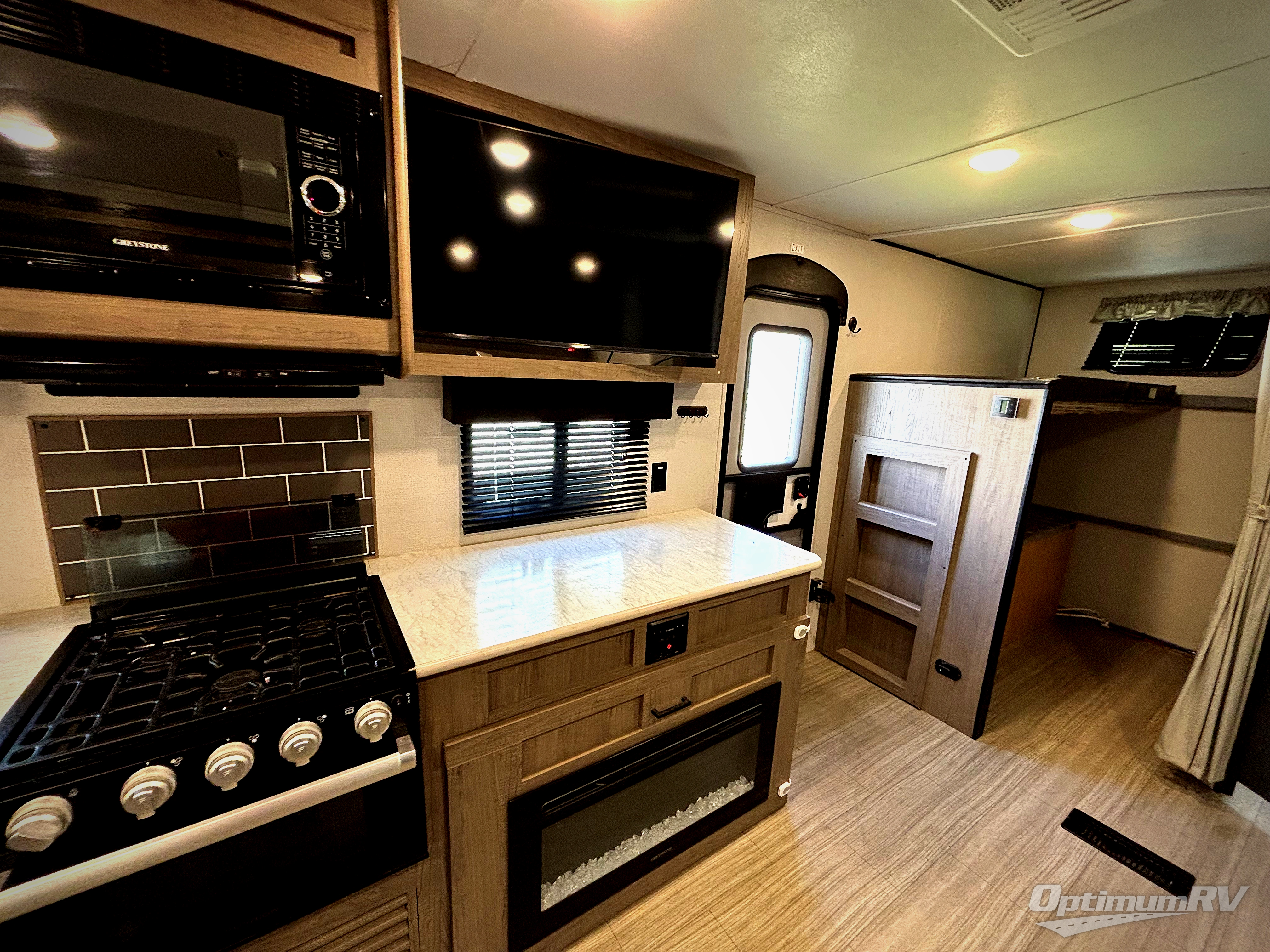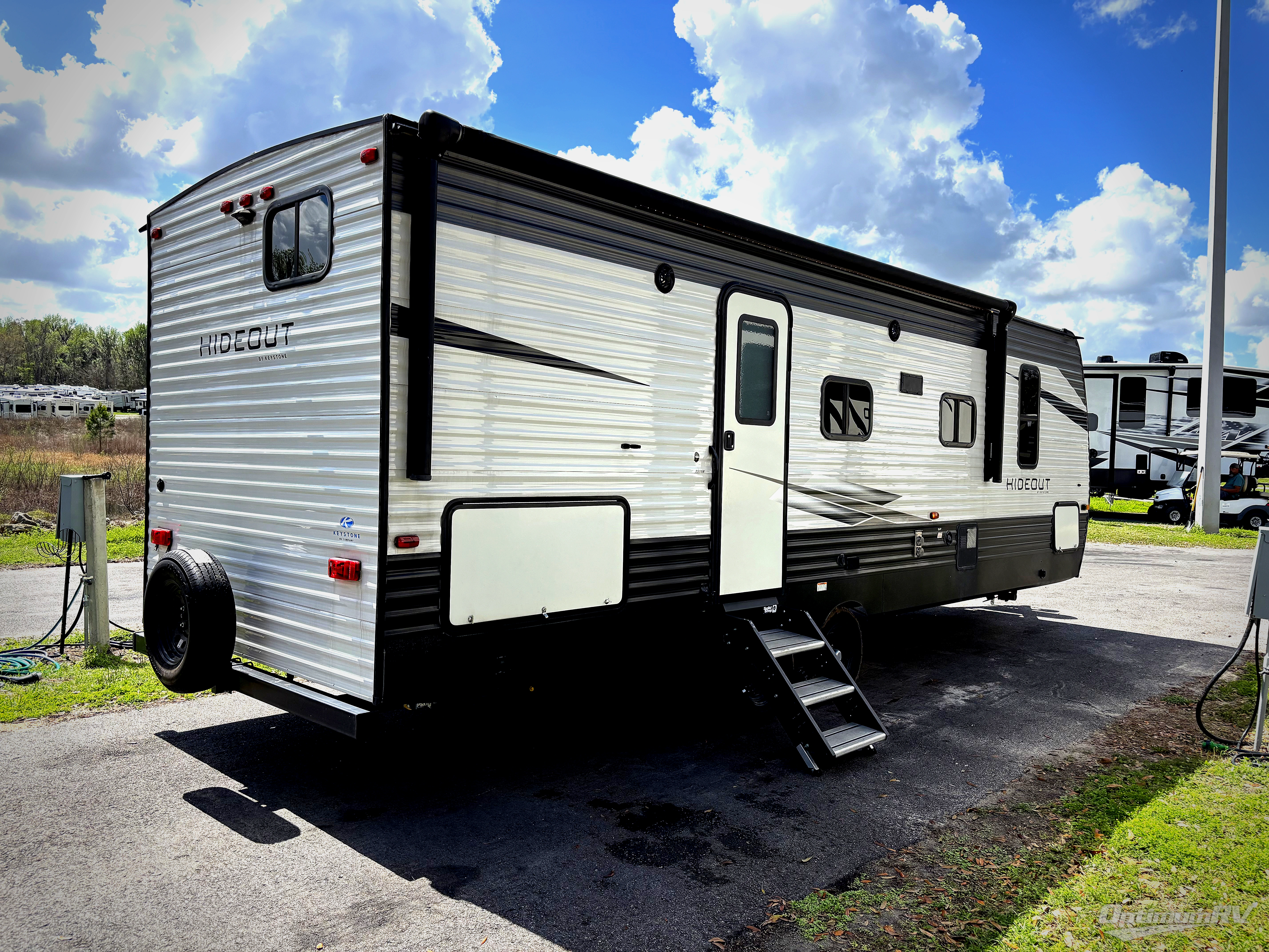 The whole family will love camping in this Hideout travel trailer! It features a front private bedroom with a queen-size bed for you to enjoy a good night's rest and a rear set of 52" x 74" bunk beds for the kids, plus the 72" sofa can convert into an extra sleeping space. The central vacuum is conveniently located in the kitchen, and the pull-out pantry is by the fireplace so that you can grab a snack before turning on the fireplace. The rear corner bathroom has a 38" walk-in shower for you to get squeaky clean and a closet just outside the bathroom for your storage needs. There is also storage underneath the sofa that doubles as seating, as well as a front exterior pass-through storage area and a rear exterior storage access!