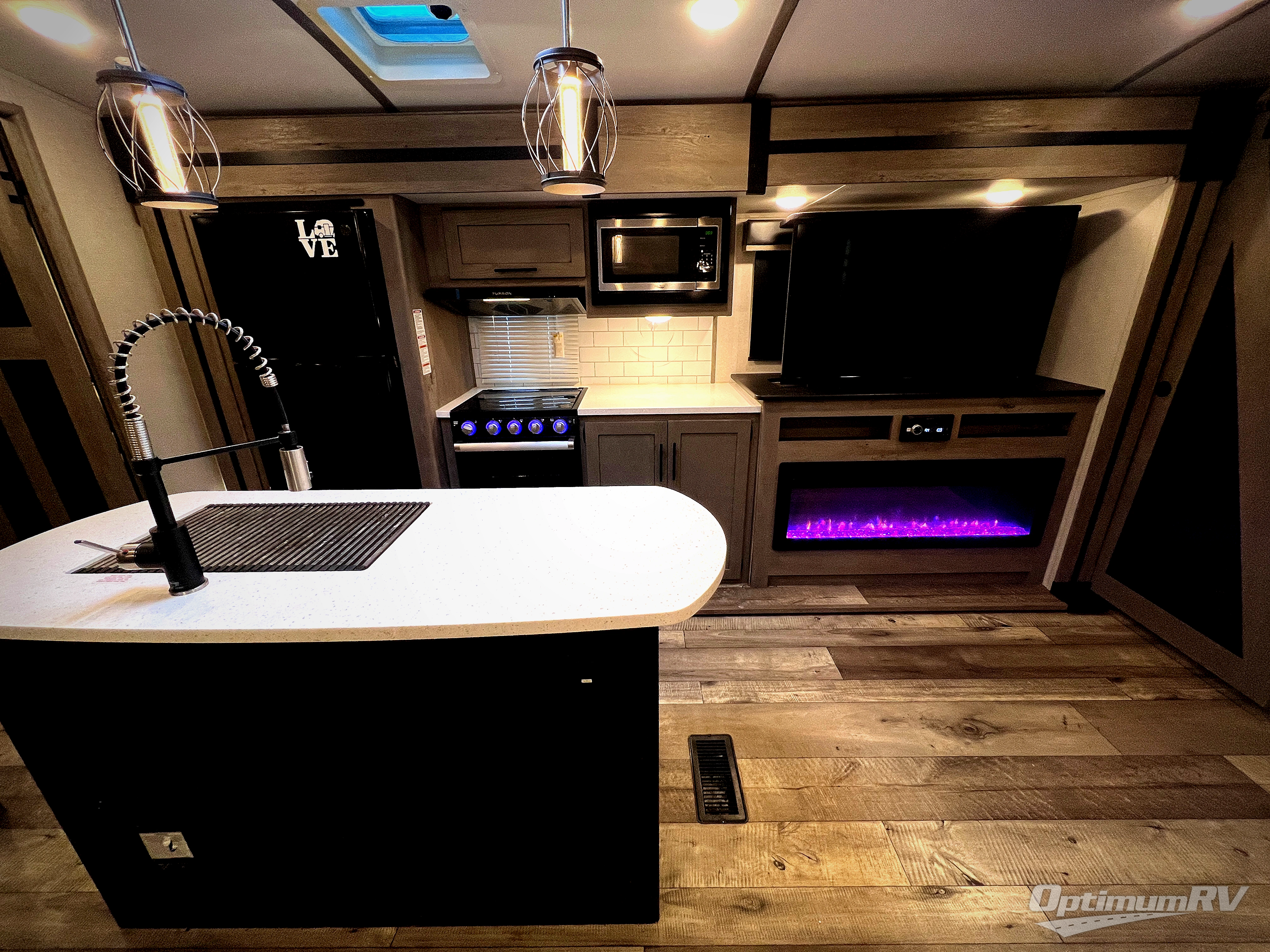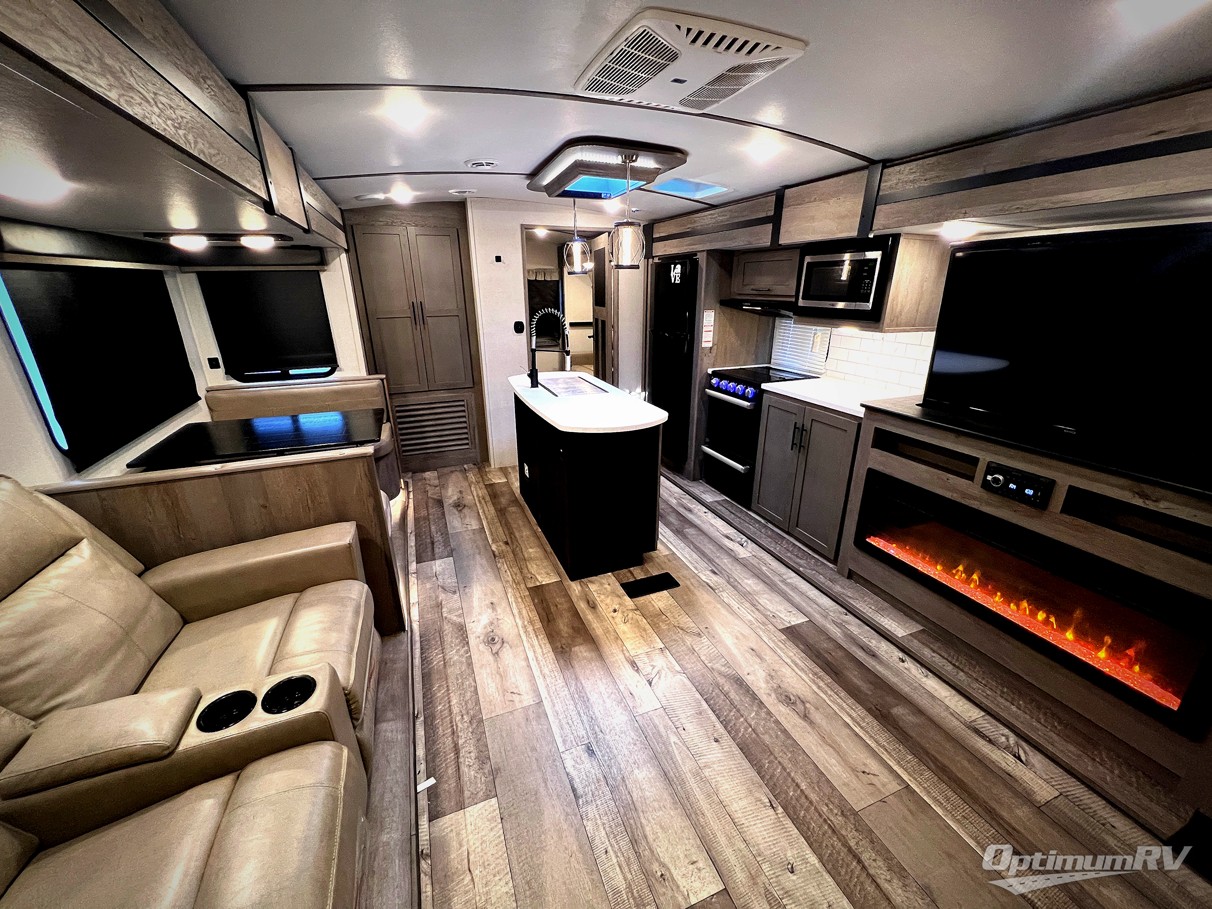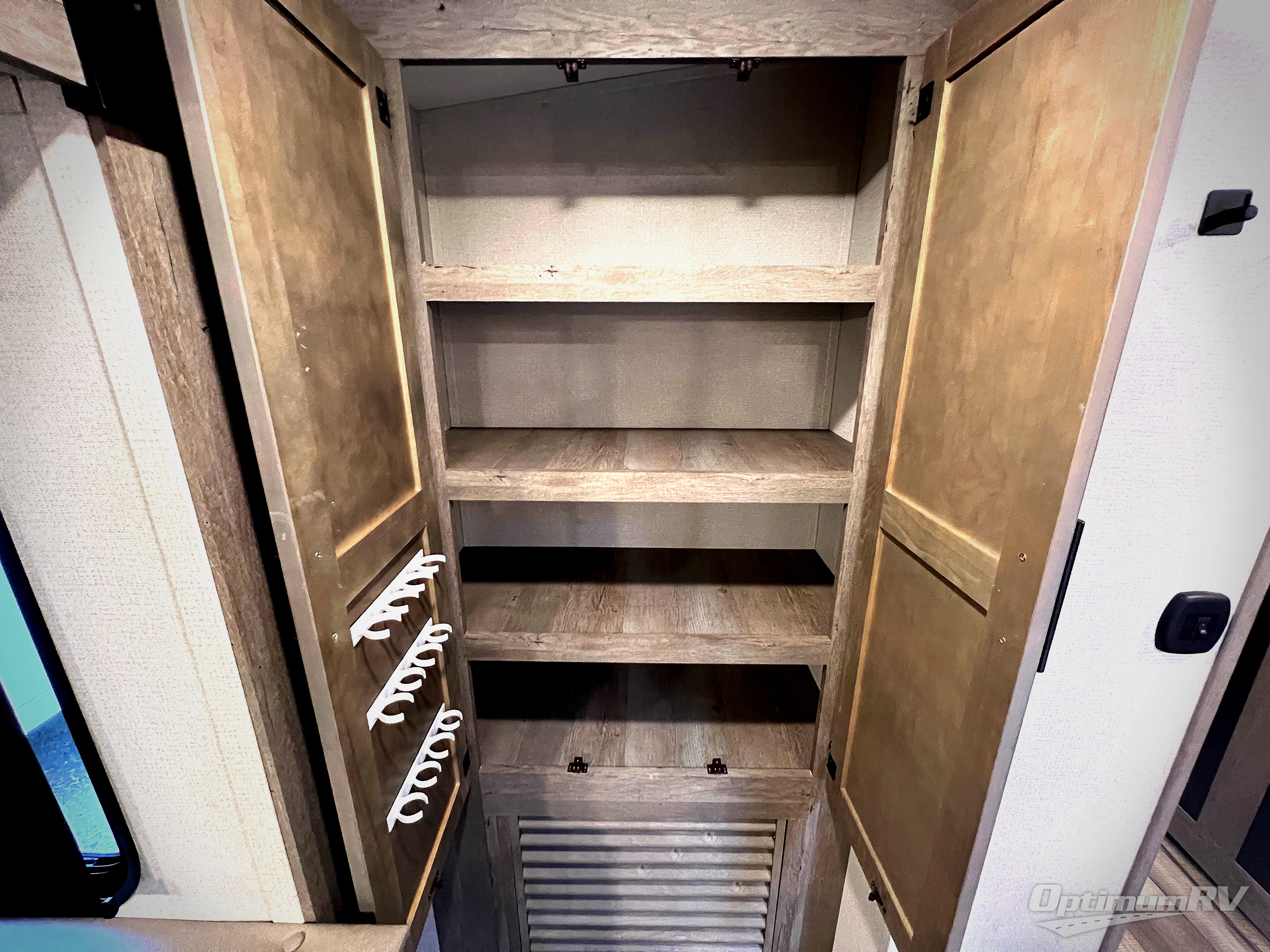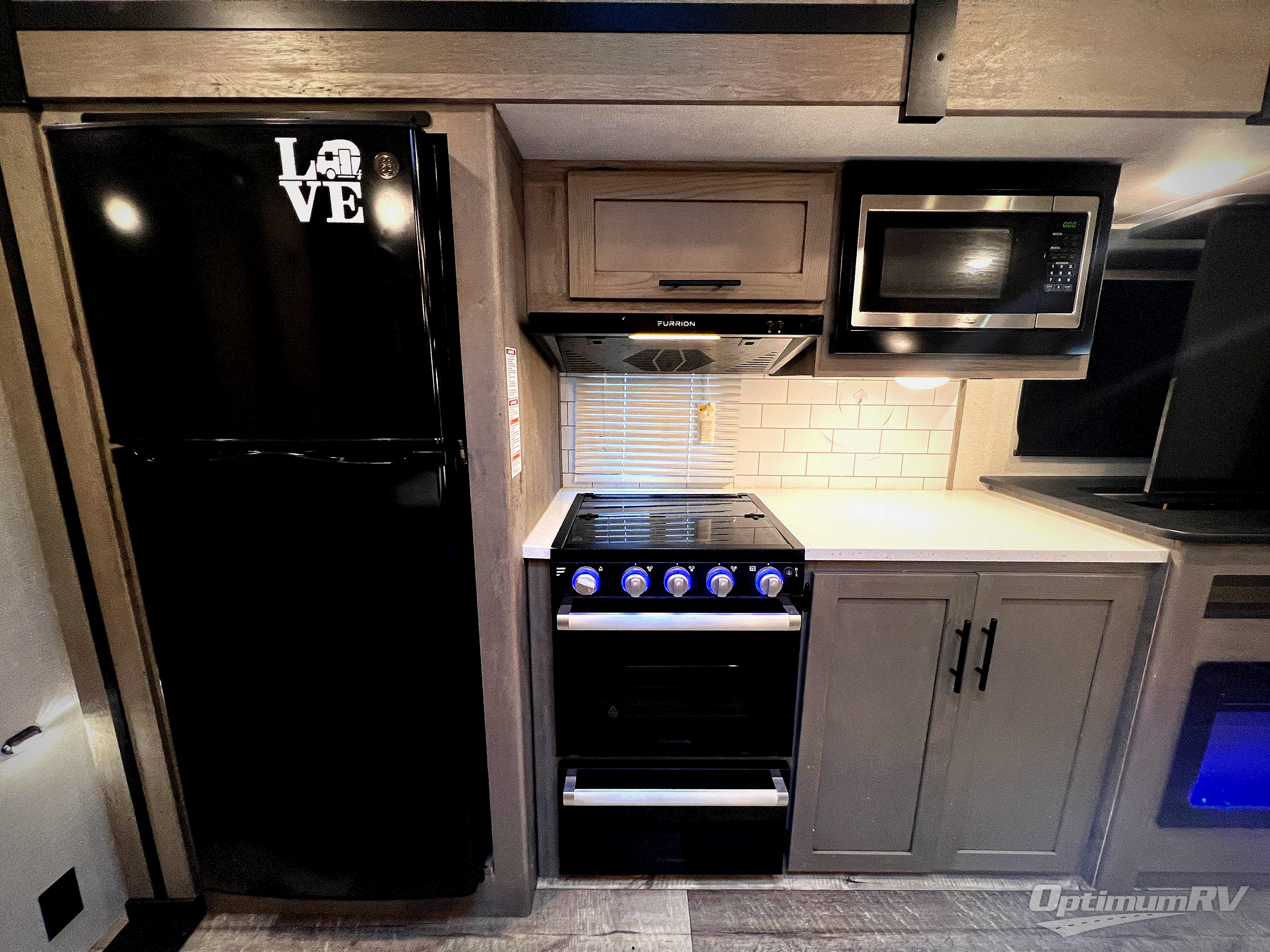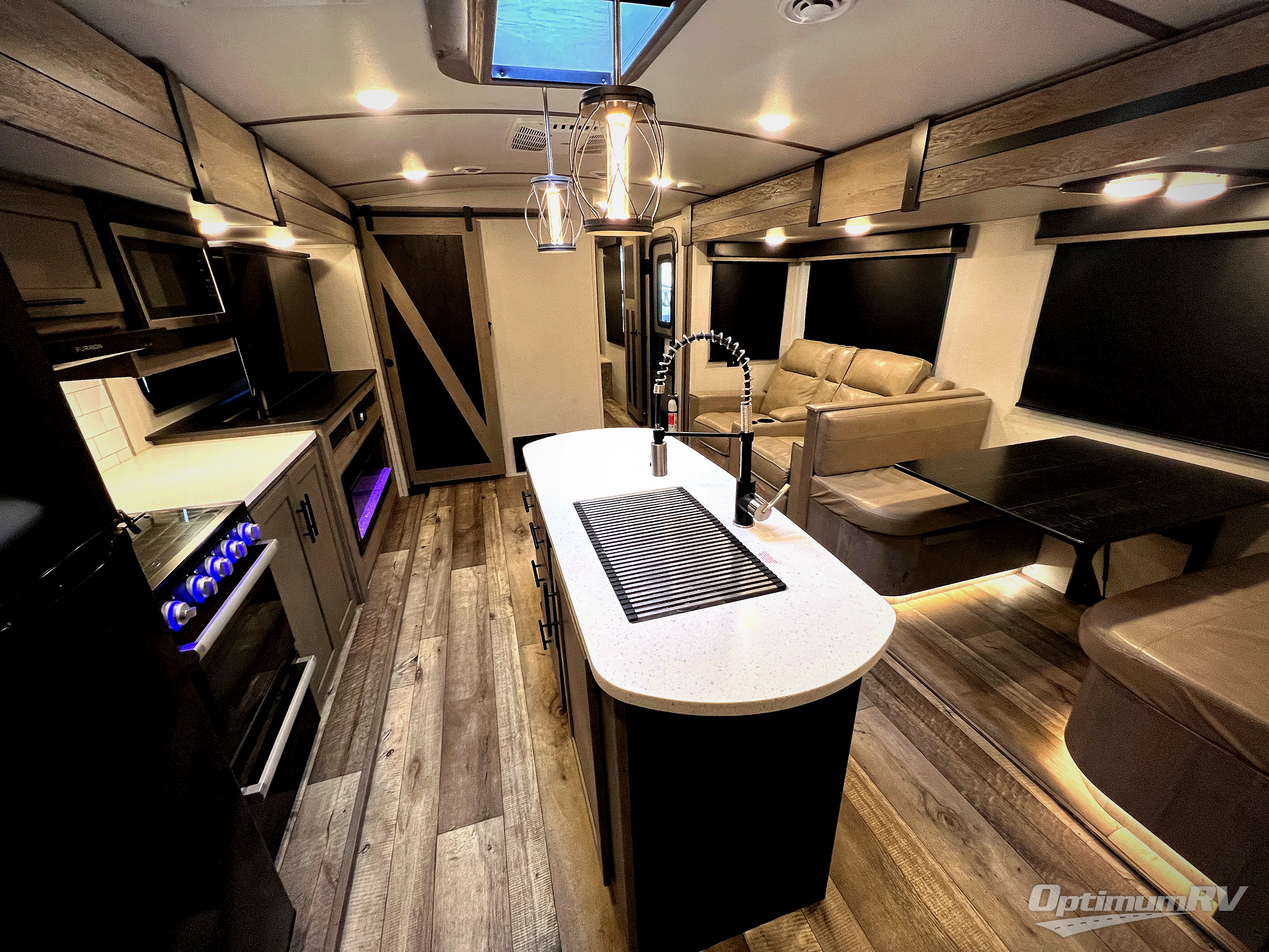 With any Keystone Outback travel trailer and toy hauler you will enjoy a lighter wallboard and white countertops for the modern farmhouse feel with more refined flooring, furniture, and cabinet hardware. You can extend your camping season thanks to the Astro-foil barrier added to the fully enclosed underbelly with ducted heat, the Coleman-Mach Quiet Series A/C offering a significant reduction of in-cabin sound levels, and an upgraded 10 cu. ft. 12V GE refrigerator to mention a few notables. The Lippert Step Above entry steps, the water docking station, the rear ladder, and the HyperDeck high performance, water-resistant RV floor are a few more reasons you will want to own an Outback for years to come!