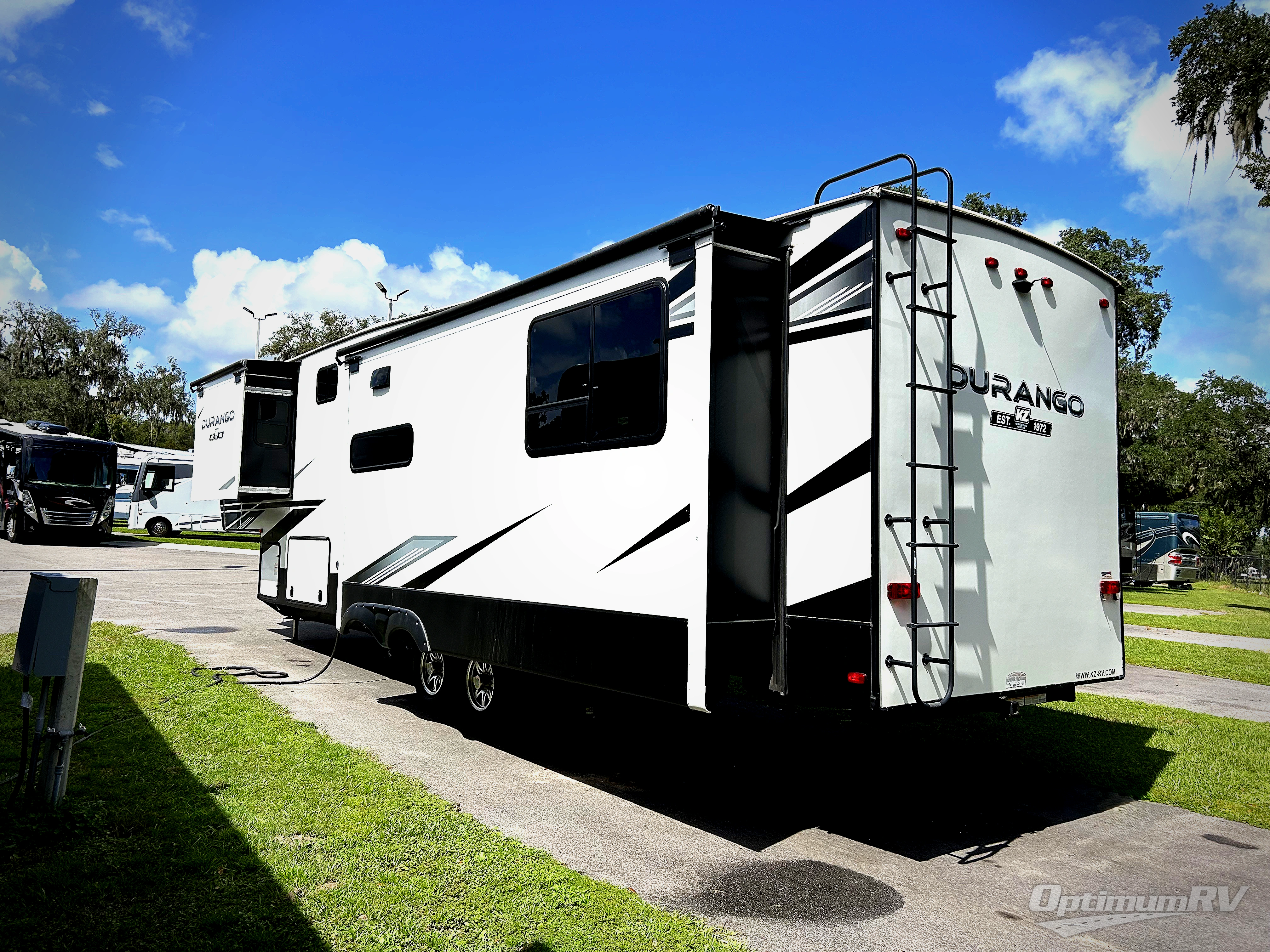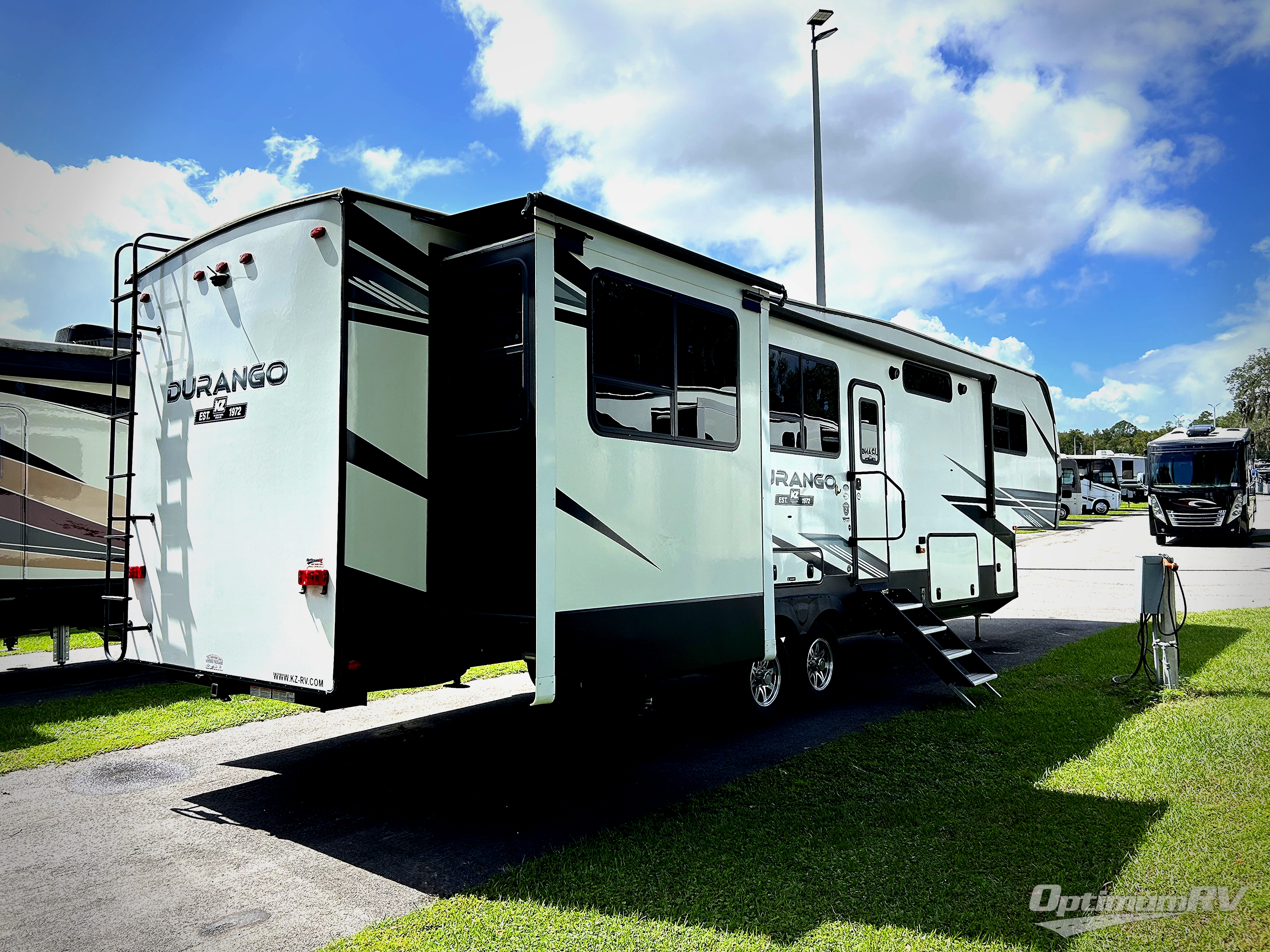 With any KZ Durango fifth wheel you will have the lightest high-profile, wide body, luxury fifth wheel in the industry with six-sided aluminum framing, the All Weather Insulation package which includes a heated, insulated and enclosed underbelly to travel during any climate, and Tufflex roofing material that is flexible, puncture resistant, and reflective. Each model features a fully-vented attic system with two attic vents providing vital escape routes for unwanted moisture, and the Durango Towing package which includes a 2" towing receiver hitch with 4-pin wire harness connection, a 3,000 lb. tow rating, and 300 lb. hitch rating. The interior includes features such as a Serta Comfort foam king bed, overhead storage with decorative shelving, a residential one-piece fiberglass shower stall with built-in seat and glass doors, a 24" oven with four-burner gas range and 30" convection microwave, plus many more features you will want to have. Make your choice today!