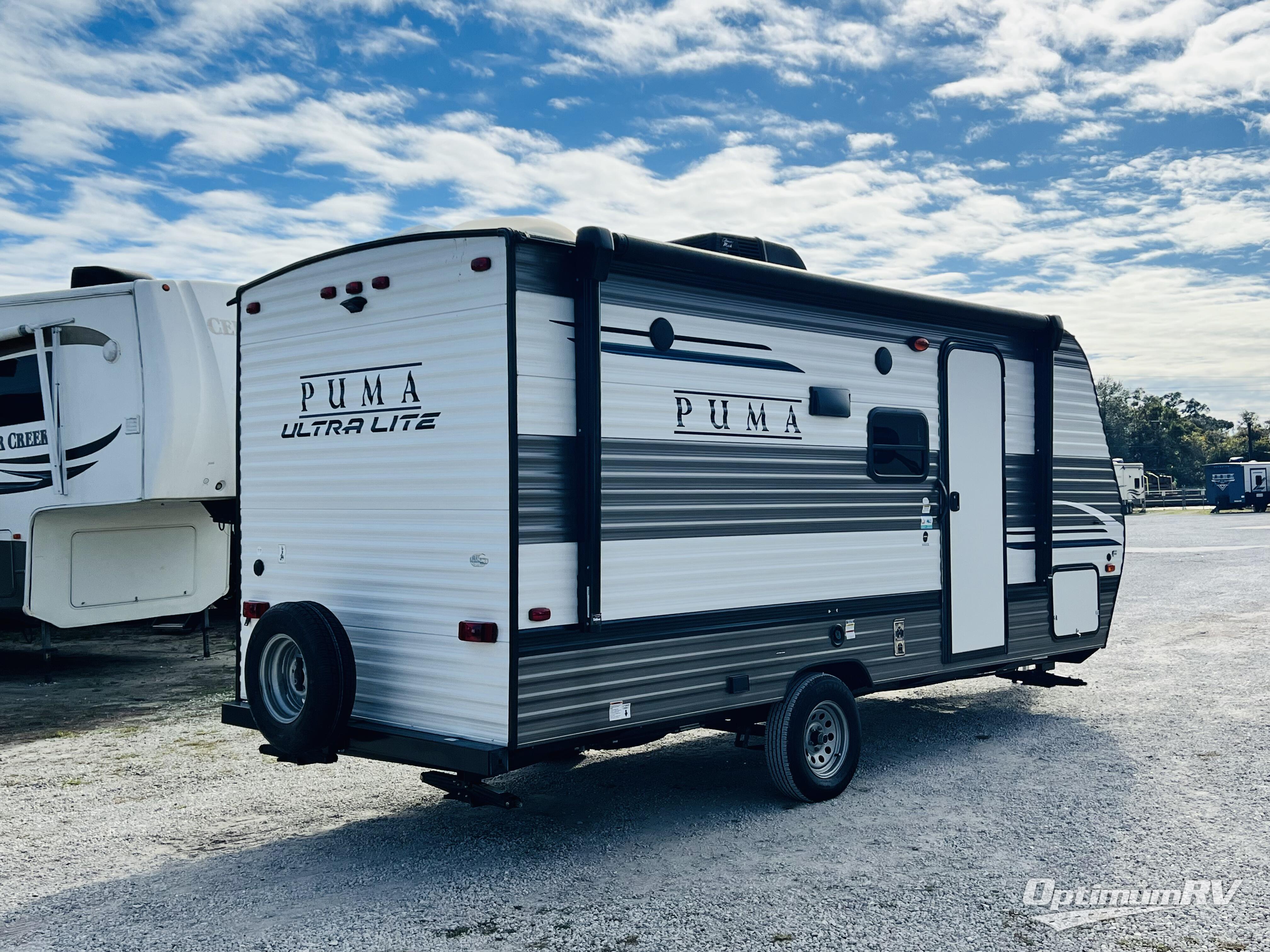The Palomino Puma Ultra Lite travel trailers and toy haulers are just what you are looking for! These units provide you with great fun without causing strain as you travel. The effortless towing is what will draw you in because it will allow you to use your crossover vehicle or smaller SUV. The exterior has an Alpha Superflex roof for many years of durability, a Darco wrapped underbelly for protection during travels, rain gutters with large down spouts for preventing water build-up, and radius baggage doors for your gear. The kitchen has a decorative backsplash and spice rack for a taste of home, and the USB charging ports will make it easy to power your phones. An exterior electric awning will protect you from rain or too much sun exposure, and the Puma Ultra Lite has also been prepped for Wi-Fi, solar power, and a back-up camera.