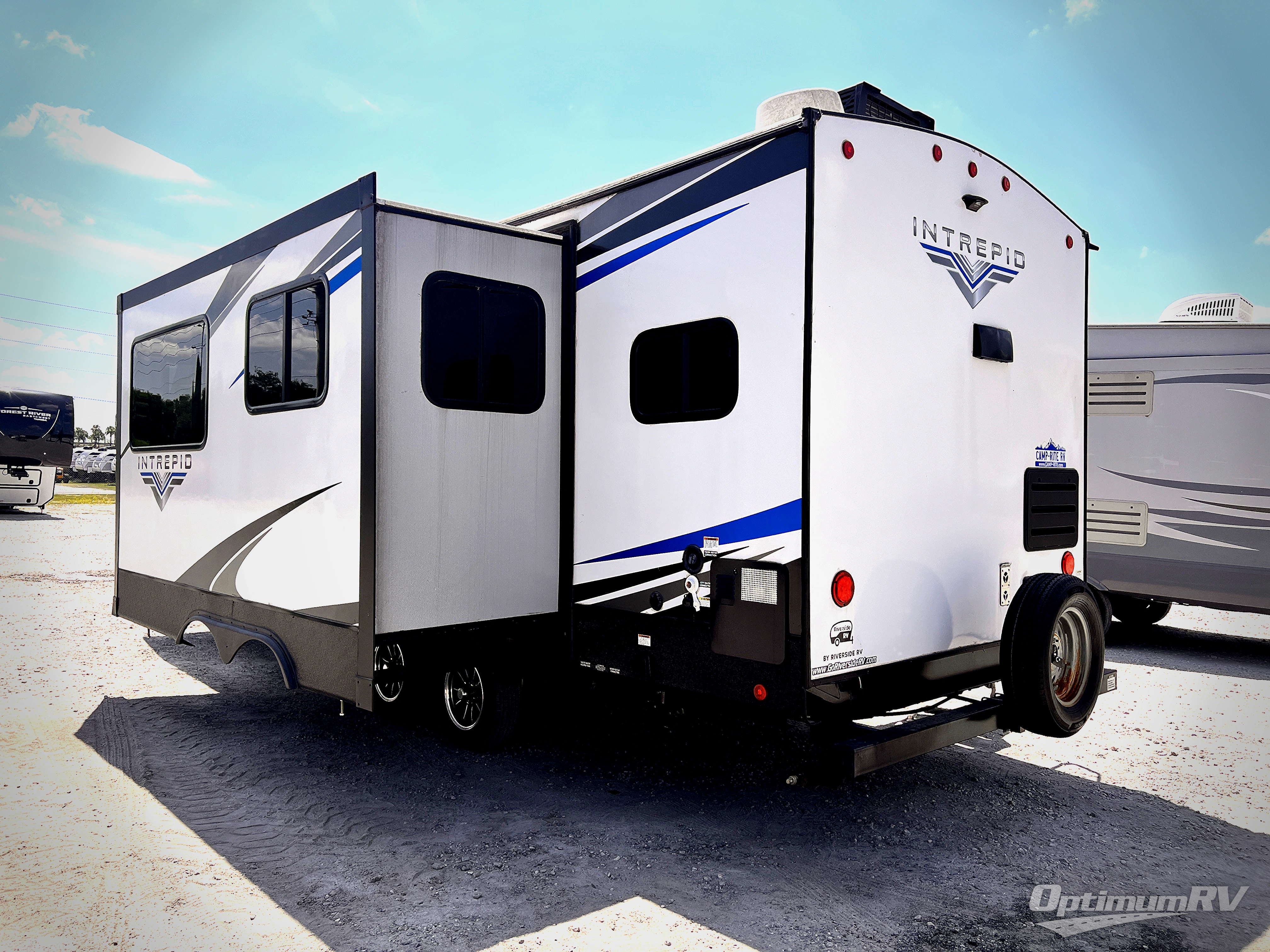 With each Intrepid travel trailer by Riverside RV you can be sure you are getting a lightweight trailer constructed to last. The walk on roof allows you to keep the top of your unit clean and the diamond plate rock guard protects the outside of the trailer to keep it in the best shape possible as you travel to your destination. The power awning with LED lights provides an outdoor living space, and you'll appreciate the exterior washing station to wash off your hiking gear and the power tongue jack for easy set-up. You can easily clean the top of your unit with the rear ladder included, and the Solid Step with a friction hinge door provides a quick and easy entrance into the trailer for your convenience. These models feature exterior and interior LED lighting, an AM/FM/Bluetooth/HDMI Stereo, USB ports, and a stainless steel sink with a cover! Choose your favorite Intrepid travel trailer for the many more amenities you won't want to camp without!