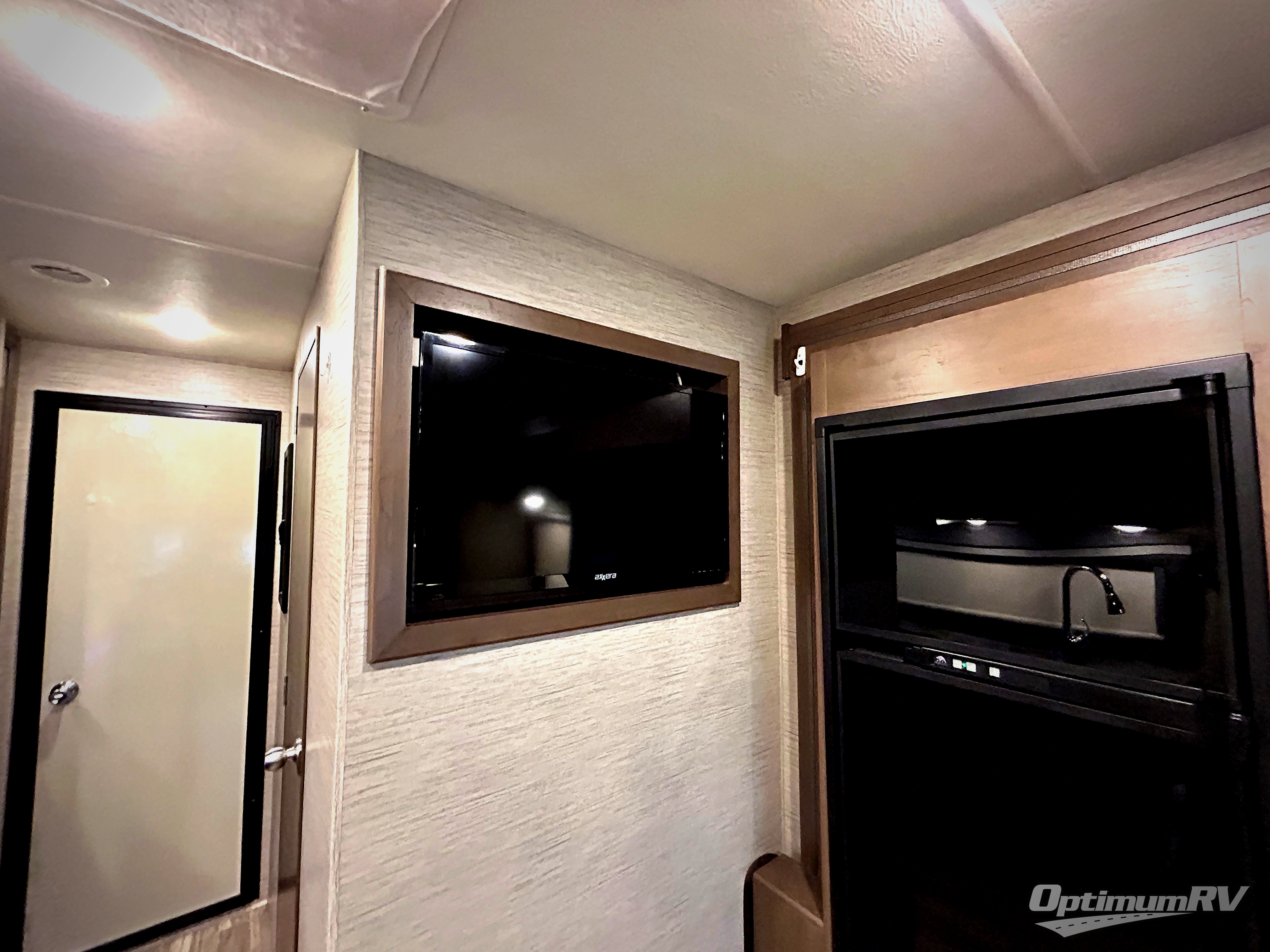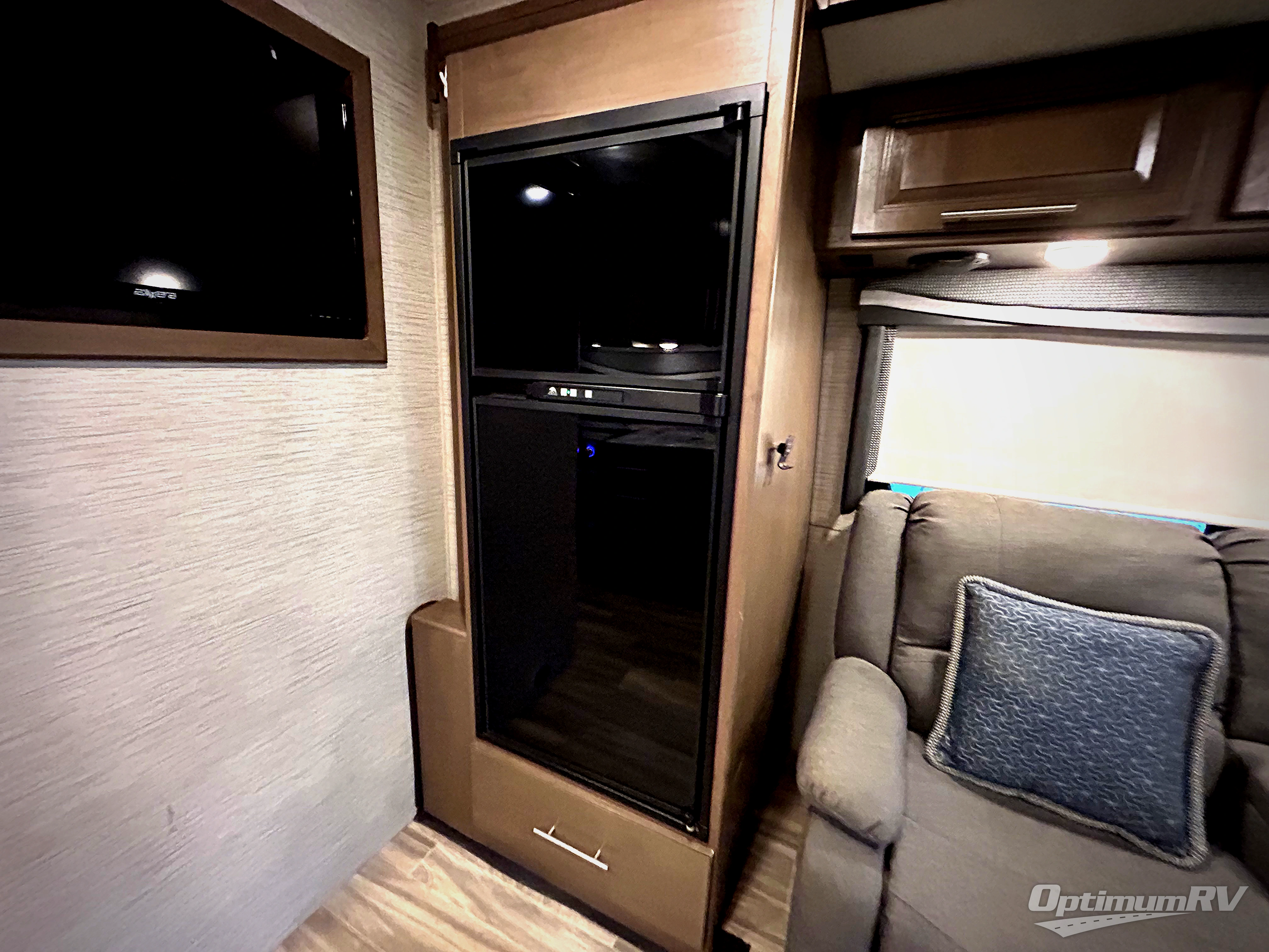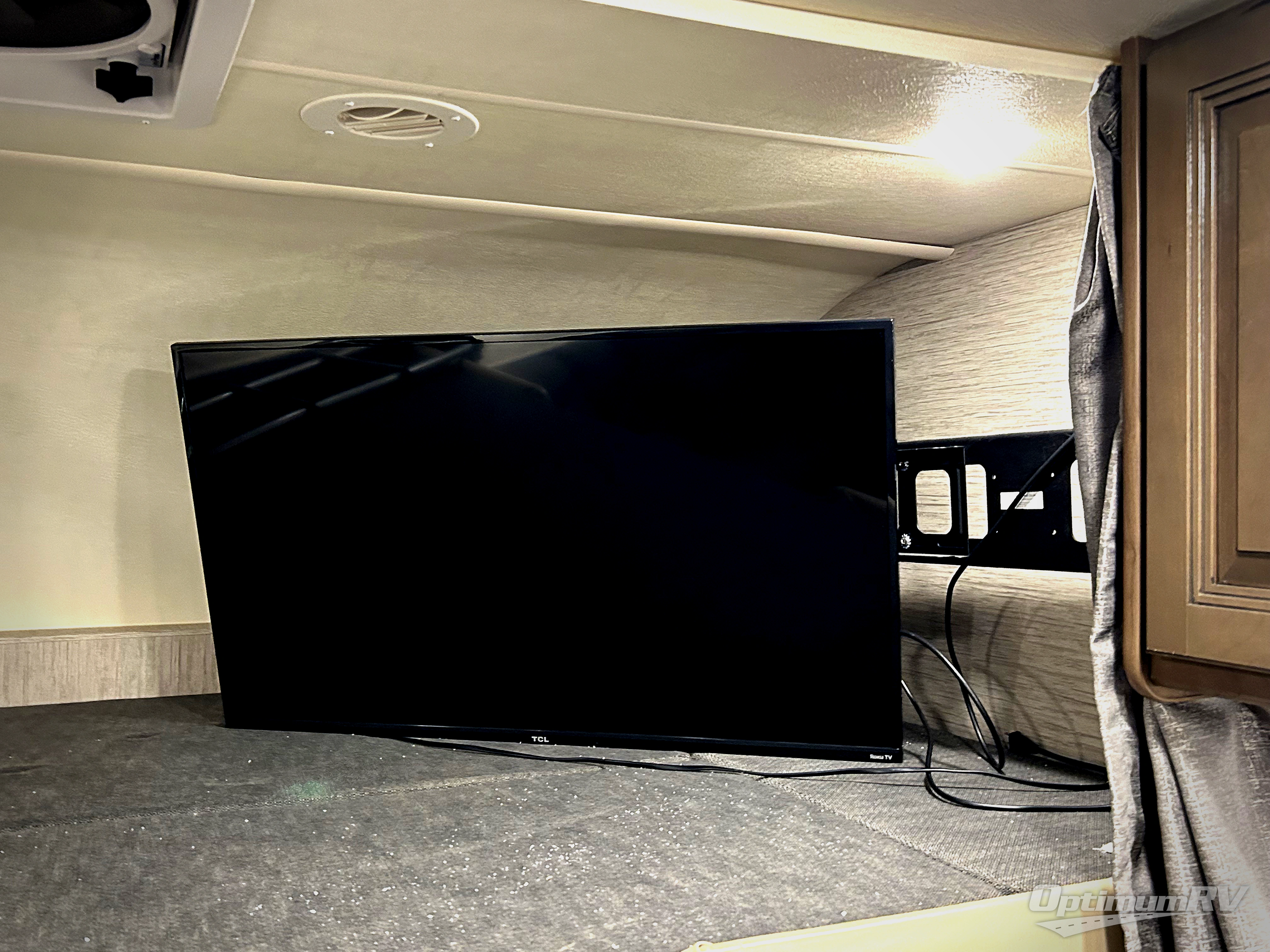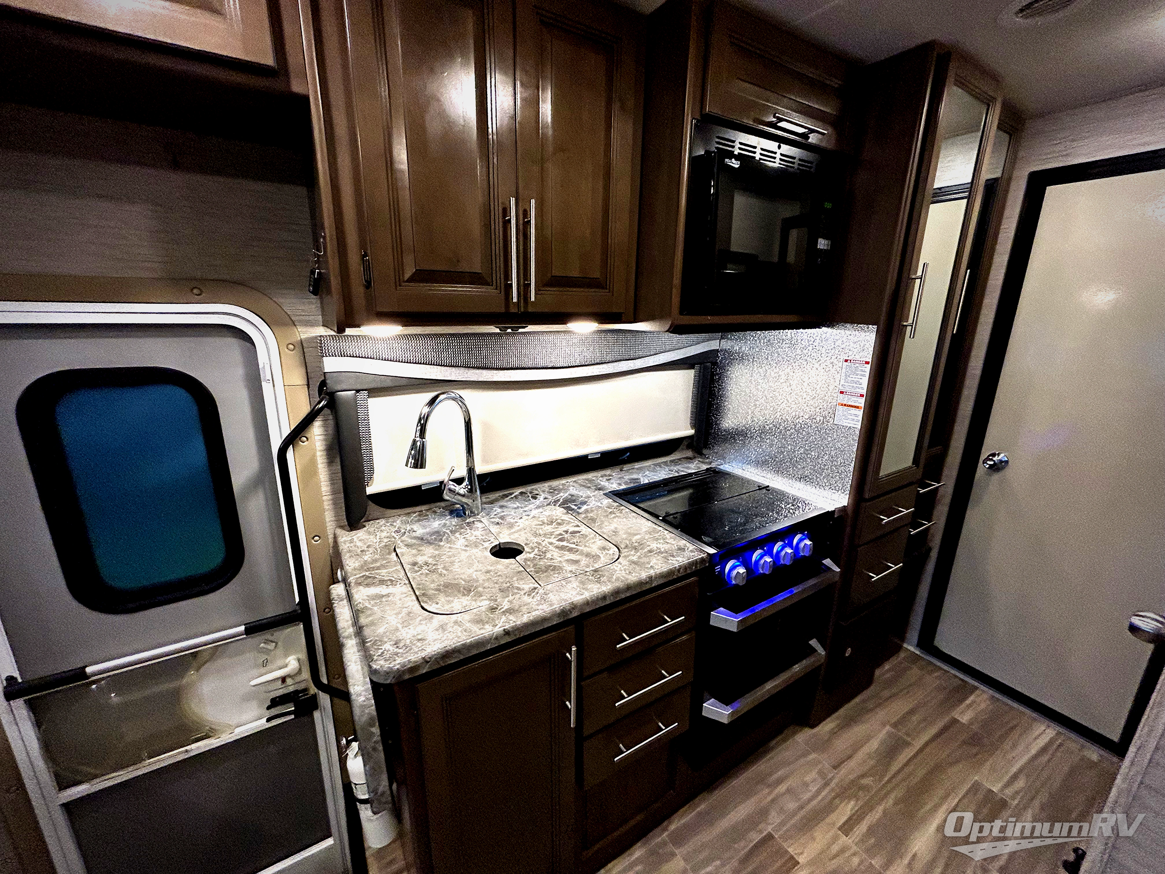 If you are looking for an RV that breaks all of the rules when it comes to traditional motorhomes, then you are looking for this Outlaw Class C gas motorhome toy hauler. This unit amazingly comes standard with four LED TVs - one in the garage, one in the living room, one in the cab, and one outside. The kitchen is no exception when it comes to exceeding expectations with its large window behind the cooktop, double-door gas/electric refrigerator, three-burner gas cooktop, and a pantry to store your favorite snacks. On top of all of that, this model can sleep eight people giving everyone a chance to partake in the fun trip ahead!