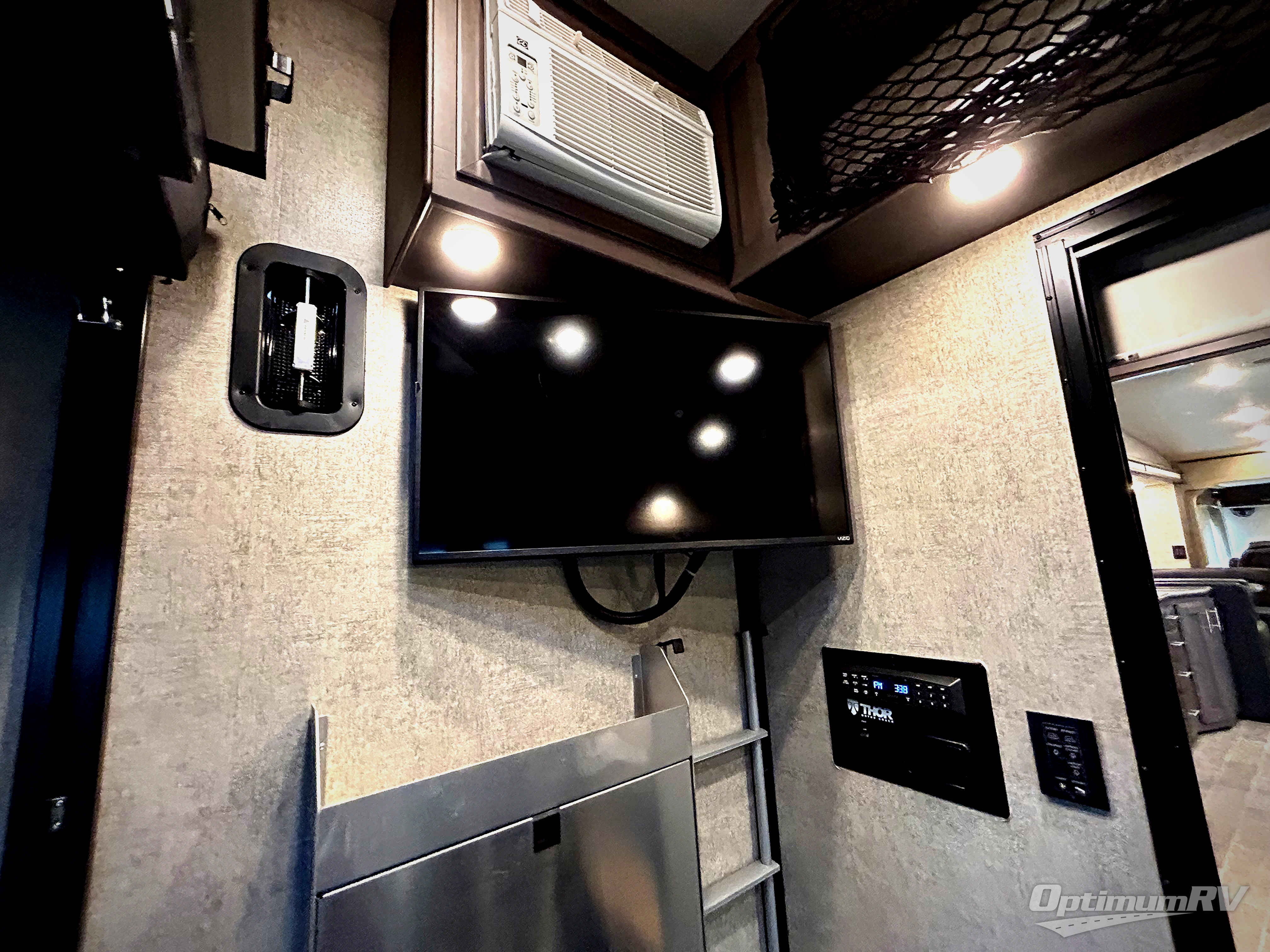 Thor Motor Coach has designed the Outlaw Class A gas motorhome toy hauler to be able to accommodate all of your storage needs with amenities like the lighted rotocast storage compartments. The large, separate garage allows you to tow along all of your outdoor accessories, such as bicycles, kayaks, and ATVs without having to maneuver around them while you live your life in the main coach area. Plus, the deadbolt lock on the entry door makes it so that only the correct people enter the coach, and the Onan RV QG 5500 gas generator will give you a reason to go off grid.