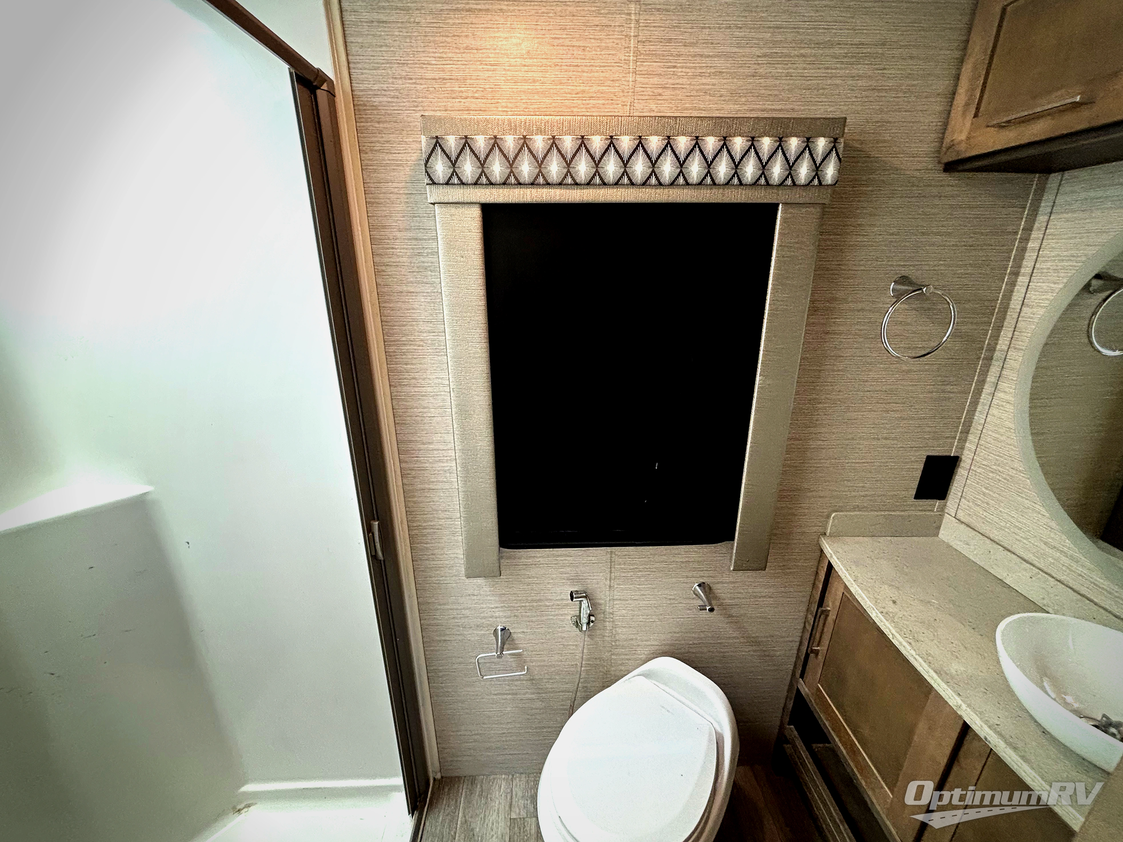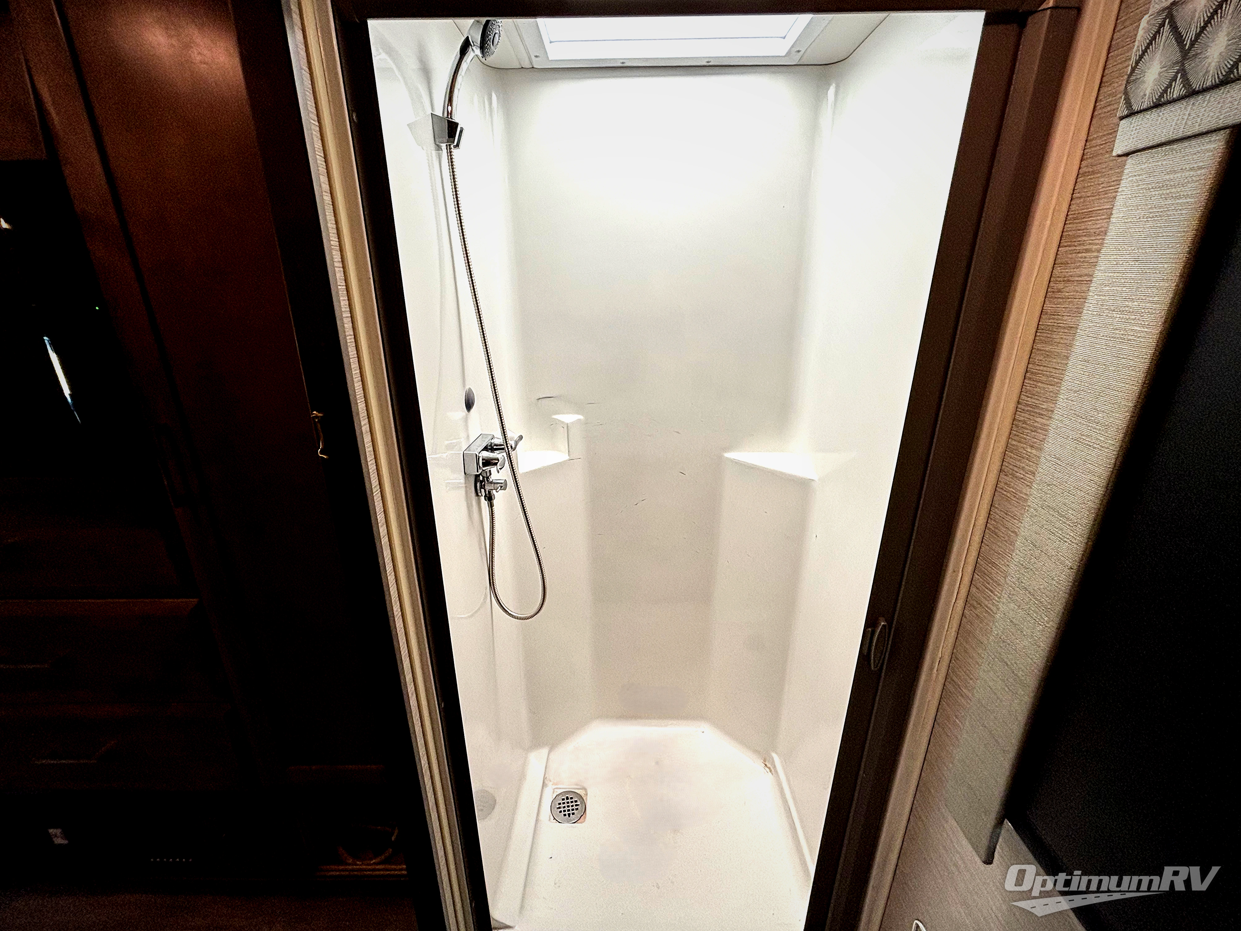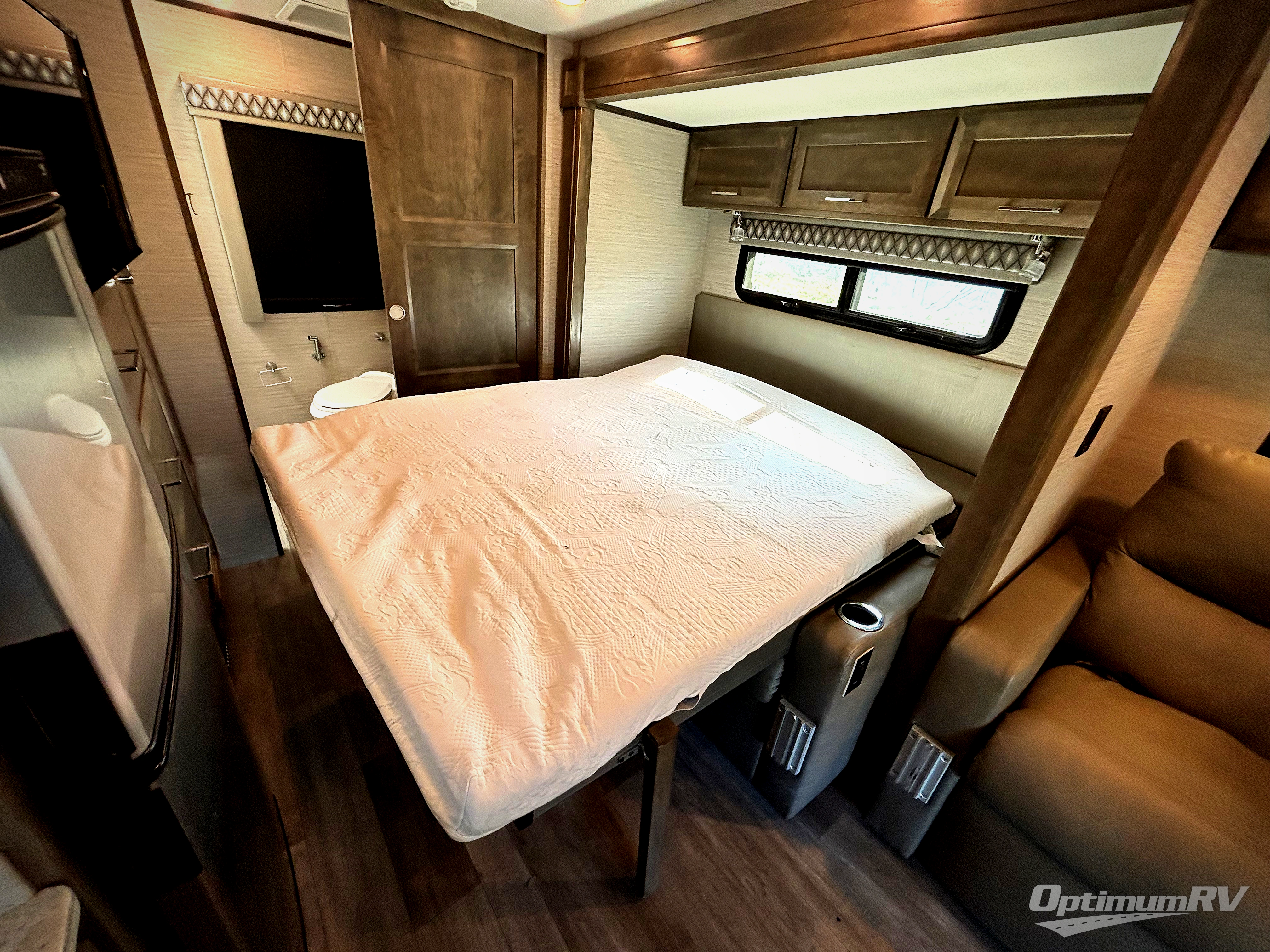 Maximize space and comfort each time you travel in this coach. The queen Murphy bed and sofa allow you to increase your living area each morning after waking up from a good night's rest. You can get cleaned up in the full rear bathroom with space savings sliding door and grab your clothing from the wardrobe or cabinet in front of the bed. There is a 32" TV to watch as well. The booth dinette allows two people to dine, two seatbelts for traveling and a space for one to sleep. The bunk over the cab is another space available for your overnights guests, yet you can choose to add the optional entertainment center in its place. The cook will love the galley kitchen with everything at their fingertips including a handy countertop extension and convection microwave. Now you might like to add a few options such as reclining theater seating or a tri-fold sofa as well as an exterior TV.