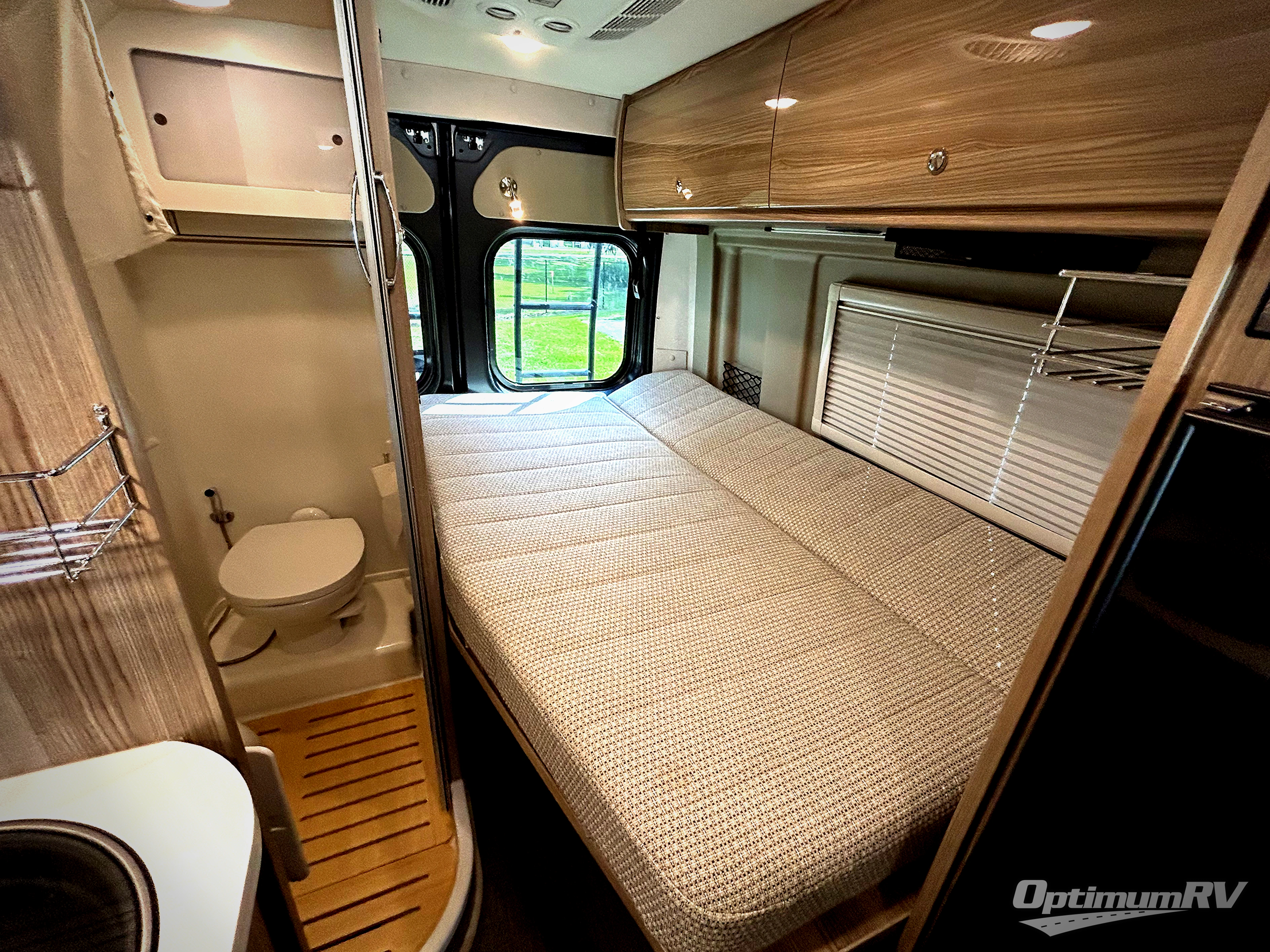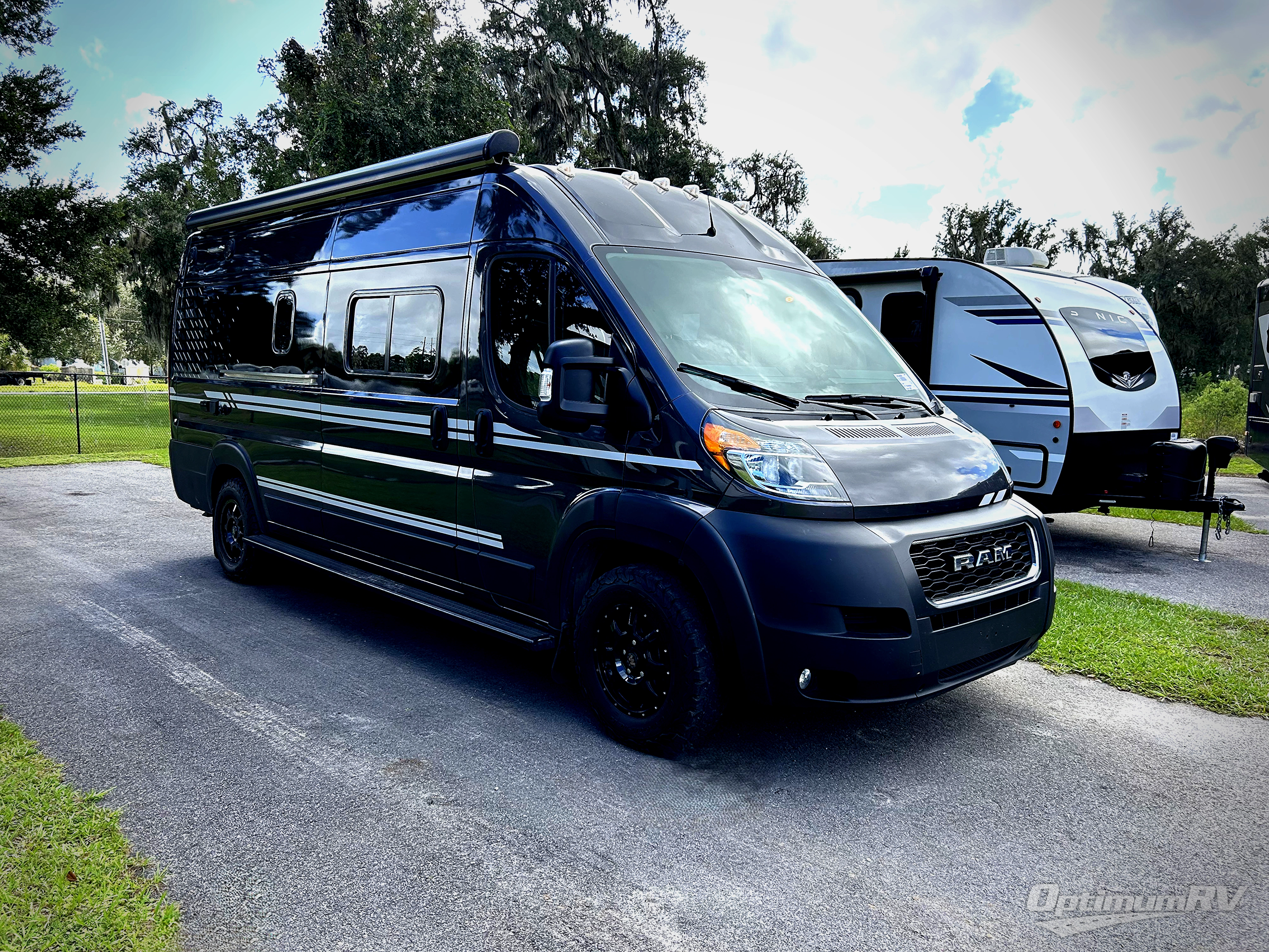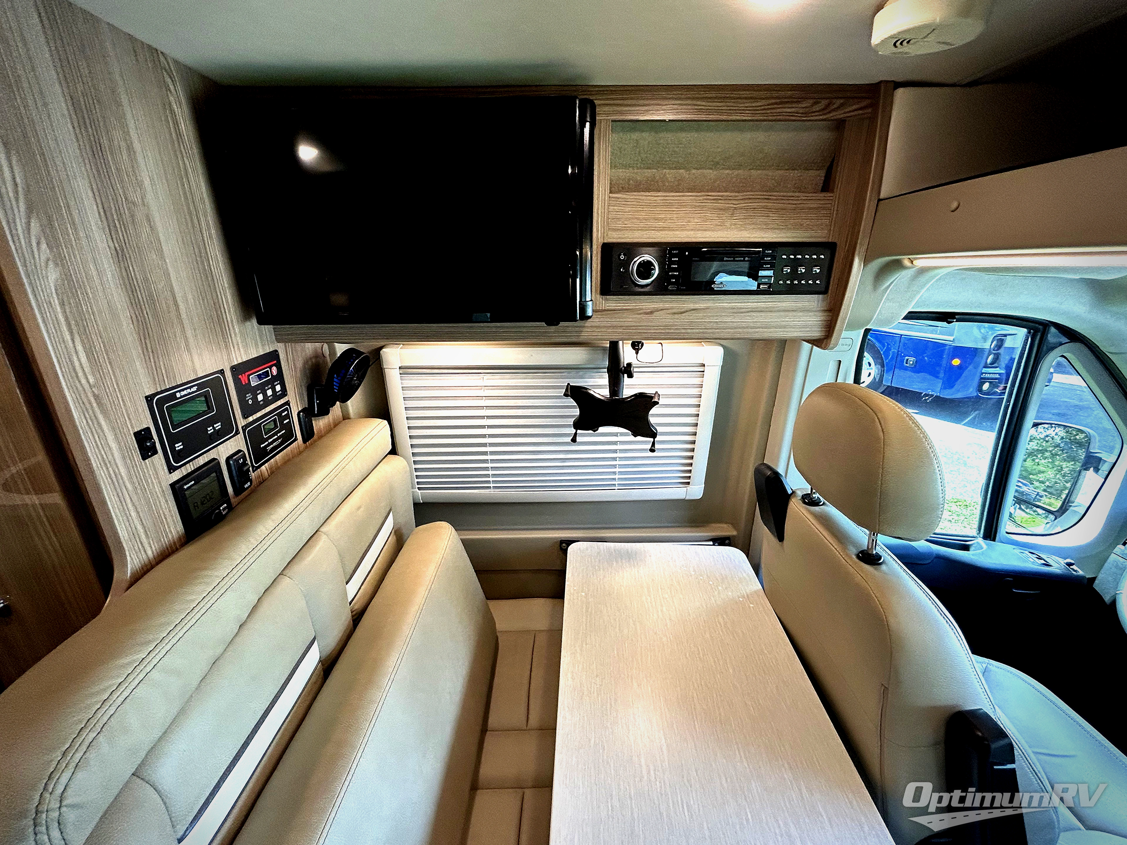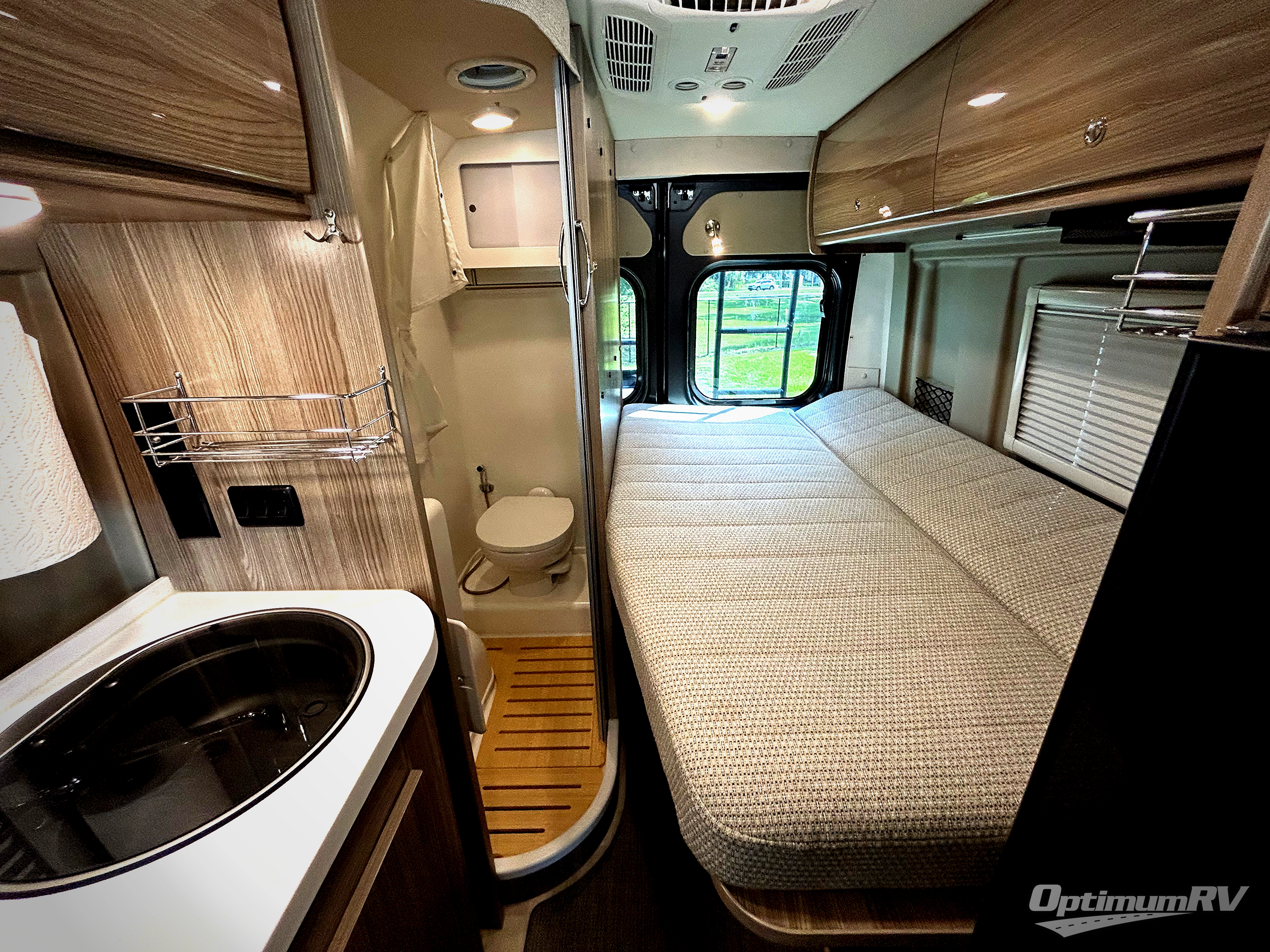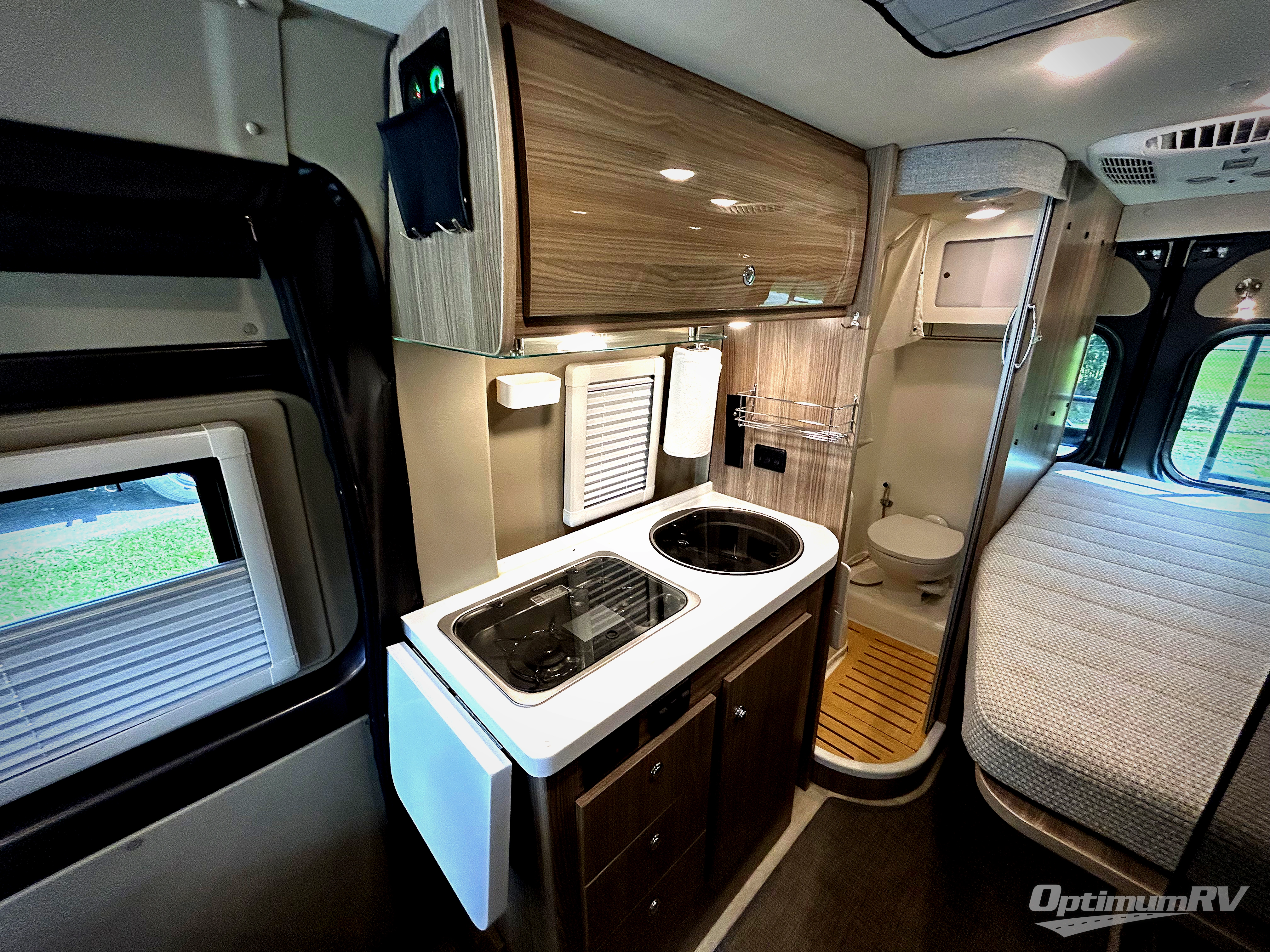 Efficiency meets comfort in the Travato Class B gas motorhome by Winnebago. The 215-watt solar panels and the energy management system allow you to go off-grid when the adventure calls for it, and the Coleman Mach 10 NDQ A/C will keep you comfortable during the hot summer months. If the weather is nice out, set up the power awning with LED lights or stay inside with the side and rear screen doors closed to keep the bugs out. Each model includes plenty of storage space, including RAM Tough-Track Mounts throughout, Anything Keepers, plus below floor storage for your outside gear. The Travato also includes a Corian countertop and a spice rack in the galley, a convenient medicine cabinet and mirror in the bath, plus LED ceiling lights throughout to keep everything bright and open!