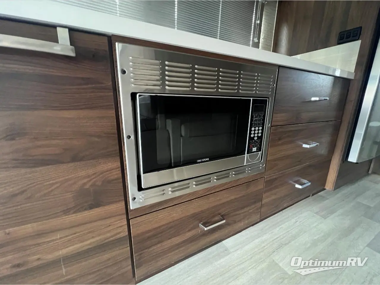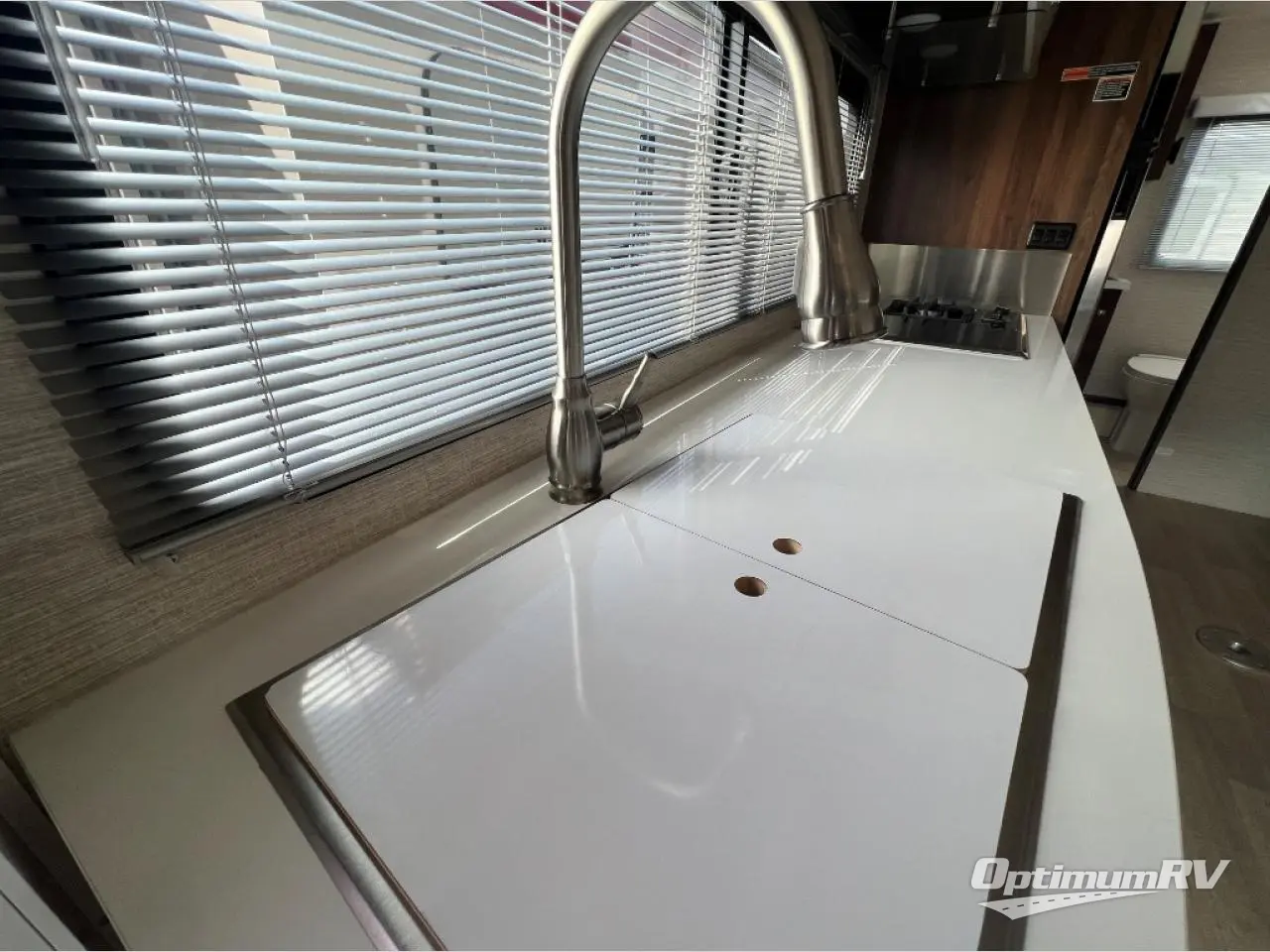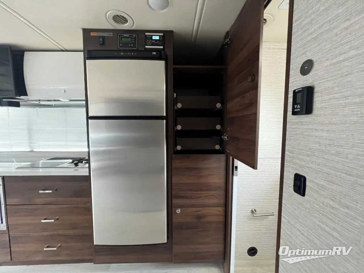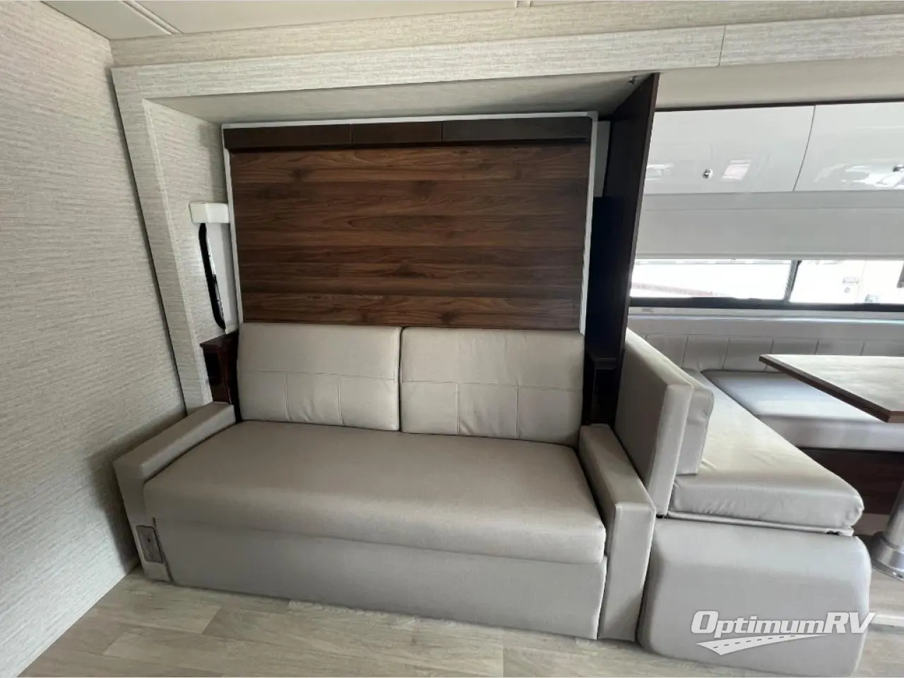 A couple or family will enjoy the look of the interior each time they take the RV on the road. From the curved cabinets, the lighted soft close galley drawers and the sprung-cushion dinette and sofa seats there will surely be a favorite feature for everyone. The cross-coach storage holds larger items, and the above-bed Anything Keeper storage stows things such as cellphones, keys, chargers, and more. You will be able to easy set up the queen Murphy+ bed when it's time for bedtime while the kids sleep on the cabover bunk or the U-shaped dinette. You might like to add the theater seating option if you don't need that extra sleeping space. Everyone can get cleaned up in the full rear bathroom with a space savings sliding door before making meals with full amenities including a convection microwave/oven.