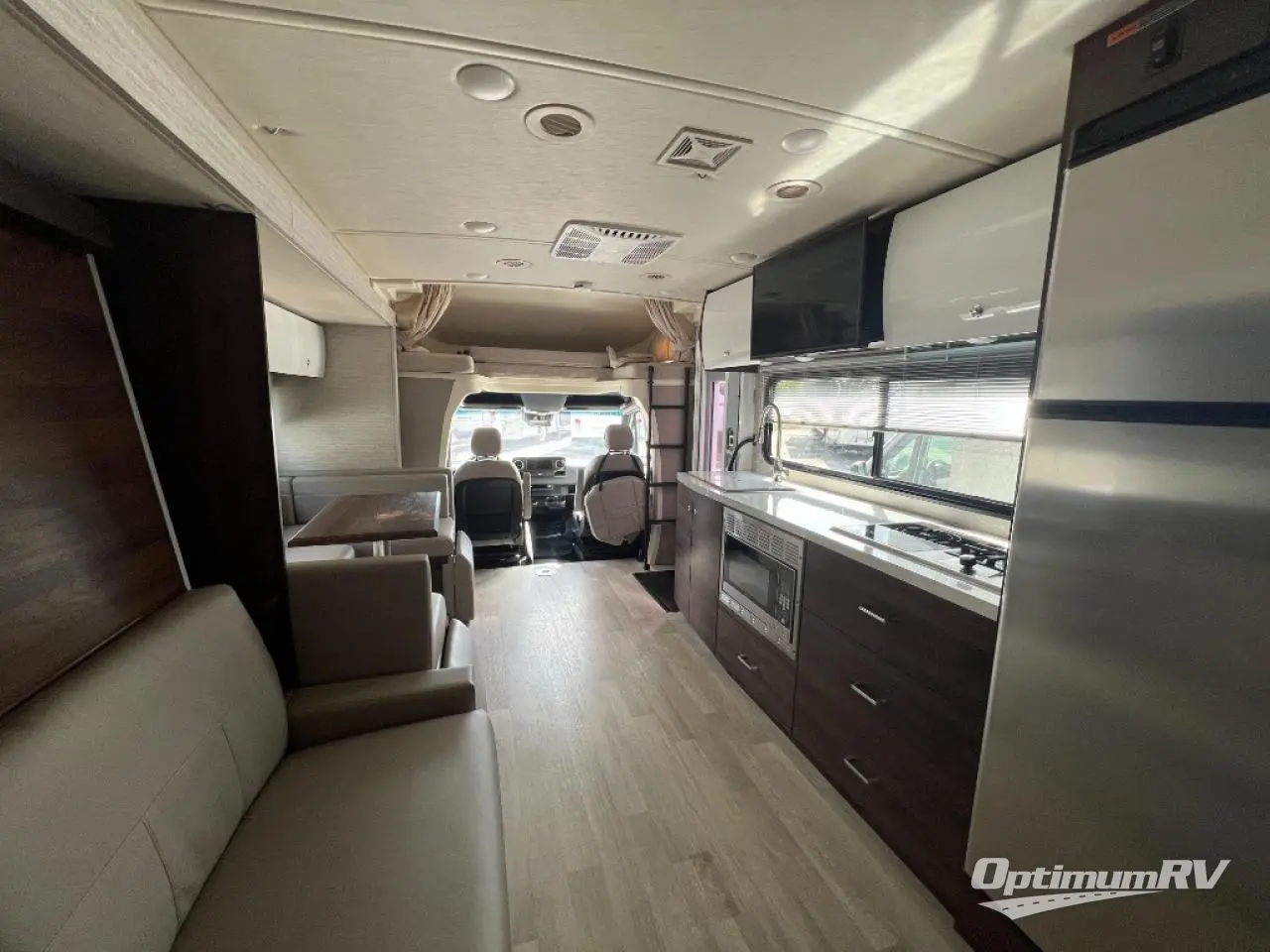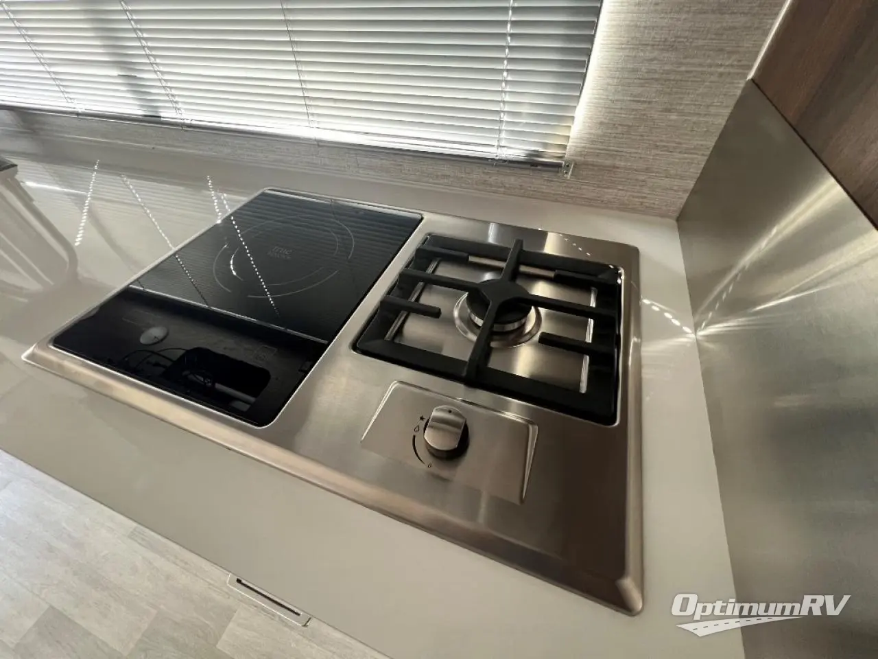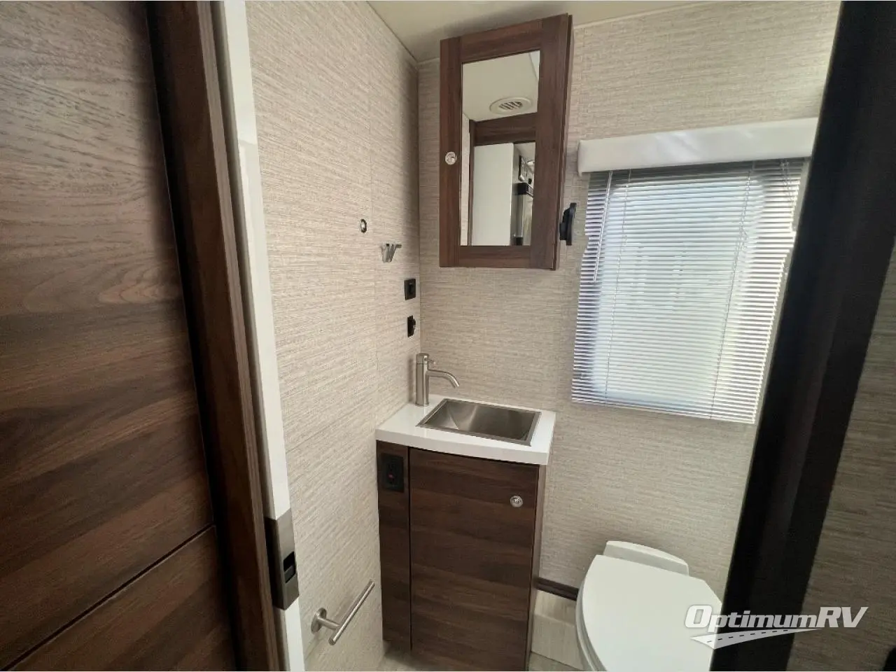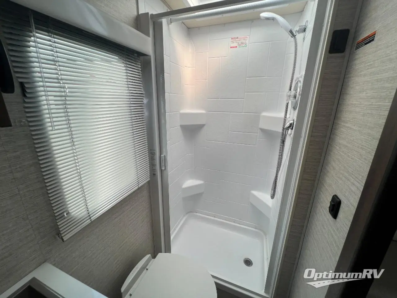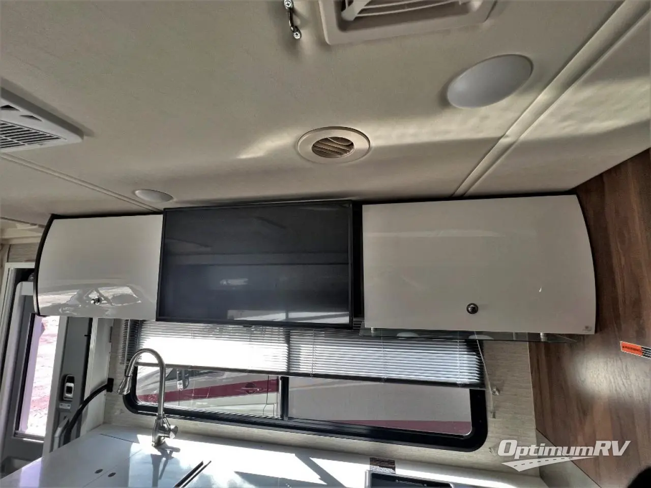 A couple or family will enjoy the look of the interior each time they take the RV on the road. From the curved cabinets, the lighted soft close galley drawers and the sprung-cushion dinette and sofa seats there will surely be a favorite feature for everyone. The cross-coach storage holds larger items, and the above-bed Anything Keeper storage stows things such as cellphones, keys, chargers, and more. You will be able to easy set up the queen Murphy+ bed when it's time for bedtime while the kids sleep on the cabover bunk or the U-shaped dinette. You might like to add the theater seating option if you don't need that extra sleeping space. Everyone can get cleaned up in the full rear bathroom with a space savings sliding door before making meals with full amenities including a convection microwave/oven.